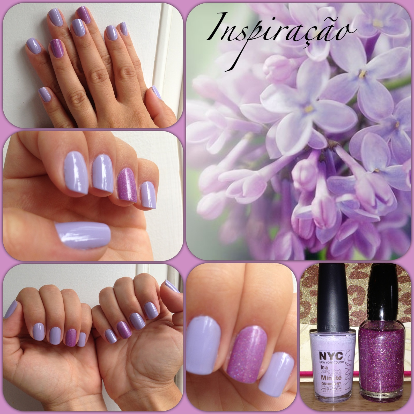 O esmalte escolhido dessa semana foi um lilás pastel lindo que eu adoro para o verão. A cor é Lavender Cupcake da NYC. E para dar um charme escolhi um outro roxinho com glitter para passar na “filha única” que é da Wet&Wild cor Hannah Pinktana. Adoro essas cores pasteis que ficam super lindas em qualquer estação do ano!