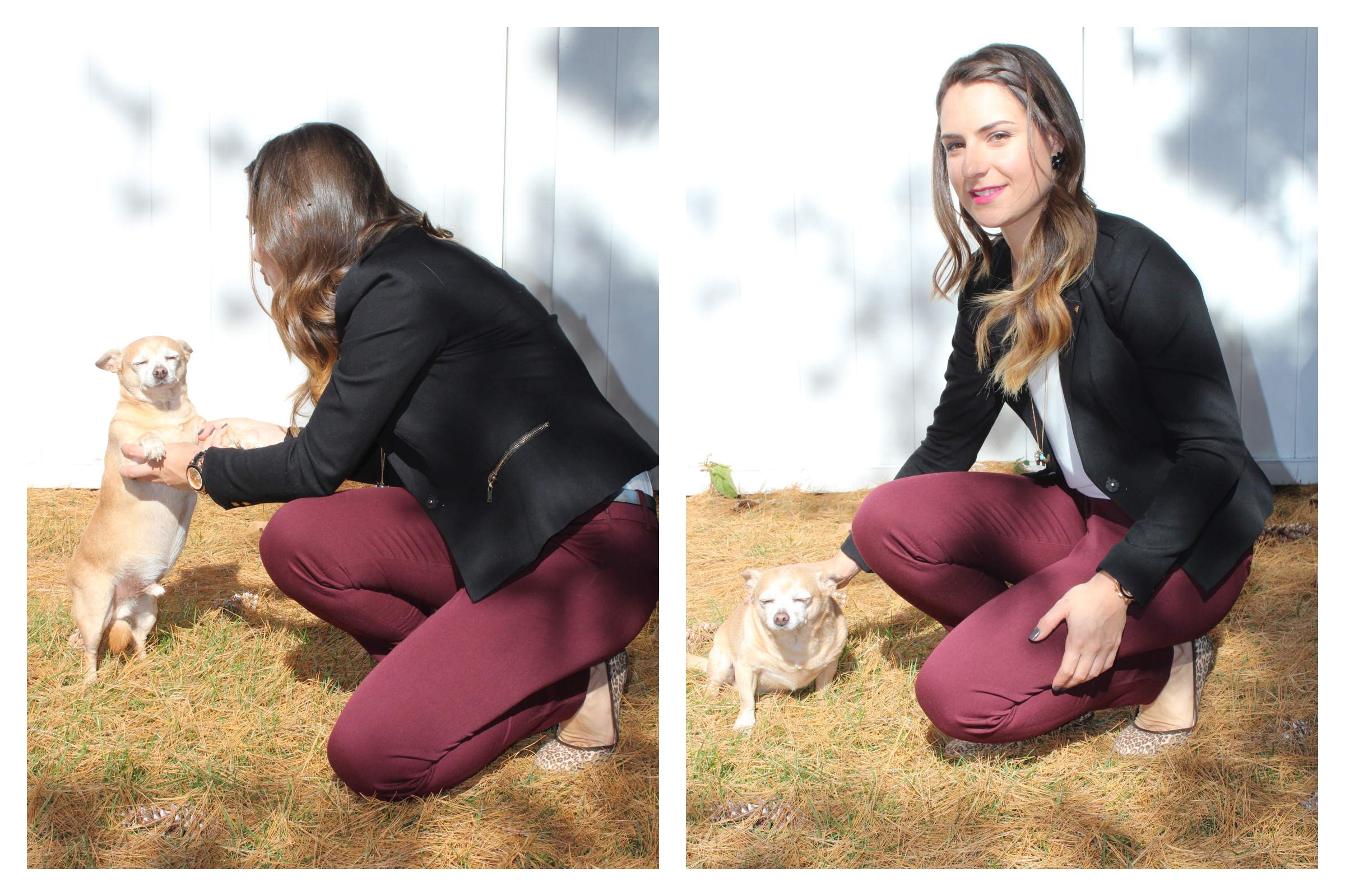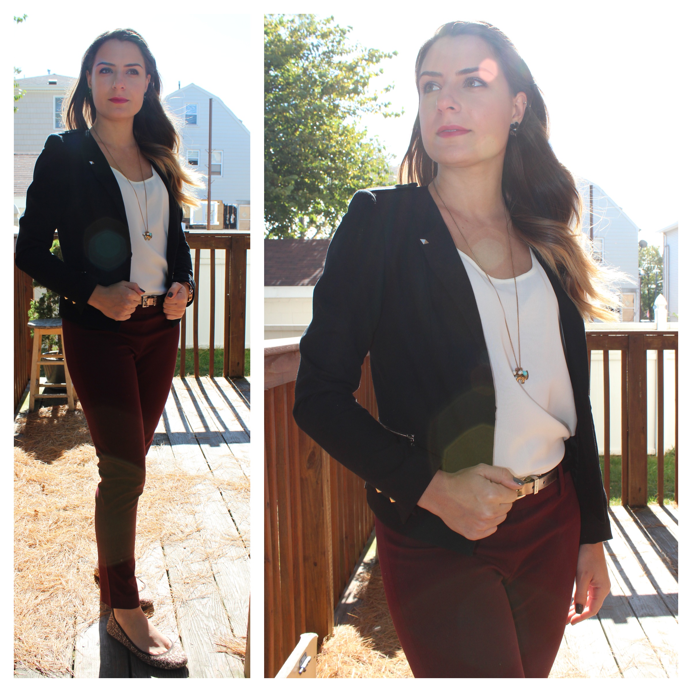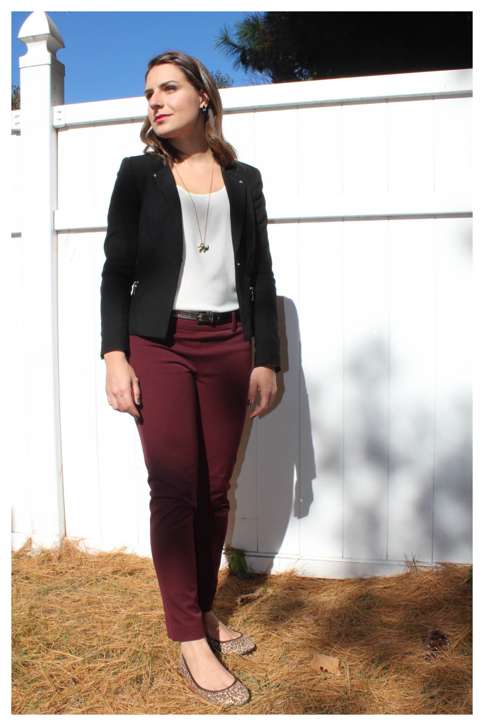 A temperatura aqui ja está caindo e começando a esfriar. Então optei por um look com cara de outono com uma jaquetinha mais leve. As calças bordô estão super em alta e aproveitei para combina-la com uma blusinha regata simples de seda. Optei por uma sapatilha de oncinha que eu amo tanto, porque afinal ninguém aguenta ir as compras e andar pelo shopping de salto alto não é mesmo!?