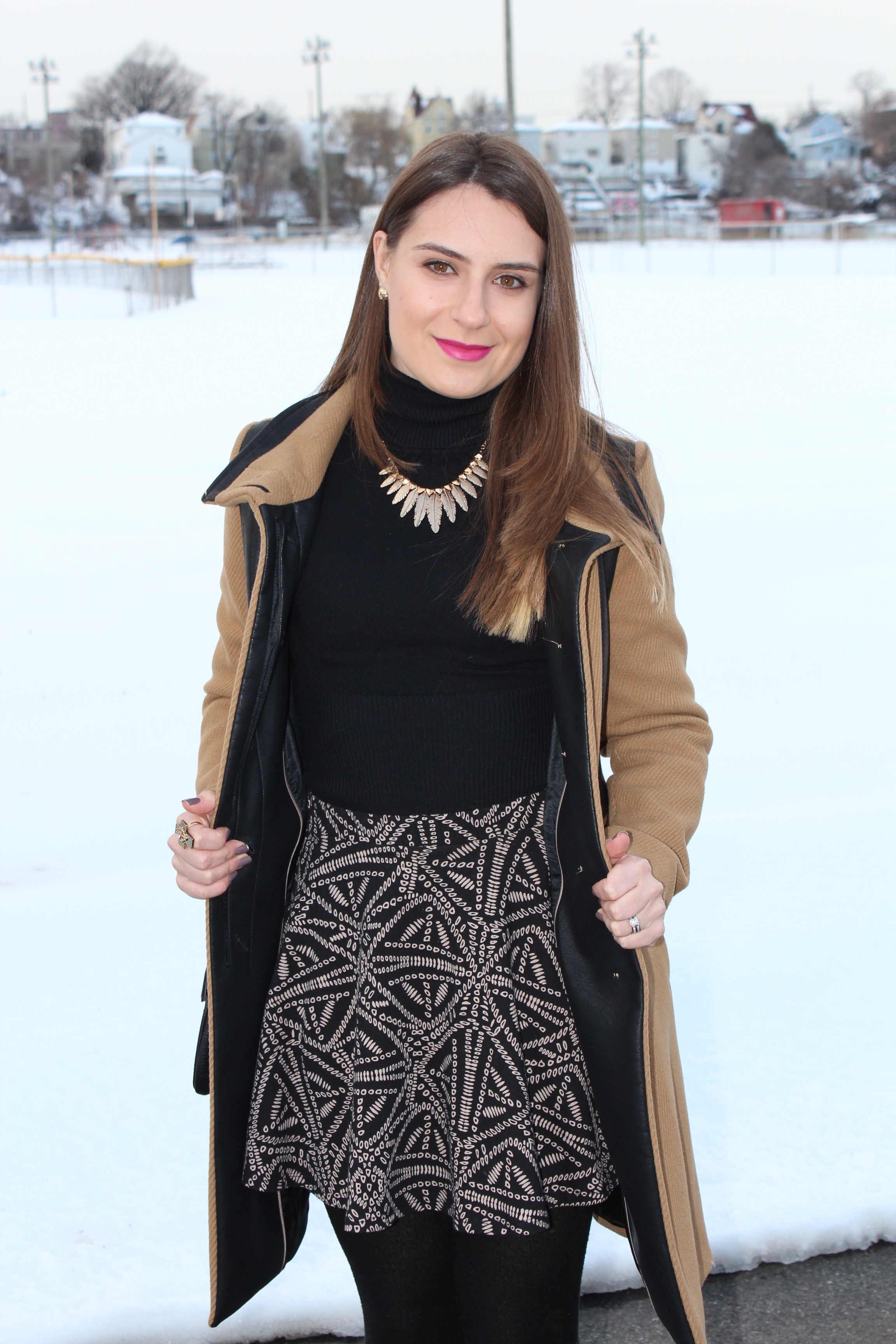 Saia: Forever 21, Blusa: Mandees, Meia Calça: H&M, Casaco: Zara, Booties: Bamboo,