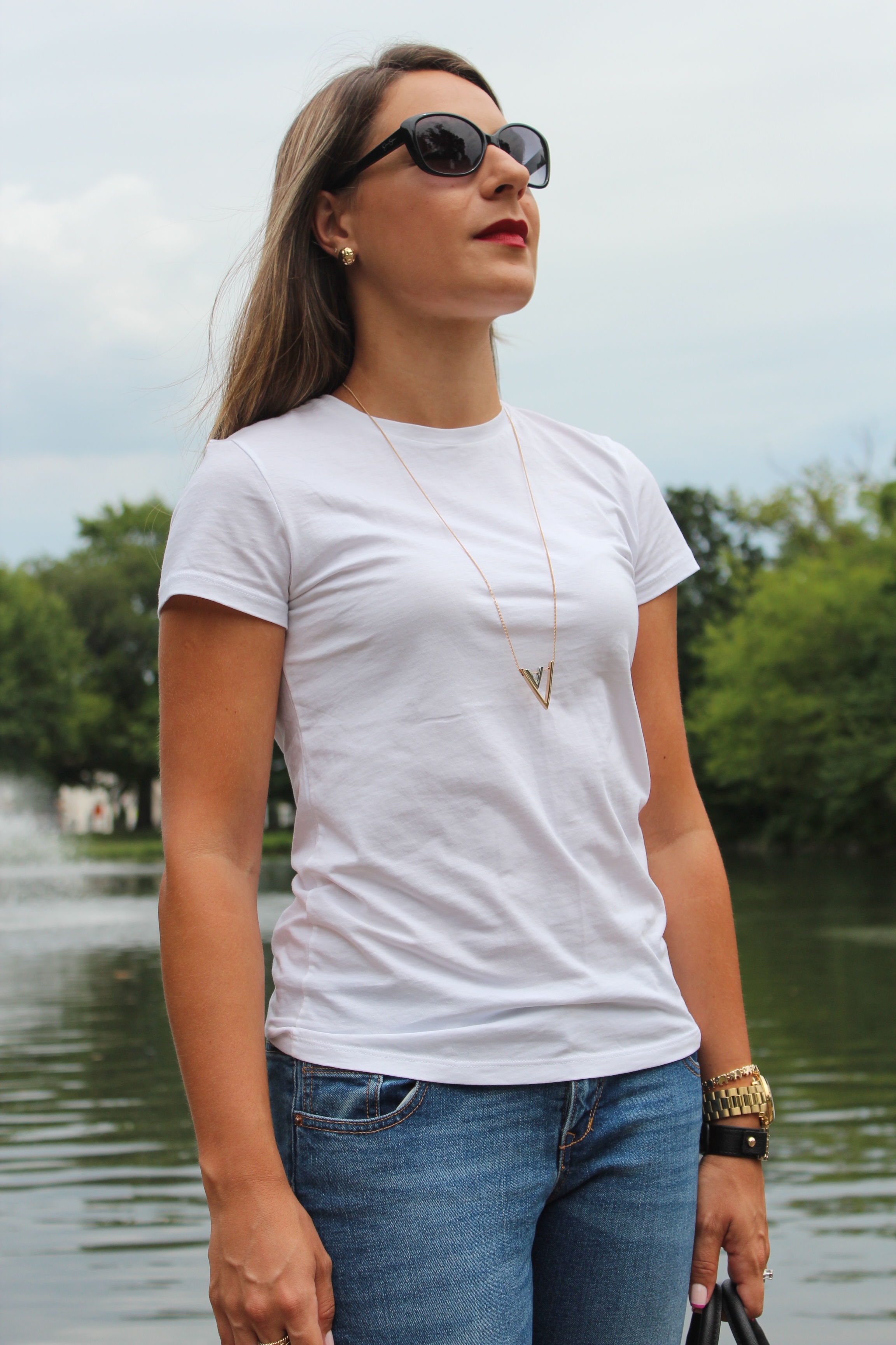 Hoje venho mostrar para vocês um look super básico que eu adoro: calça jeans e camiseta branca.
