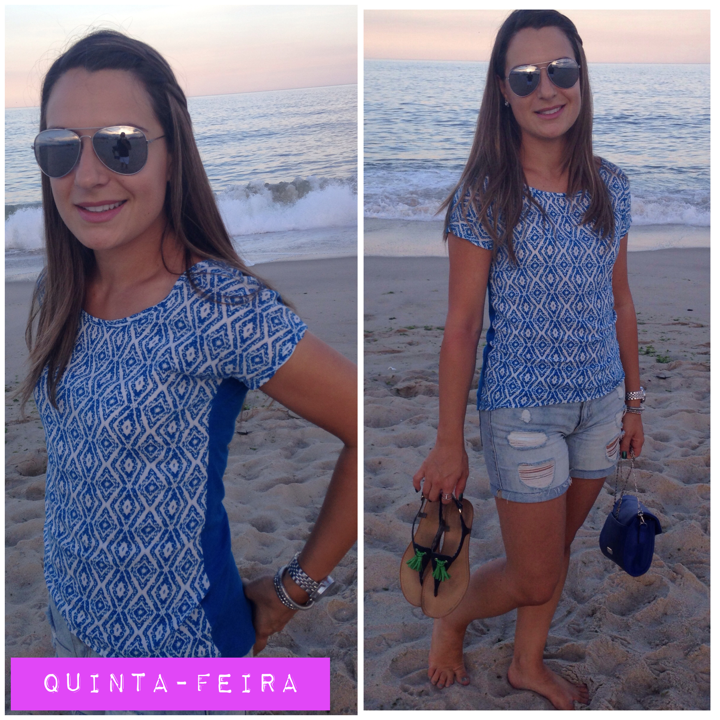Shorts Forever 21, Blusa TJMax, Bolsa Jassica Simpson, Rasteira Rauph Lauren, Relogio Fossil.