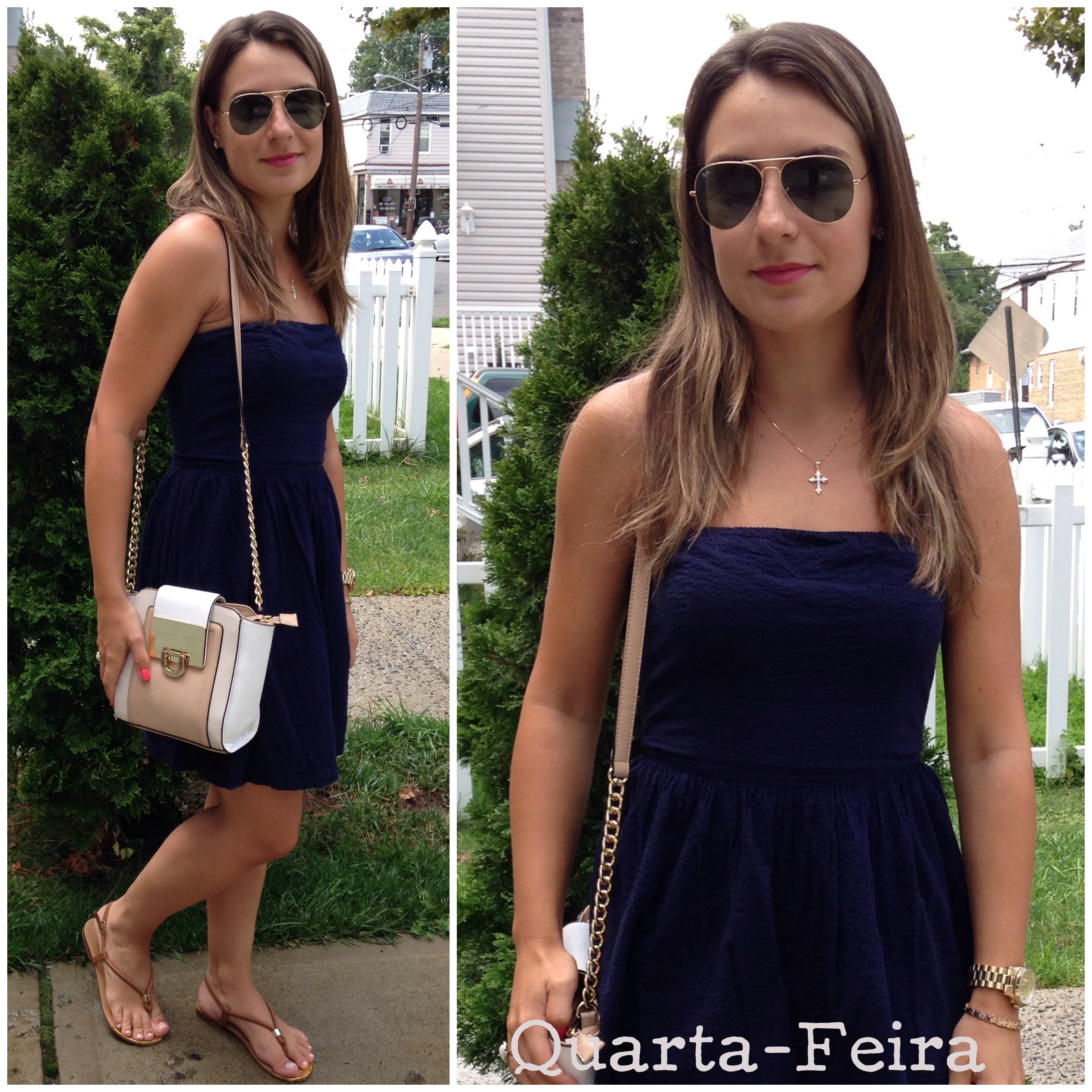 Vestido GAP, Rasteira Steve Madden, Bolsa Aldo, Oculos Ray Ban, Relógio Michael Kors e Lip Cream NYX Antwerp.