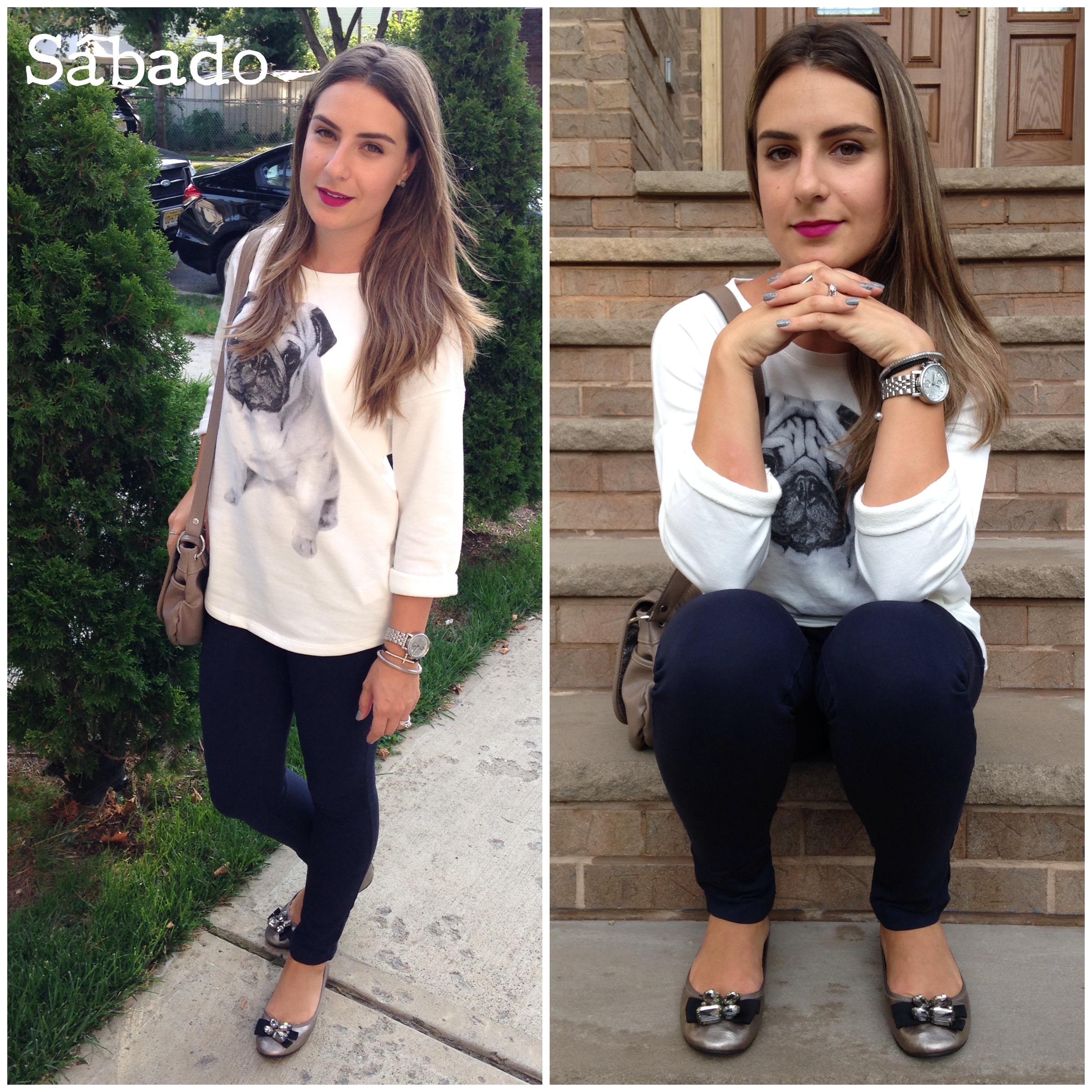 Sweater H&M, Calça Marshalls, Flats Old Navy, Bolsa Olivia + Joy e batom Flat Out Fabulous MAC.