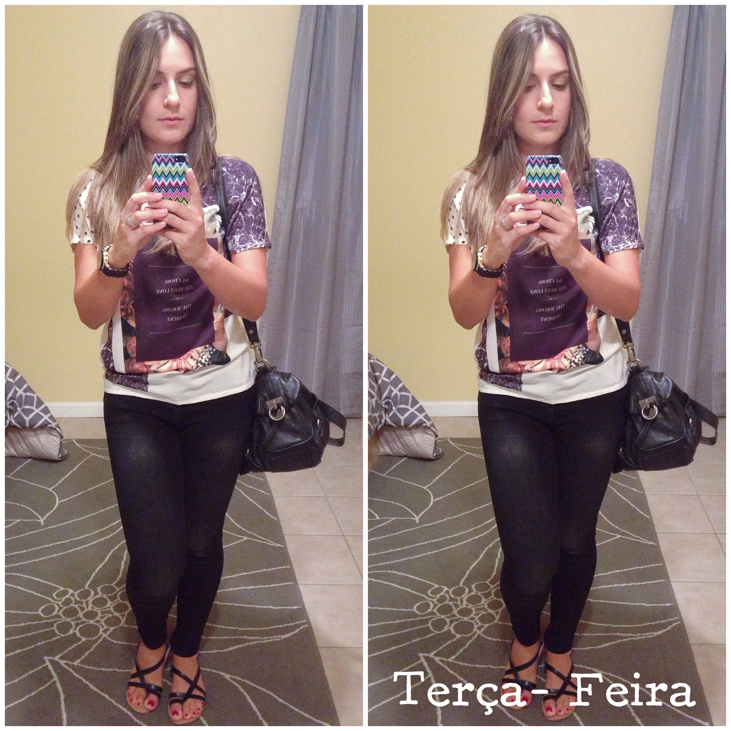 Hoje vim mostrar um pouco dos looks que usei essa semana. Semana passada não tive tempo de clicar meus looks e também estava viajando (acampando ) 🙂 então não tinha muito looks hehe.  O look de quarta feira é da semana passada. Algumas fotos foram clicadas pelo Iphone mesmo então não estão 100%. Espero que gostem e curtam as roupitchas!
