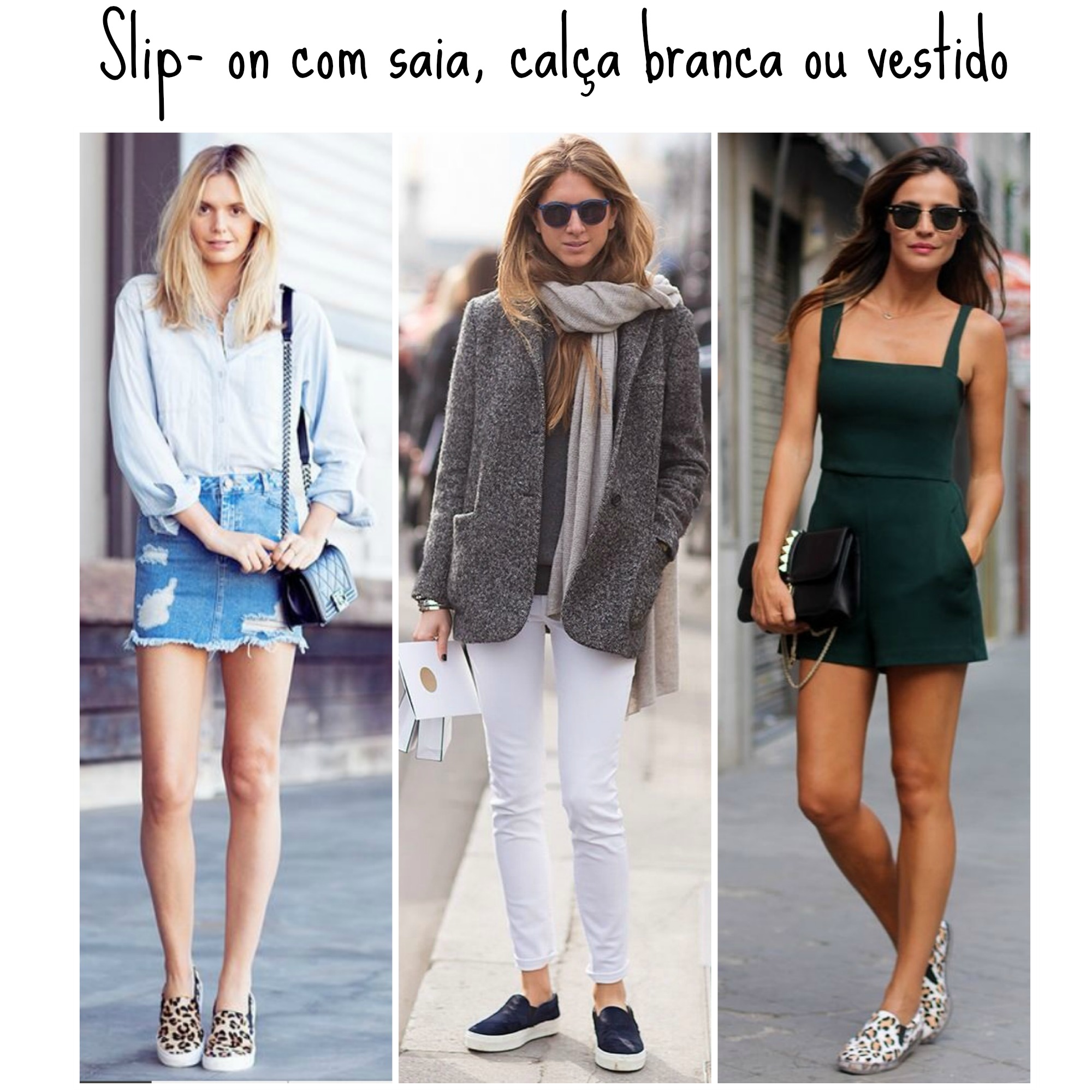 Hoje vamos falar um pouquinho sobre a tendência dos slip-ons. Esse acessório casual que esta fazendo o maior sucesso começou a surgir nos pés das fashionistas de plantão desde o começo do ano 2014. Você encontra dos mais caros ( Prada, Christian Louboutin, Alexander McQueen) desde aos mais baratinhos (Steve Madden, Xoxo, Bamboo, Aldo, H&M). Esse acessório é perfeito para quem procura conforto e ao mesmo tempo quer andar por dentro das tendências. Eu já adquiri o meu com estampa de oncinha e não tiro mais do pé 🙂 Adoro usar com roupas mais casuais como jeans e t- shirt ou então montar um look mais cool com saia ou vestidinho. Veja a minha dica de como usar o sapatenis: