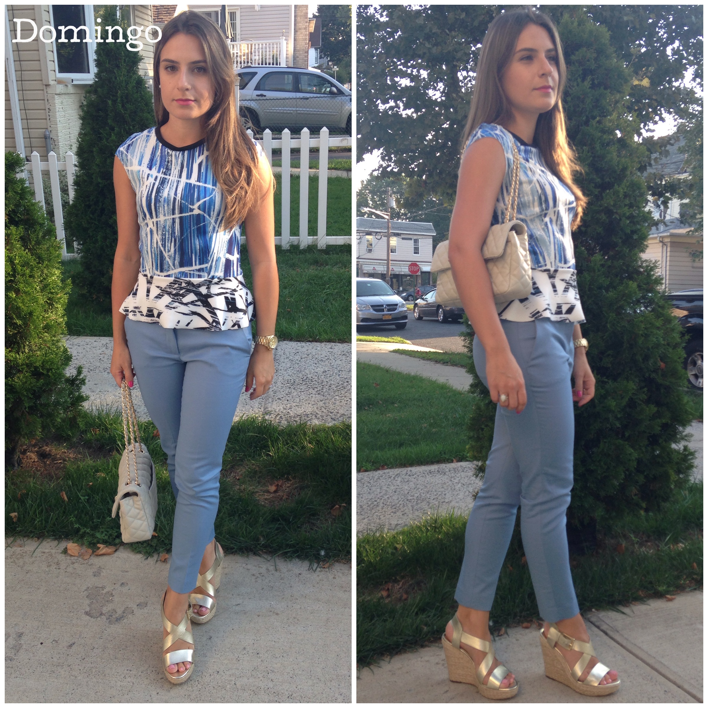 Calça e blusa peplum Zara, Sandalia Michael Kors, Bolsa Marshalls, Relógio Michael Kors and batom Fruit Punch Milani