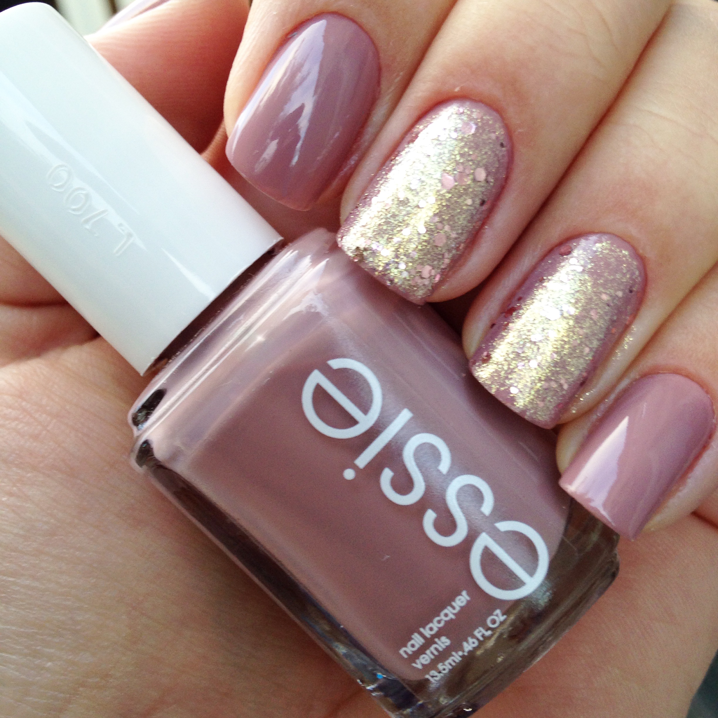 O esmalte escolhido foi o LadyLike da nova coleção de Outono da Essie. Passei 2 camadas do nude e optei por duas unhas com o esmalte Gilded Rose da coleção Brocades da Maybelline.