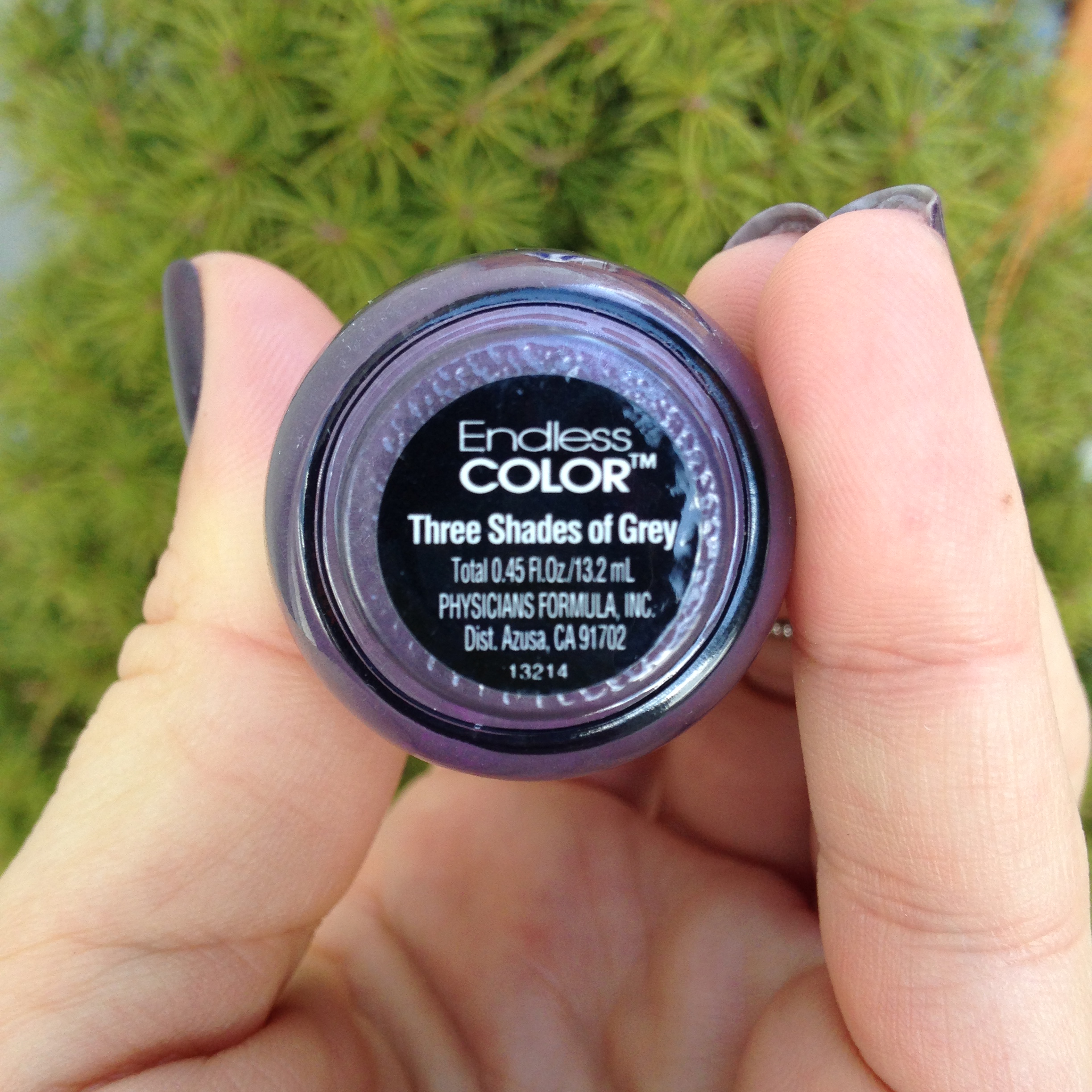 Aqui esta o esmalte escolhido para essa semana. Optei por uma cor escura com cintilancia que é a cara do inverno hehe. O esmalte é o Three Shades of Grey da marca Physicians Formula que parece uma mistura de cinza com roxo. Passei 3 camadas para alcançar a cor desejada sem deixar manchas. As unhas estão mais curtinhas porque algumas quebraram então resolvi igualar todas do mesmo tamanho 😦