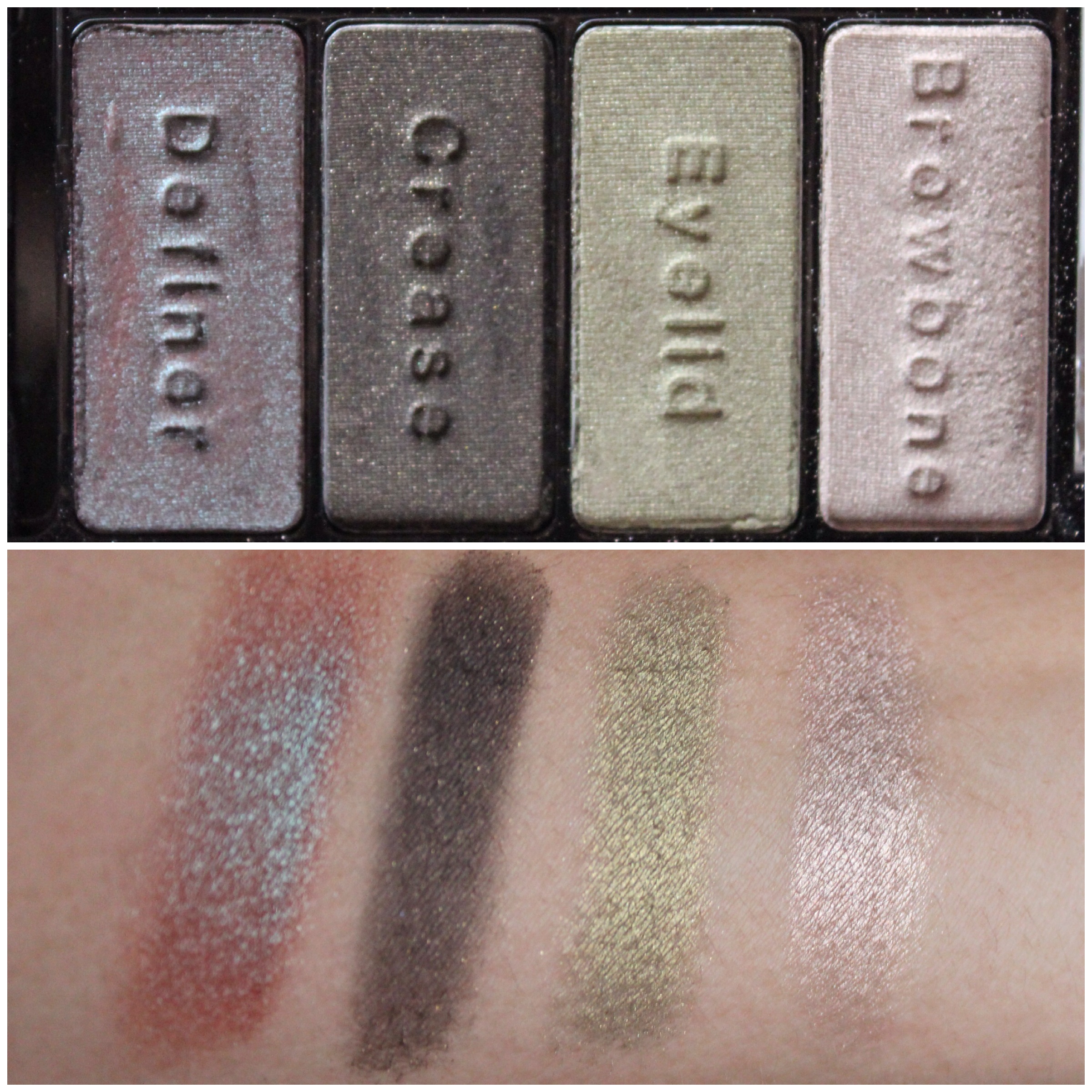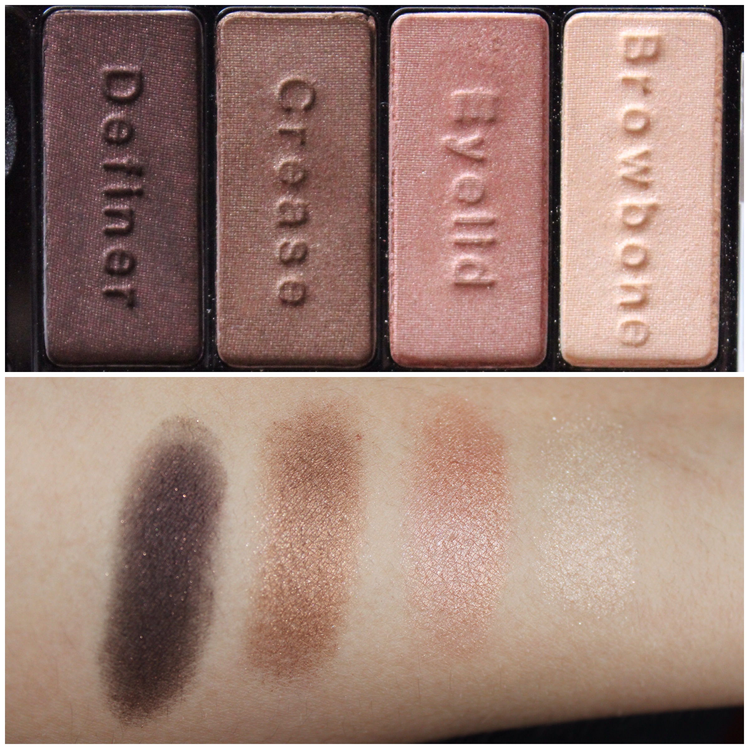 São 8 cores lindas, sendo divididas em dois lados: um lado com cores mais quentes em marrom, e do outro lado cores mais frias como o acinzentado e o verde. O legal é que se você não é nenhum expert em fazer maquiagem, essa paleta te mostra exatamente o que usar em cada parte do olho. E vem dividida assim: Browbone (abaixo da sobrancelha), Eyelid (pálpebra móvel), Crease (côncavo) e Definer (para definir ou delinear).