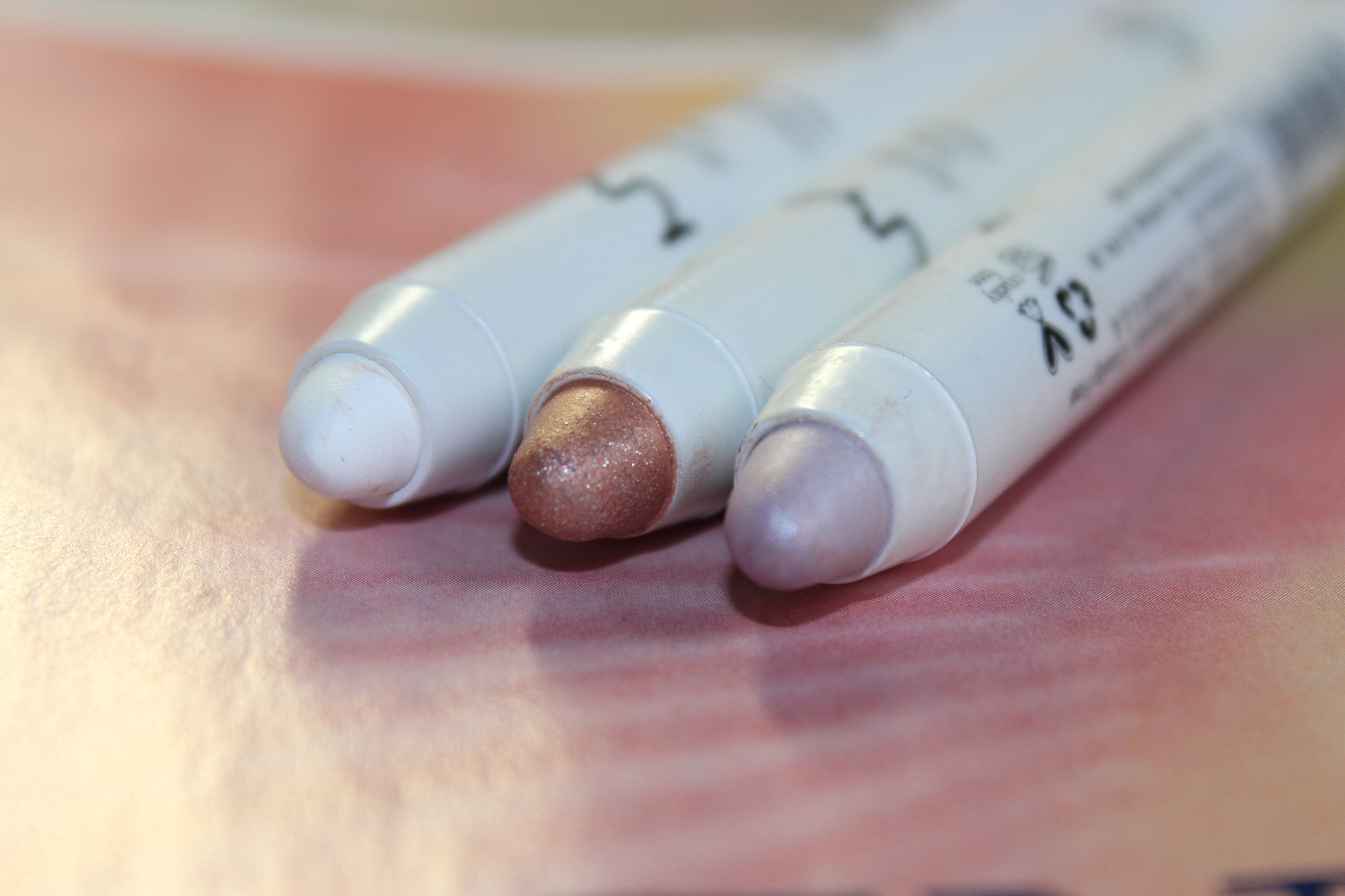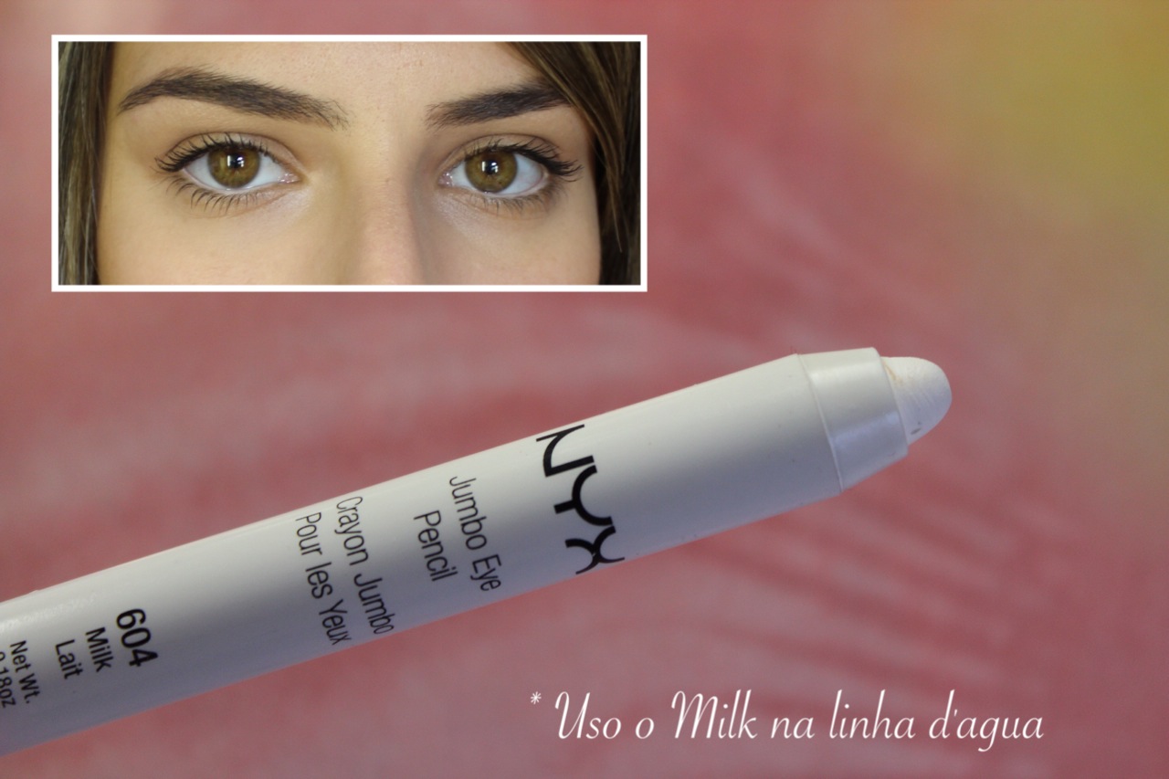 Hoje tem resenha dos meus lápis de olho Jumbo da NYX. Esses lápis/canetas gordinhos servem como delineador ou sombra e possuem uma formula cremosa e duradoura. Eu tenho 3 cores lindas que uso de diversas maneiras. O branco Milk, por exemplo, adoro usar na linha d’agua ou como base para as sombras. É o meu favorito e não pode faltar na minha rotina de maquiagem! Minhas outras duas cores são o Lavender, um lilás bem delicado e o Sparkle Nude, um dourado bem pigmentado com pequenas partículas de glitter.