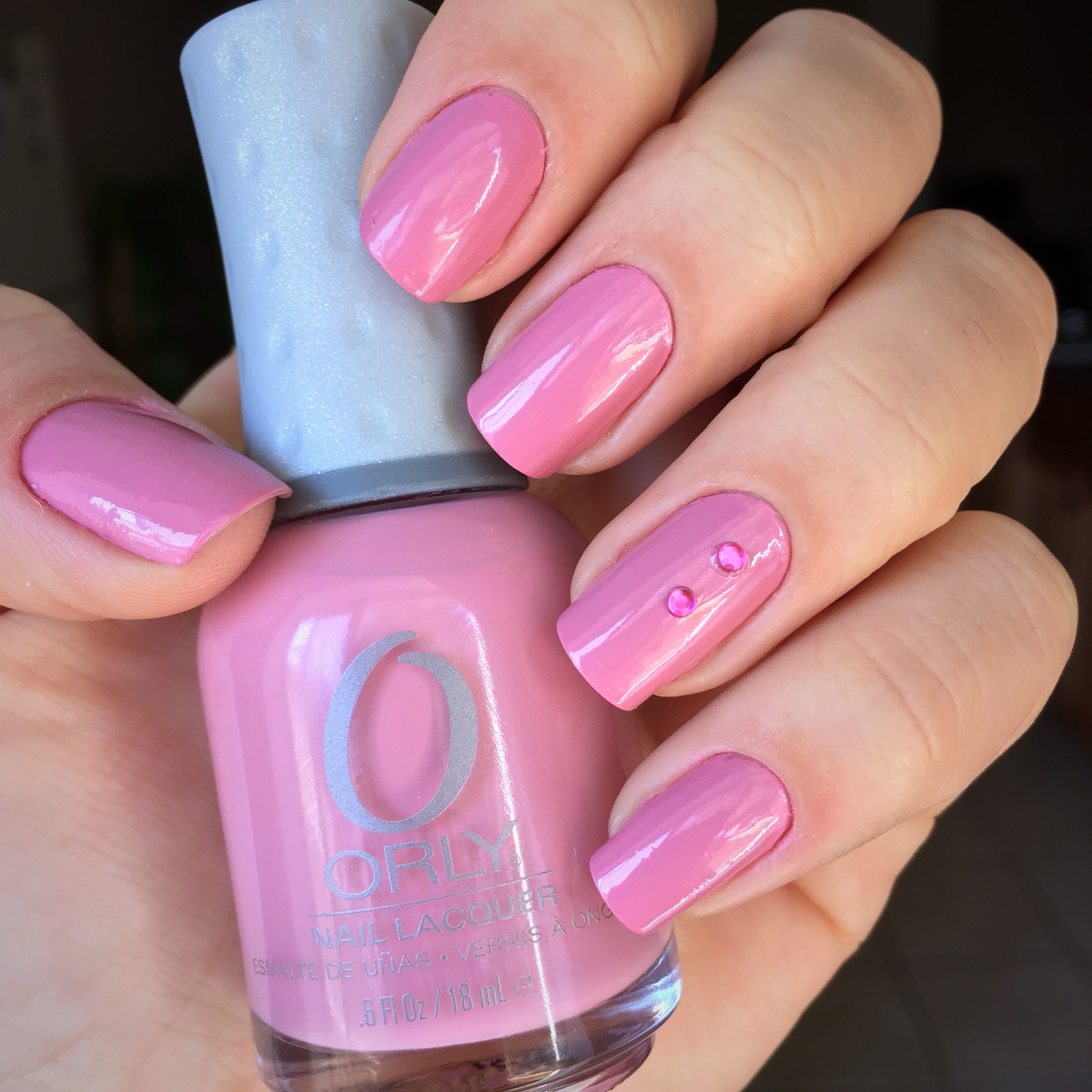 Tudo bem com vocês? Enfim sexta- feira Uhuuul! E isso significa cuidar das unhas e ficar bonita para passear no final de semana! Hoje escolhi um rosinha claro super lindo da marca Orly. Essa marca de esmalte é super famosa aqui nos salões de beleza dos EUA pois são super pigmentados e de ótima qualidade, sem falar na duração né…. O nome dessa cor é o Everythings Rose. Eu passei duas camadas e para dar um toque especial adicionei duas pedrinhas rosa escuro na unha do anelar. Olhem só como ficou graciosa: