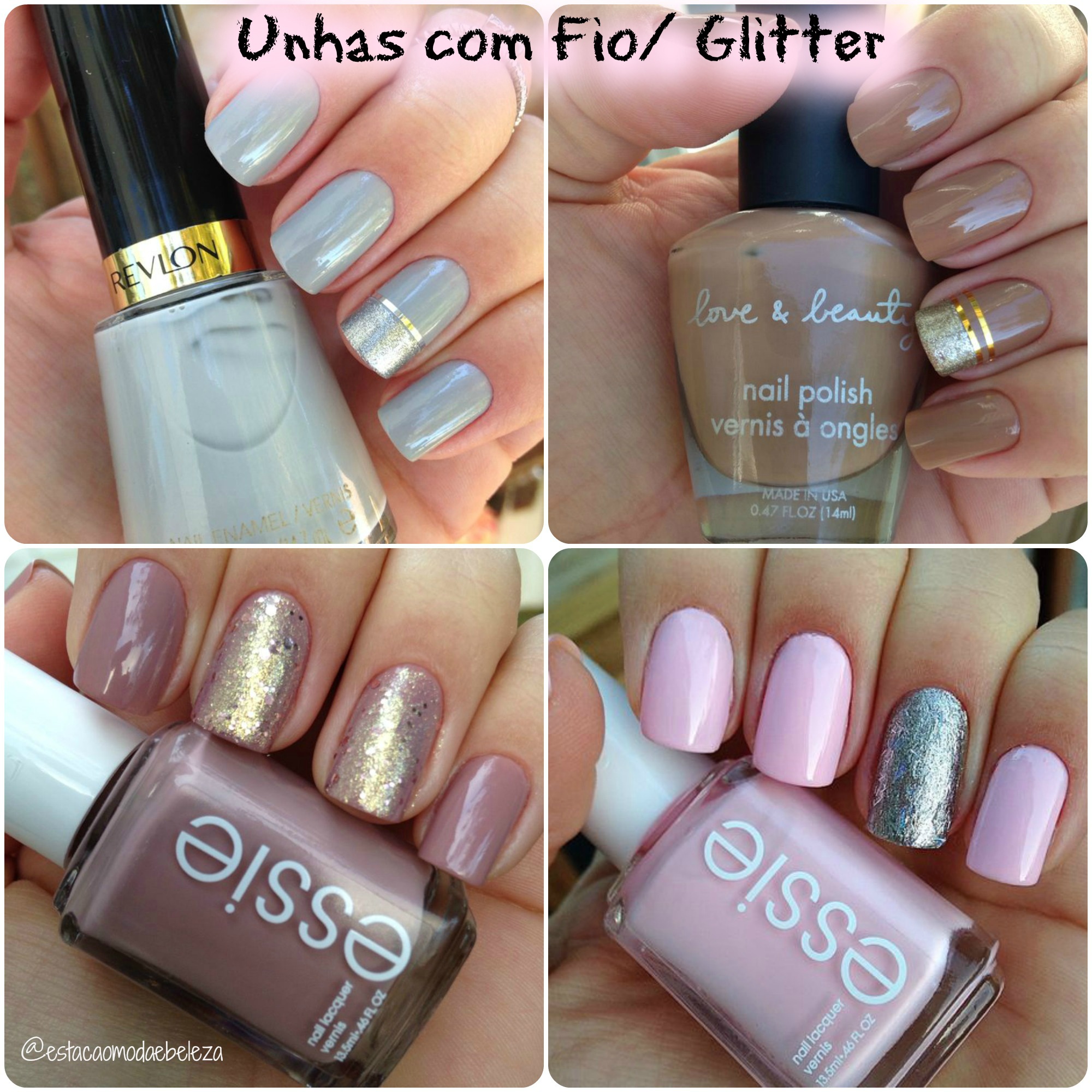 E para finalizar, juntei algumas das minhas unhas usando glitter e fio dourado e prateado. Adoro os fios! Eles deixam a unha super elegantes. E o glitter, nem preciso dizer né! Da vida para qualquer unha com qualquer esmalte haha 🙂