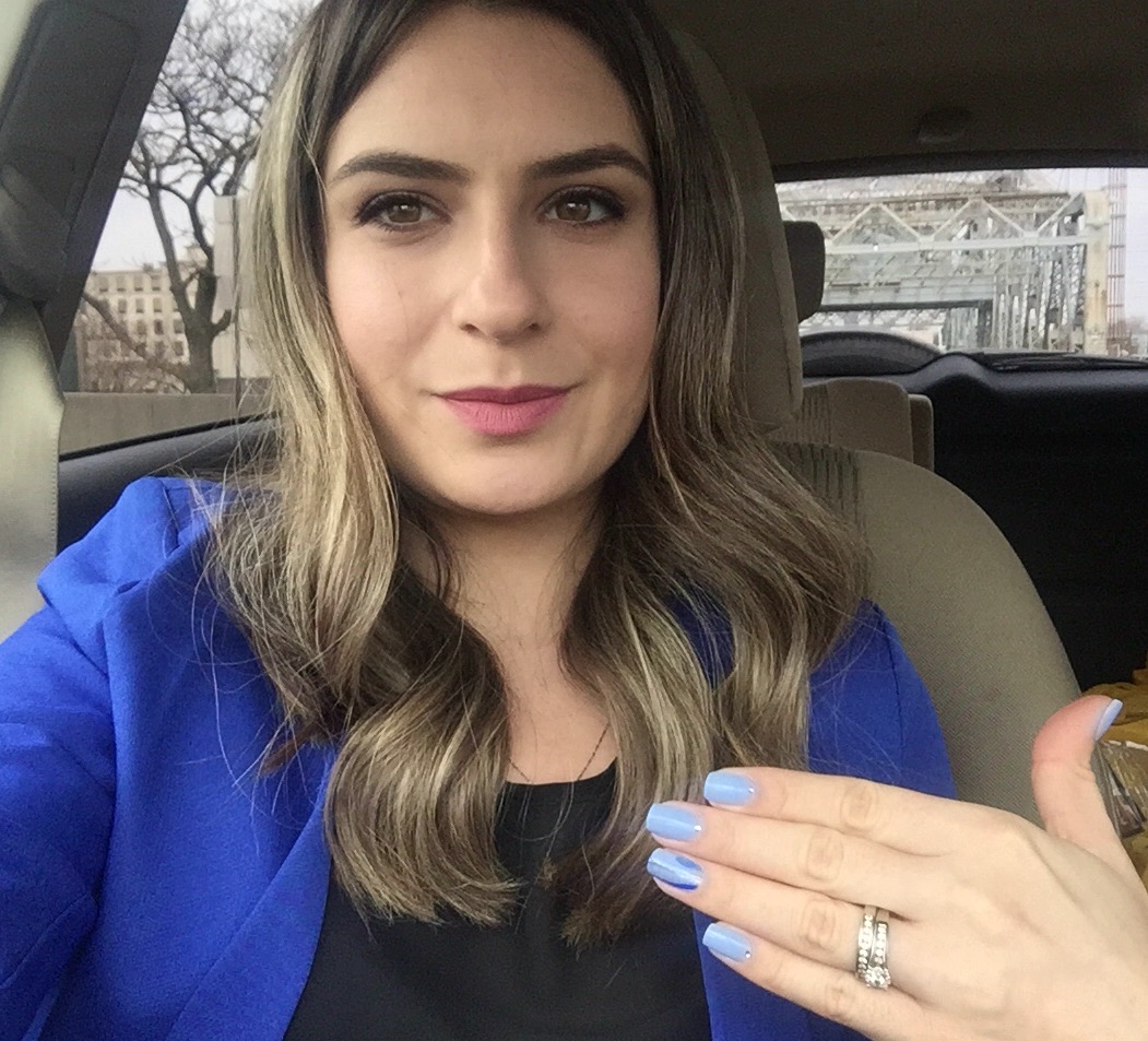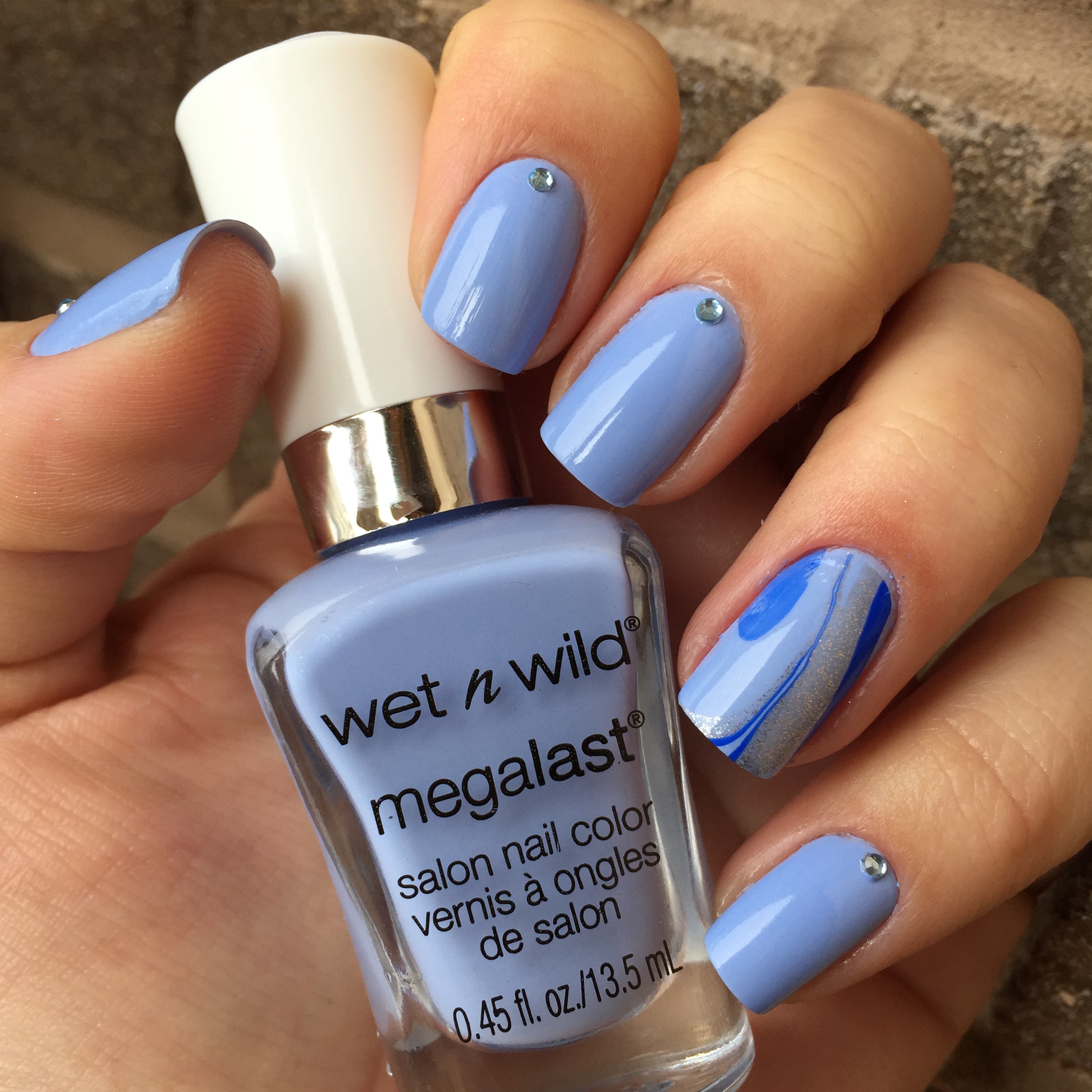 Hoje vim mostrar para vocês meu esmalte escolhido e contar um pouquinho do que rolou no final de semana. Eu optei por um azul pastel que esta super “in”. A cor é a Wear Skinny Jeans da Wet n Wild Megalast. Resolvi fazer algo diferente e especial, afinal, no sábado participei de uma festinha na igreja onde iriam sortear uma bolsa da Coach para a unha mais “bonita” da festa. Então não economizei na criatividade e decidi fazer um “efeito de mármore” usando esmaltes na agua. Sempre achei esse efeito super legal e diferente e resolvi testar.