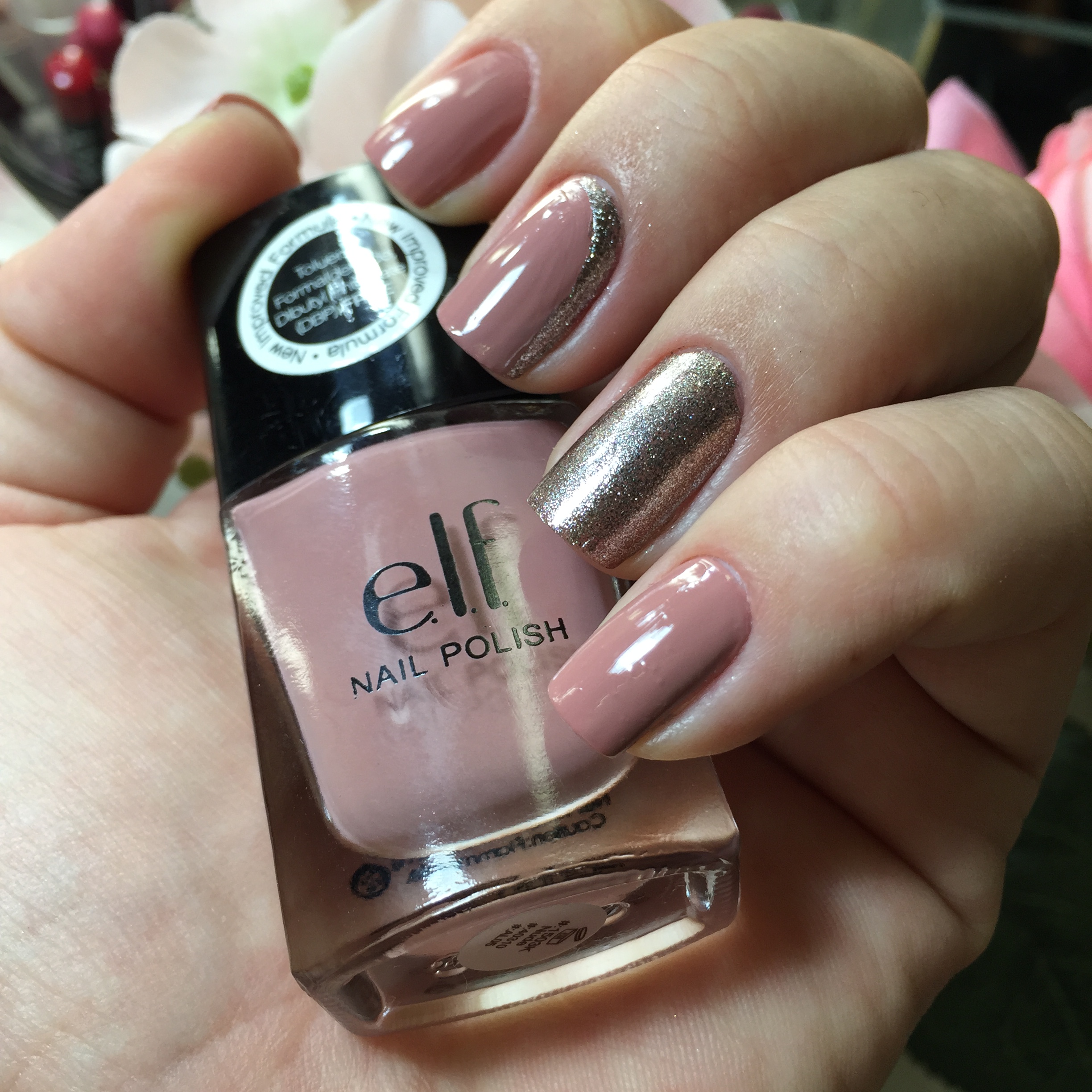 Bom dia! Como foi o final de semana de vocês? Não tive tempo de postar a unha da semana na sexta-feira, como de costume, então vim mostrar aqui hoje os detalhes dessa unha neutra que escolhi para passar a semana. O esmalte é o Nude da e.l.f que recebi no Beauty Bundle que já fiz video para vocês. Passei duas camadas desse nude lindo com fundo mais rosado, e fiz a unha do anelar com um dourado também puxado para o rose. Para dar um toque diferente, acrescentei uma linha do esmalte dourado no dedo do meio no lado esquerdo da unha. Achei que ficou super charmoso! Vejam só: