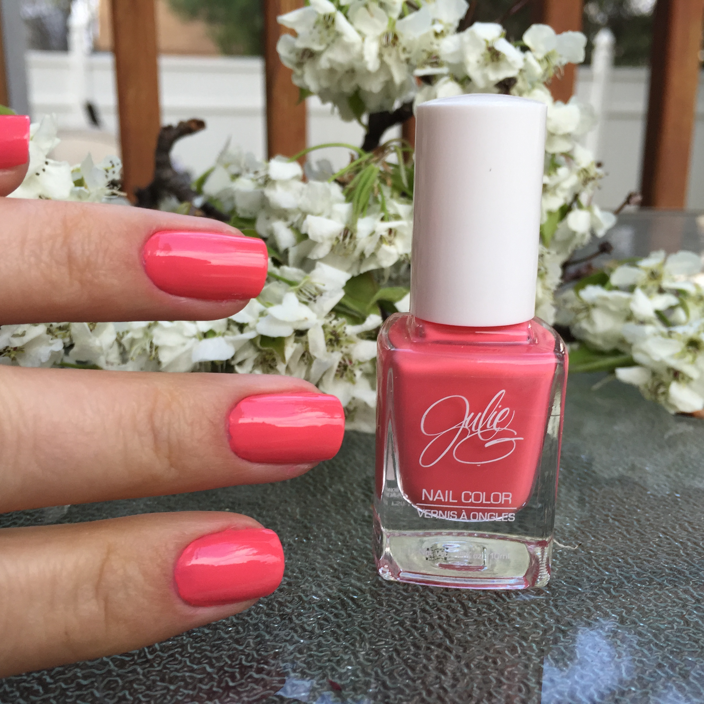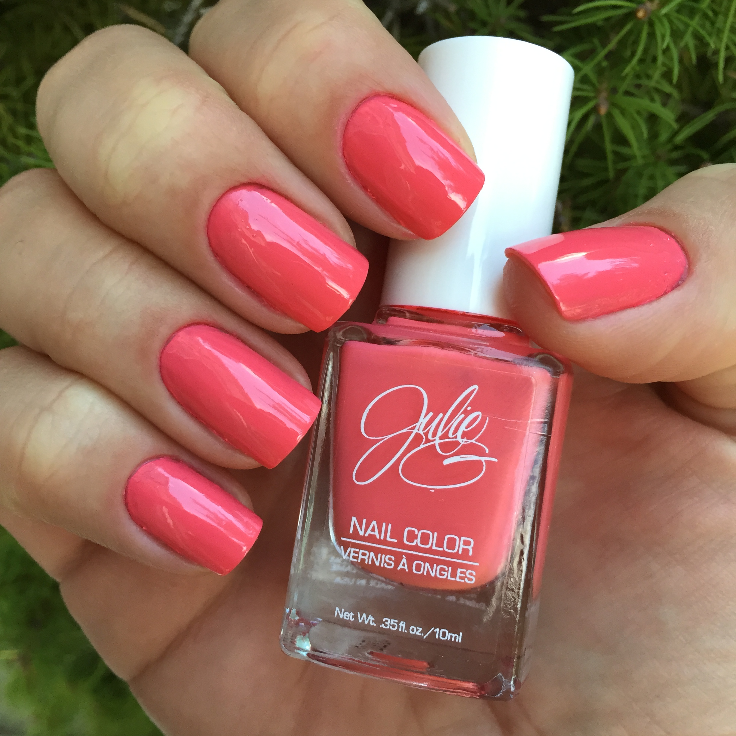 Toda semana é uma luta na escolha da cor do esmalte. São tantas opções, e apenas quem é apaixonada por esmaltes, assim como eu, entende! Pois são todas tão lindas, e são tantos esmaltes, e tão pouco tempo hahahaha…Como eu estava em duvida qual cor passar, postei uma foto na fanpage do facebook com 4 escolhas e pedi ajuda de vocês para decidir a cor. Depois de muita votação hehe, escolhi a mais votada: o esmalte em tom coral/salmão. Acreditem ou não, comprei esse esmalte em Abril do ano passado na feira de maquiagem em NY e ainda não havia usado. A marca é Julie, um esmalte que você pode encontrar nas farmácias Rite Aid aqui nos EUA. Eles custam em torno de US$4 e são bem concentrados. Passei duas camadas da cor Julie’s Fave, e depois de semanas fazendo nail art e filha única, optei por uma unha mais “clean” e sem enfeite. A cor em si já chama bastante atenção :)! Vejam como ficou linda: