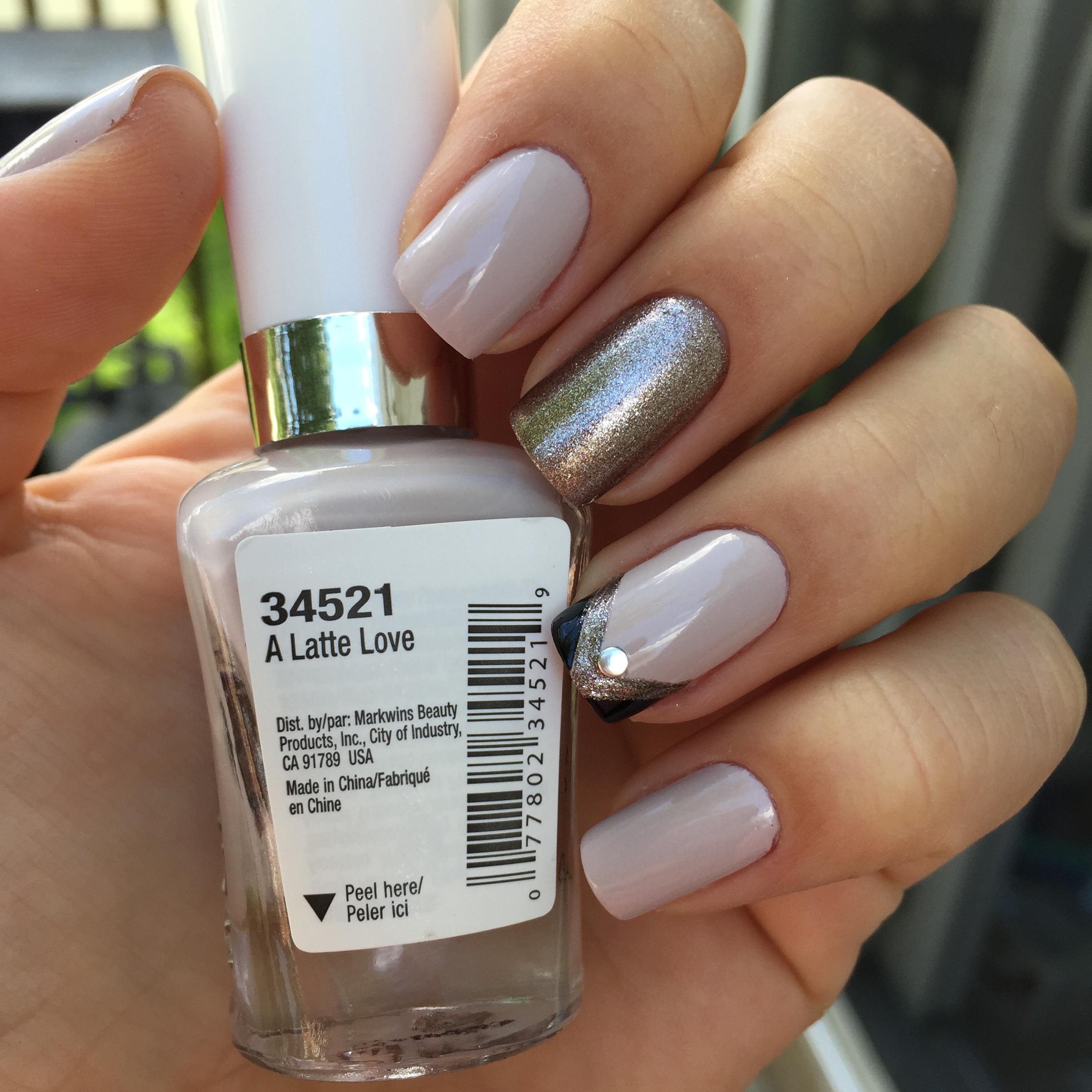 Essa semana as unhas ficaram prontas mais cedo. Ontem meu esmalte já estava descascando e eu odeio! Para mim não tem nada pior que unhas com esmaltes descascado! haha Então resolvi dar um trato ontem mesmo, afinal, qualquer dia é dia de ficar com as unhas bonitas certo!? Para essa unha escolhi um esmalte nude lindoo da Wet and Wild Mega Last na cor A Latte Love. Fiz a unha do dedo do meio com um esmalte prateado e um detalhe de preto e prateado no anelar. E para finalizar o enfeite, coloquei uma tachinha prateada na filha única. Amei essa unha! Ficou super delicada e diferente.