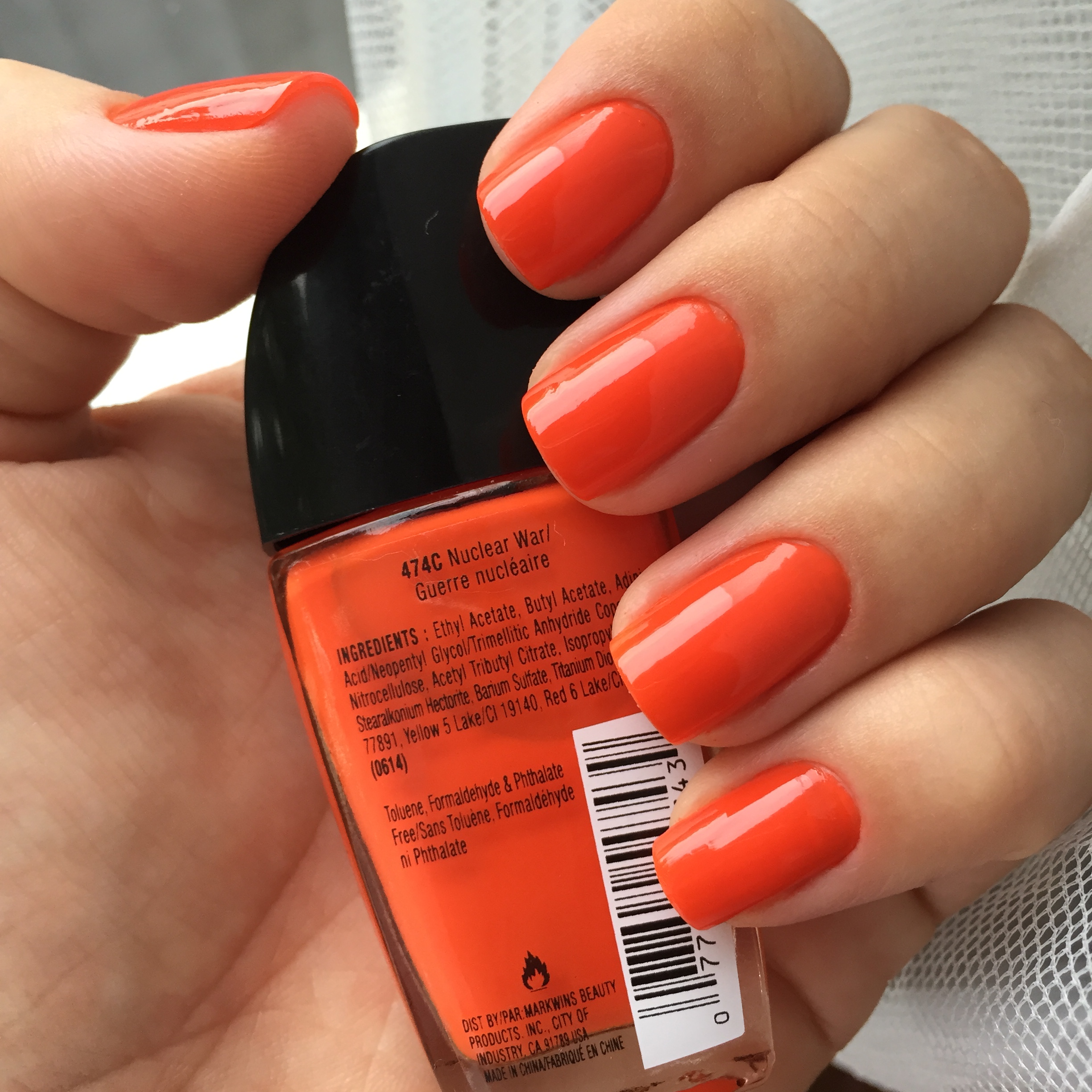 Hoje vim mostrar meu esmalte escolhido para essa semana. Um laranja super lindo e vibrante da Wet & Wild na cor Nuclear War. Apesar de estar apaixonada por cores pasteis para a primavera e verão, eu não abro mão das cores vivas e vibrantes. Sempre quis um esmalte completamente laranja, mas acabava comprando outros tons de coral e vermelho. Então quando achei esse não pensei duas vezes. Eu adoro os produtos da Wet & Wild, então sou suspeita em falar, mas esse esmalte custa apenas .99 centavos e é super pigmentado e concentrado. Passei duas camadas e foi suficiente para ficar com a cobertura desejada. Vejam que lindo: