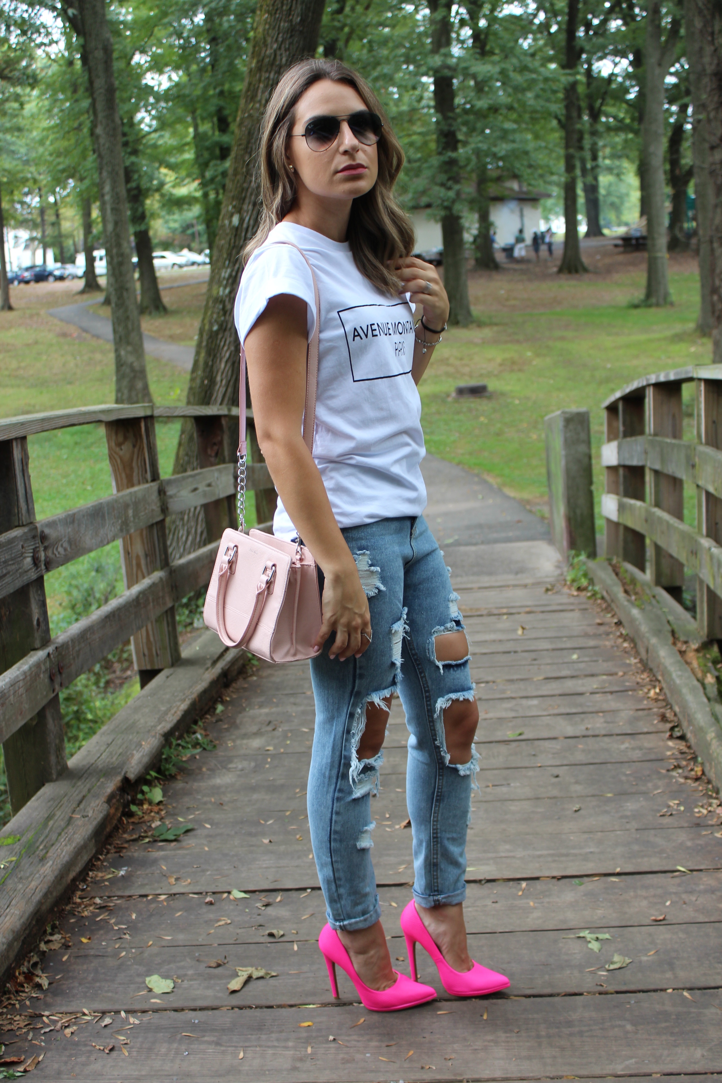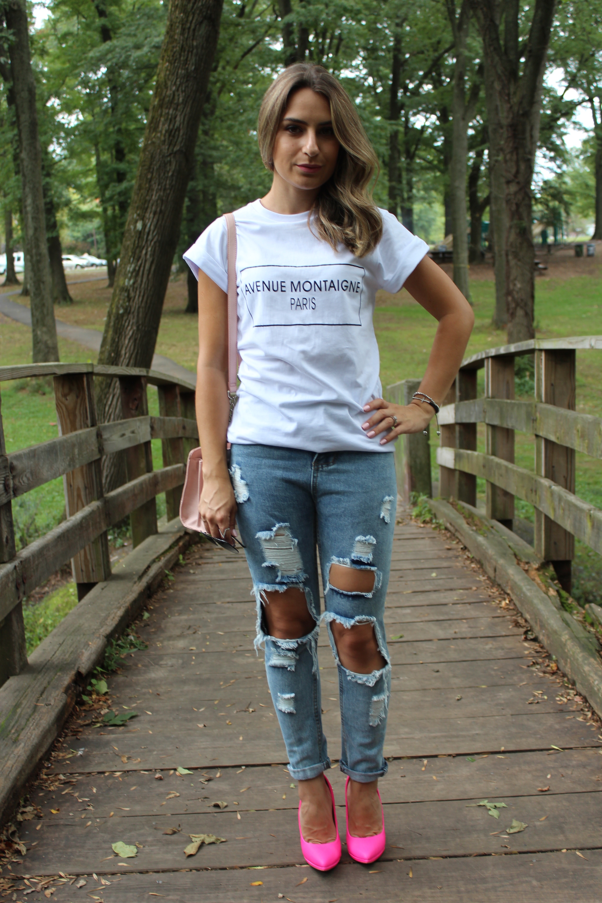 Look do Dia: Calça Jeans Destroyed + Scarpin Rosa