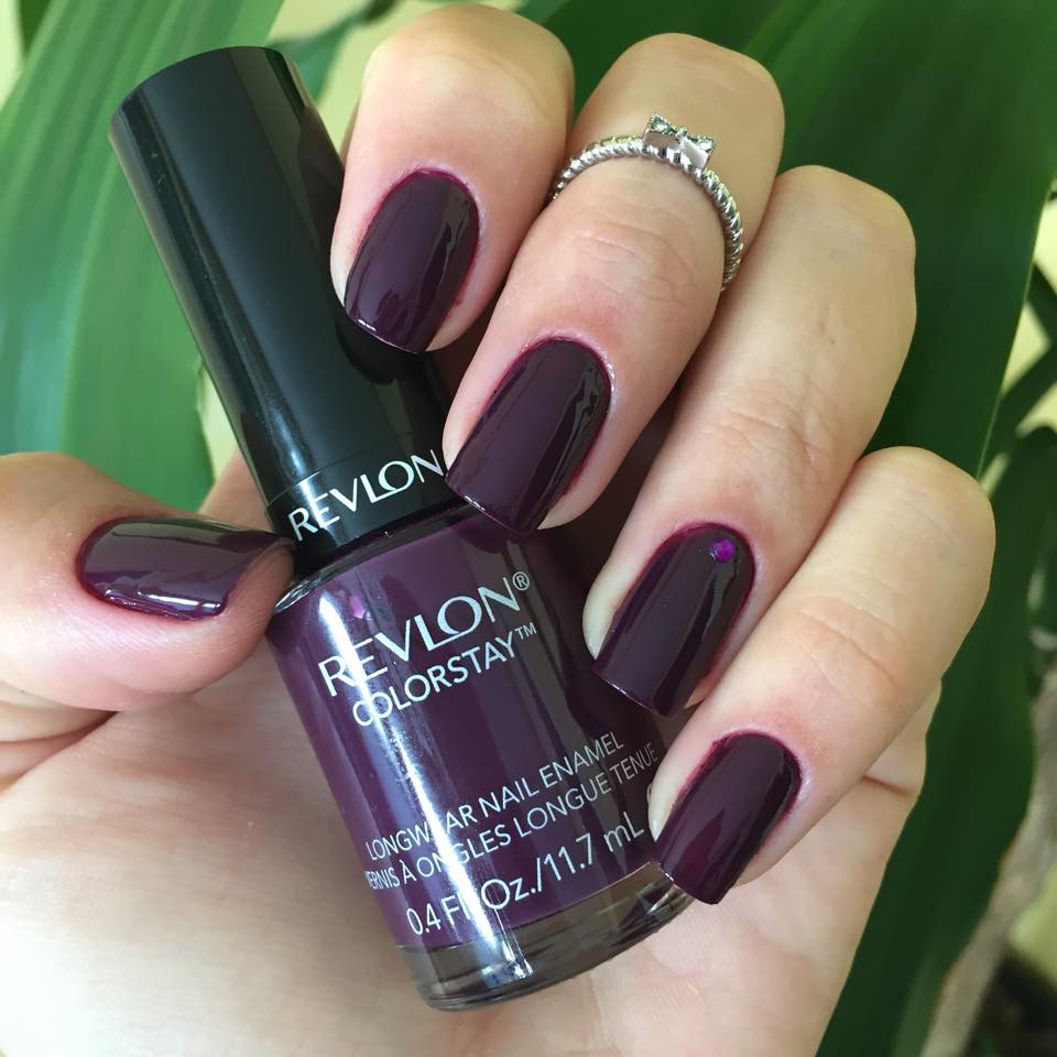 Hoje vim mostrar meu esmalte escolhido da semana que por sinal fez o maior sucesso nas redes sociais. A cor é um roxo escuro estilo beringela com o nome de Bold Sangria da Revlon Colorstay. Passei duas camadas e finalizei com uma pedrinha roxa na filha única somente para dar um charme. Eu amo essas cores escuras pra época de frio! Vejam só: