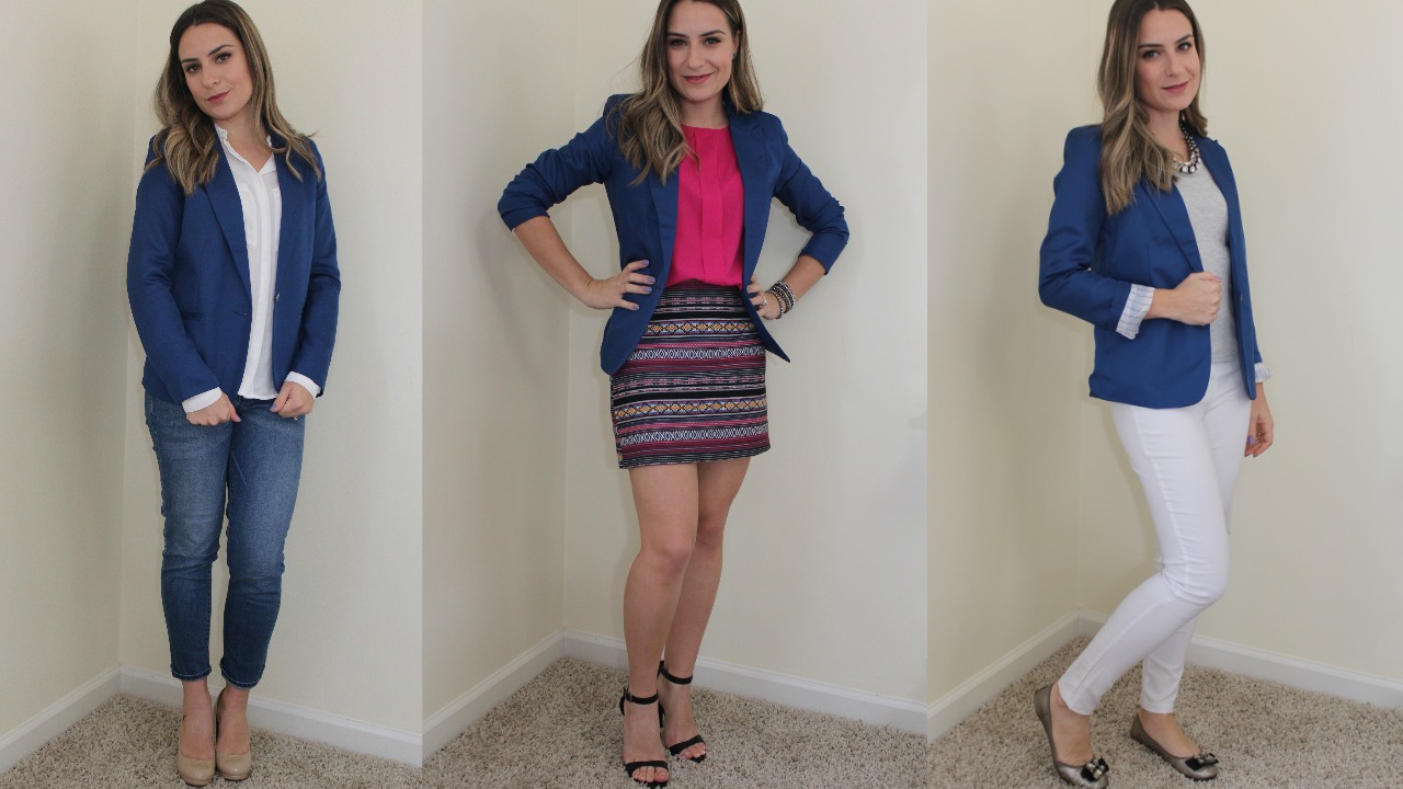 O video de hoje mostro como montei 3 looks diferentes usando o mesmo blazer azul!