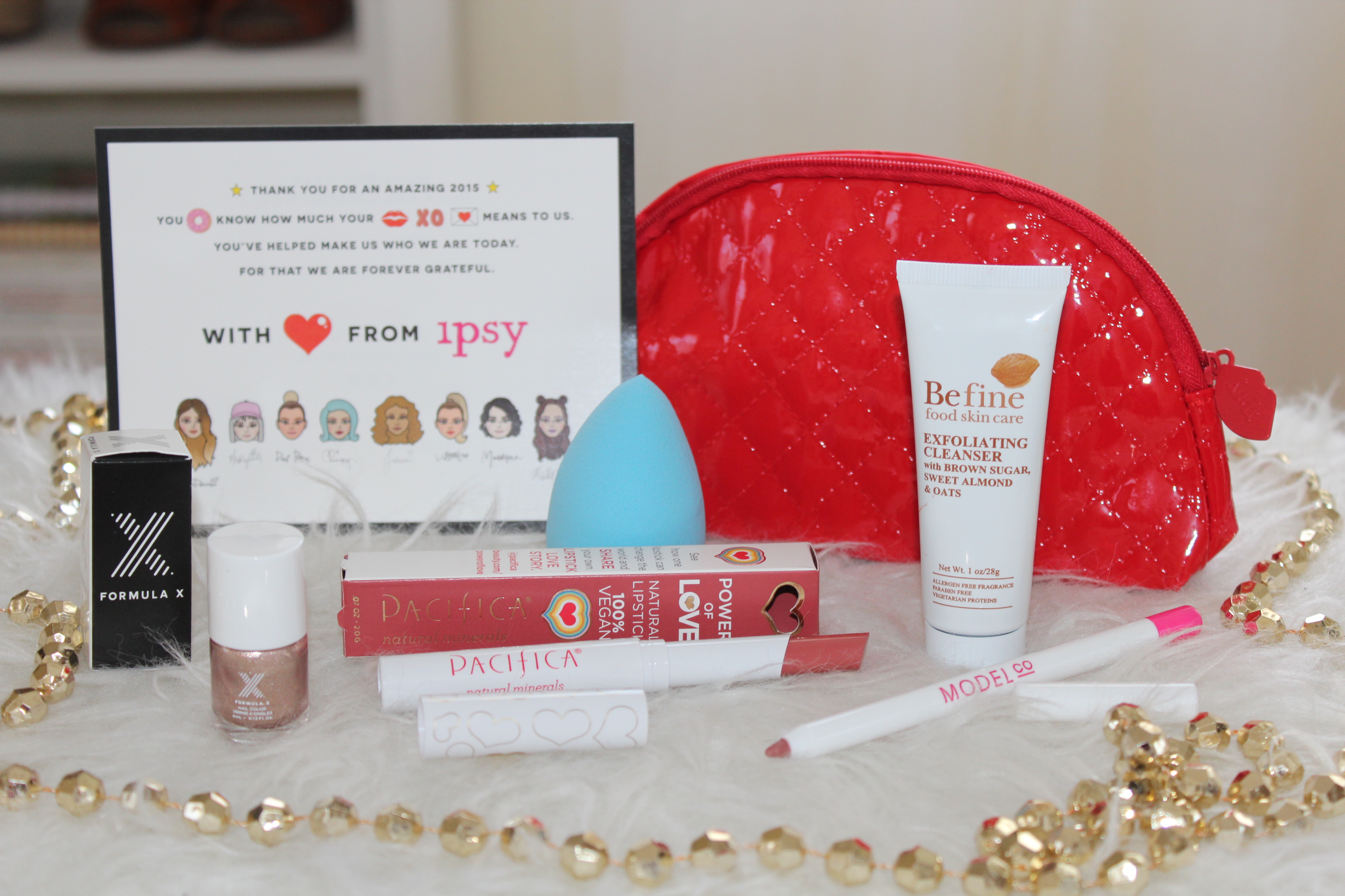 Essa semana chegou minha ultima bolsinha da Glambag do ano. A bolsa em si é super lindinha e veio recheada de coisas legais. O produto que eu mais gostei foi a esponjinha Beauty Blender! Ja estava precisando de uma nova. Veio também um batom matte nude da marca Pacifica, um lápis de boca também nude, um esmalte cintilante da Formula X Sephora e um exfoliante facial da marca Befine. Como falei no post de novembro, vou fazer resenhas individuais dos produtos que eu mais gostar ok!?