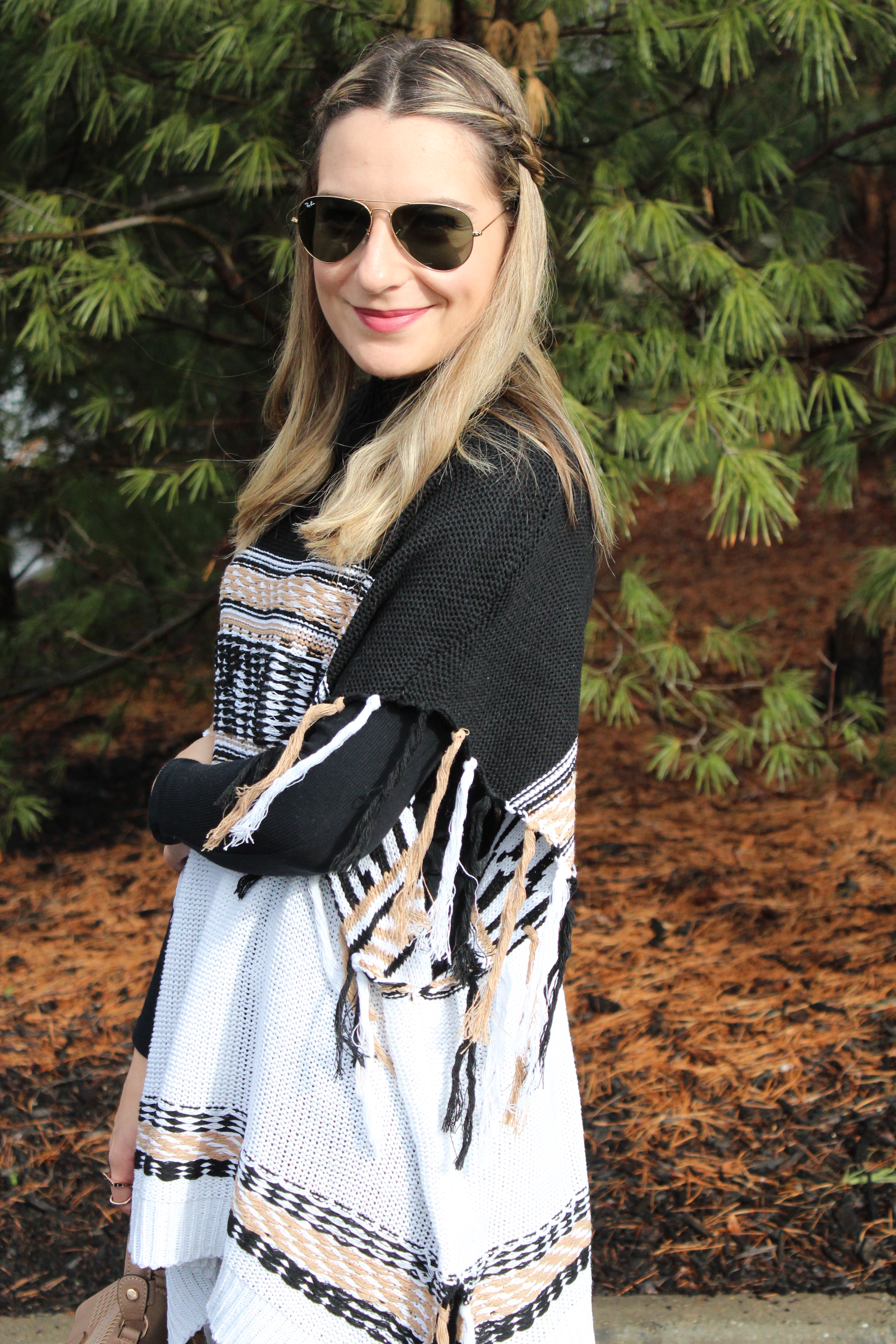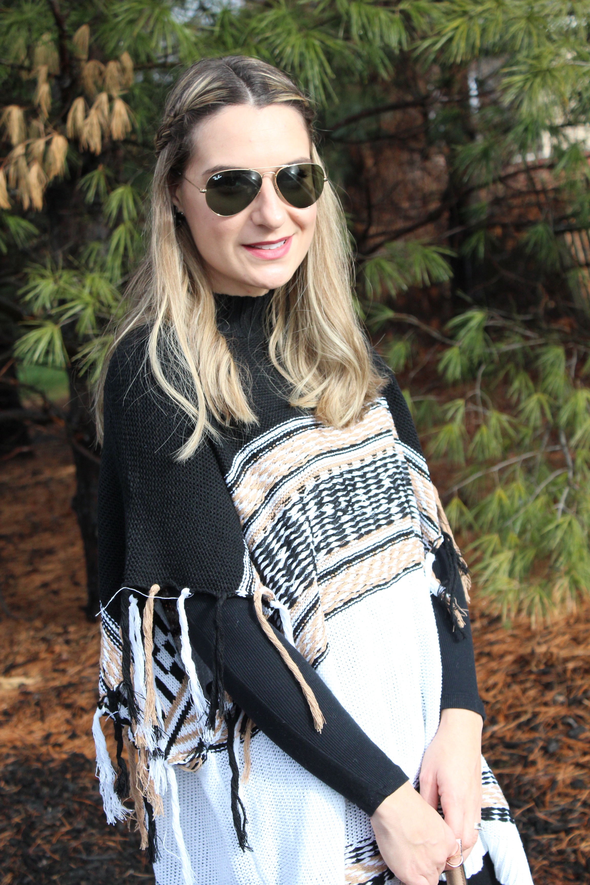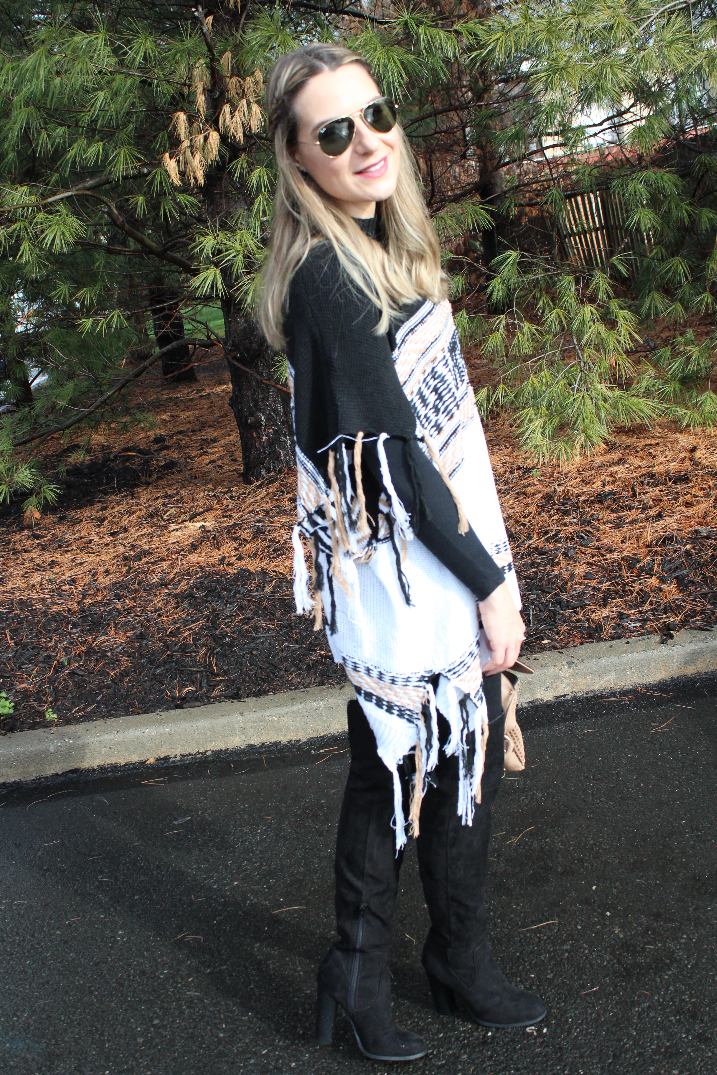 Poncho de Tricô: Shein (aqui) ♥ Camiseta: Forever 21 ♥ Legging: TJMax ♥ Botas OTK: Charlotte Russe ♥ Bolsa: TJMax ♥ Oculos: RayBan