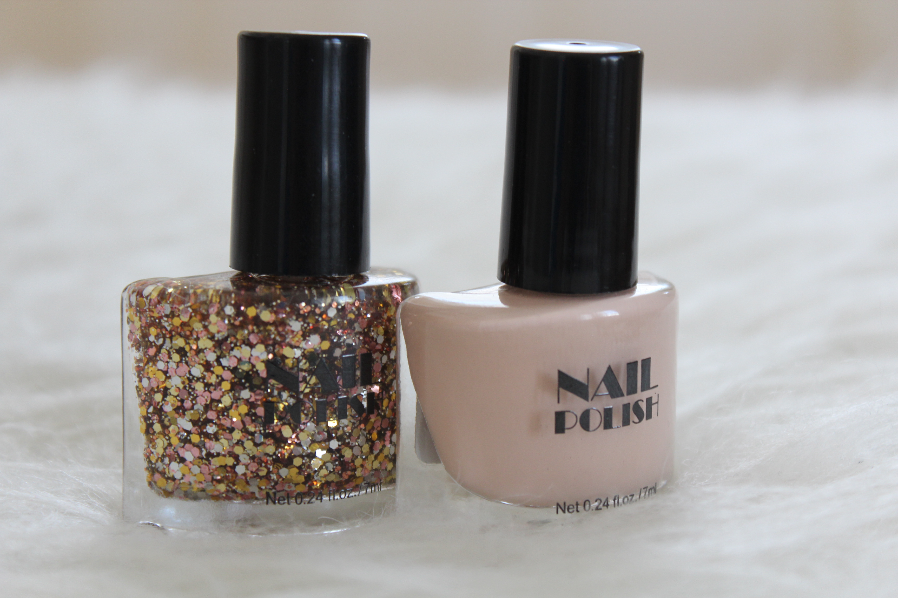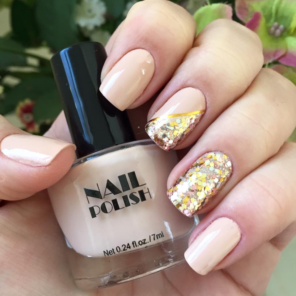 As unhas da semana estão super chique! Usei um combo de esmaltes da marca H&M que vem com um nude cremoso e um glitter em rosa, dourado e prateado. Fiz uma unha com fio dourado e metade esmalte, metade glitter e outra filha única com varias camadas de glitter. Vejam como ficou: