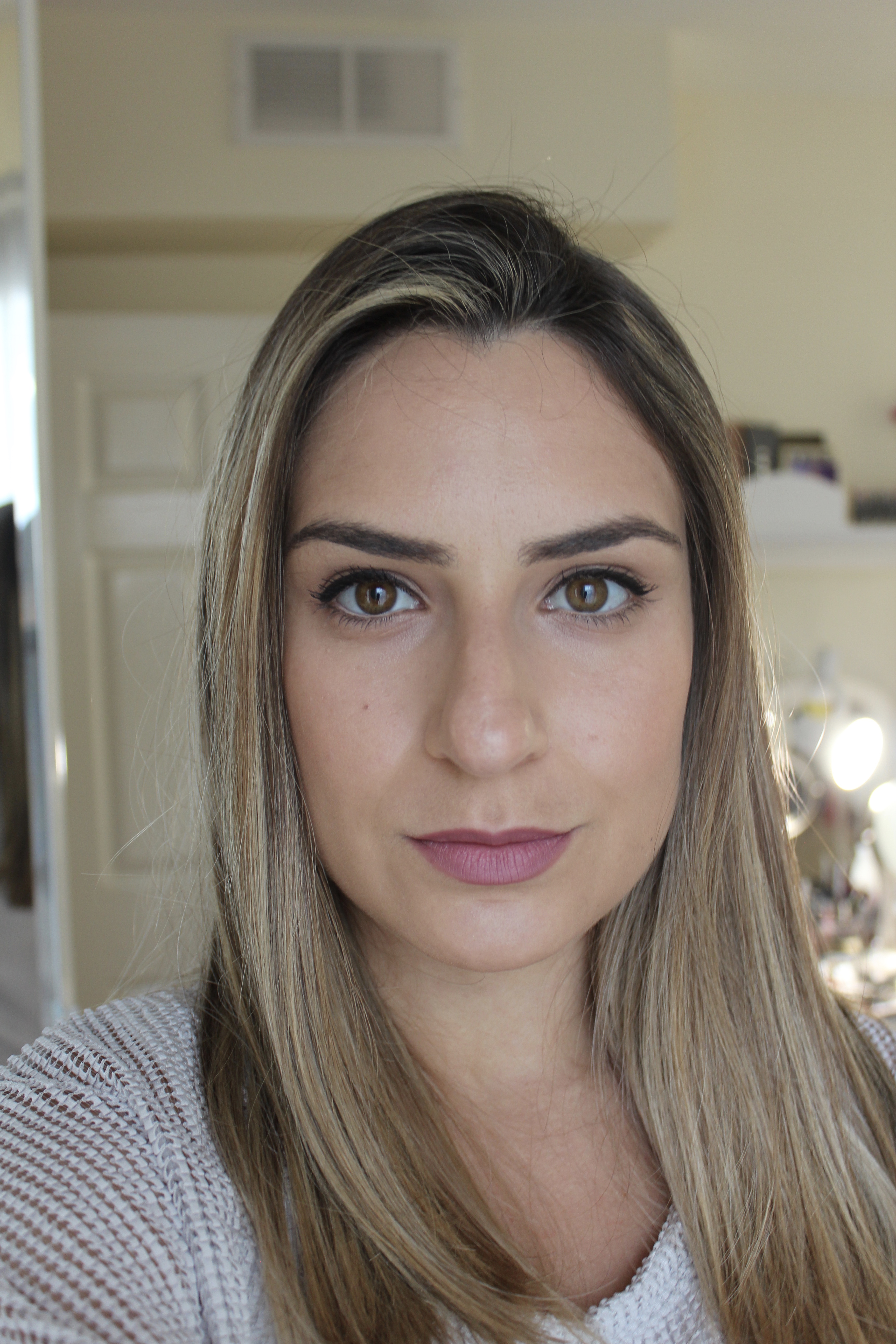 Nesta foto eu apliquei no rosto todo com os proprios dedos, mas quando quero algo mais suave, uso um pincel de base kabuki (o F80 da sigma). Essa cor 27 foi a escolha perfeita para o verao! Guardei a 23 para usar no inverno quando a pele do rosto fica um pouco mais clara.
