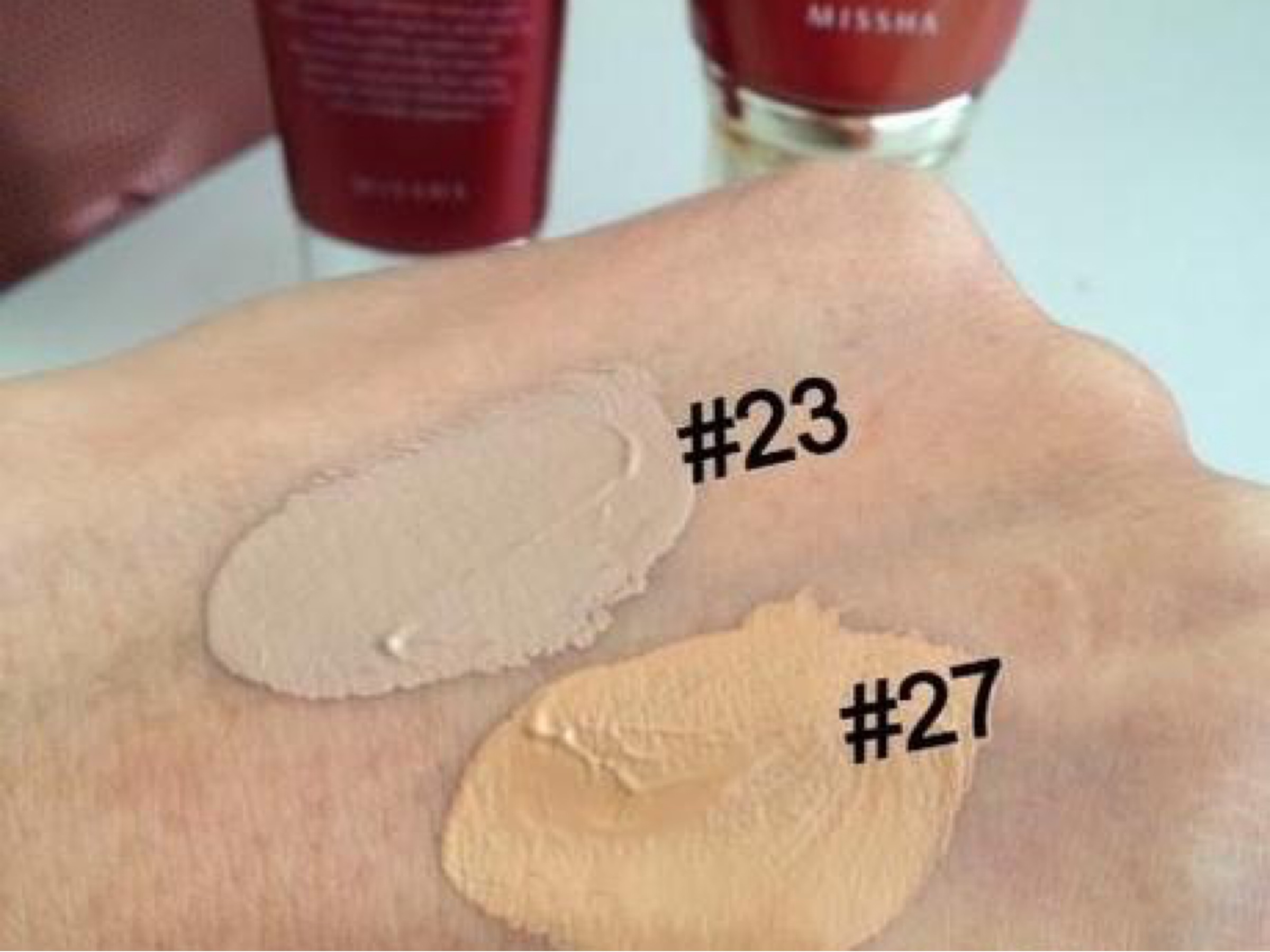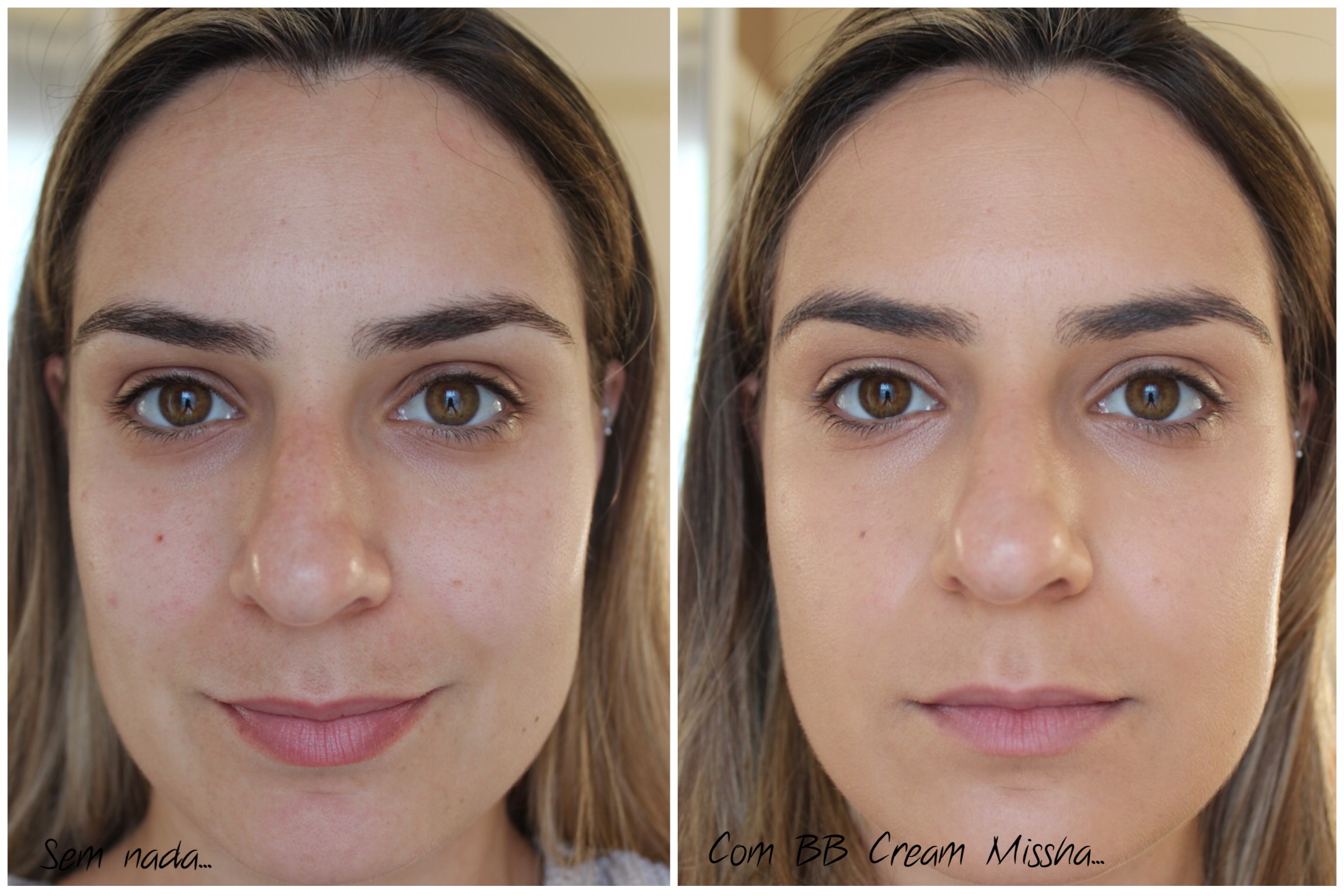 Com a chegada do verão aqui no norte dos EUA, eu sempre acabo trocando a cor da minha base ou BB Cream, pois mesmo não tomando sol no rosto, ele tende a ficar mais coradinho e as cores que uso no inverno acabam ficando claras demais. Então resolvi comprar o mesmo BB Cream da Missha que já uso a algum tempo, porém uma cor acima da minha. Estava usando número 23 Natural Beige que já fiz resenha para vocês aqui. E agora peguei a cor número 27 Honey Beige que tem um fundo mais amarelado. Vejam a diferença entre as duas: