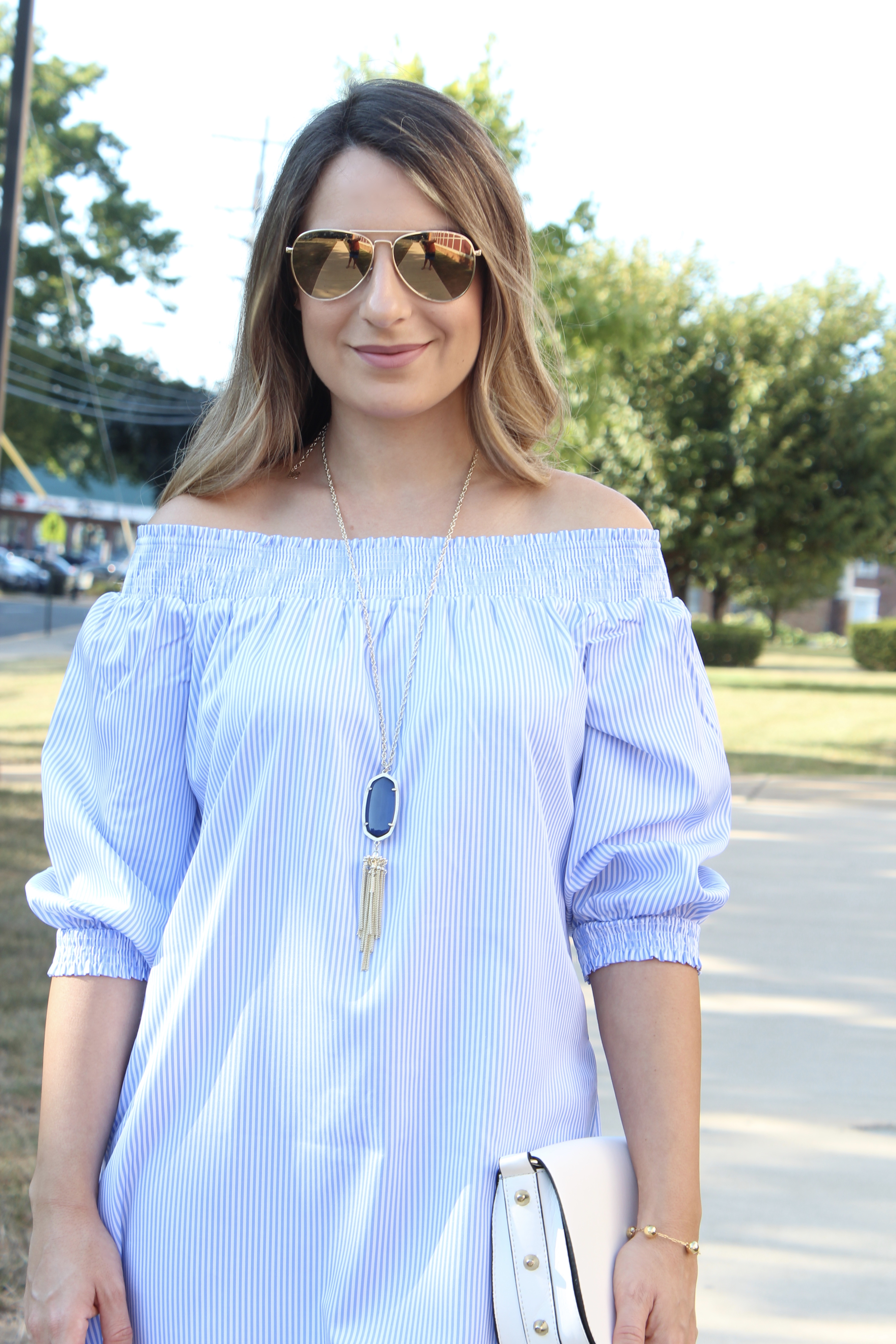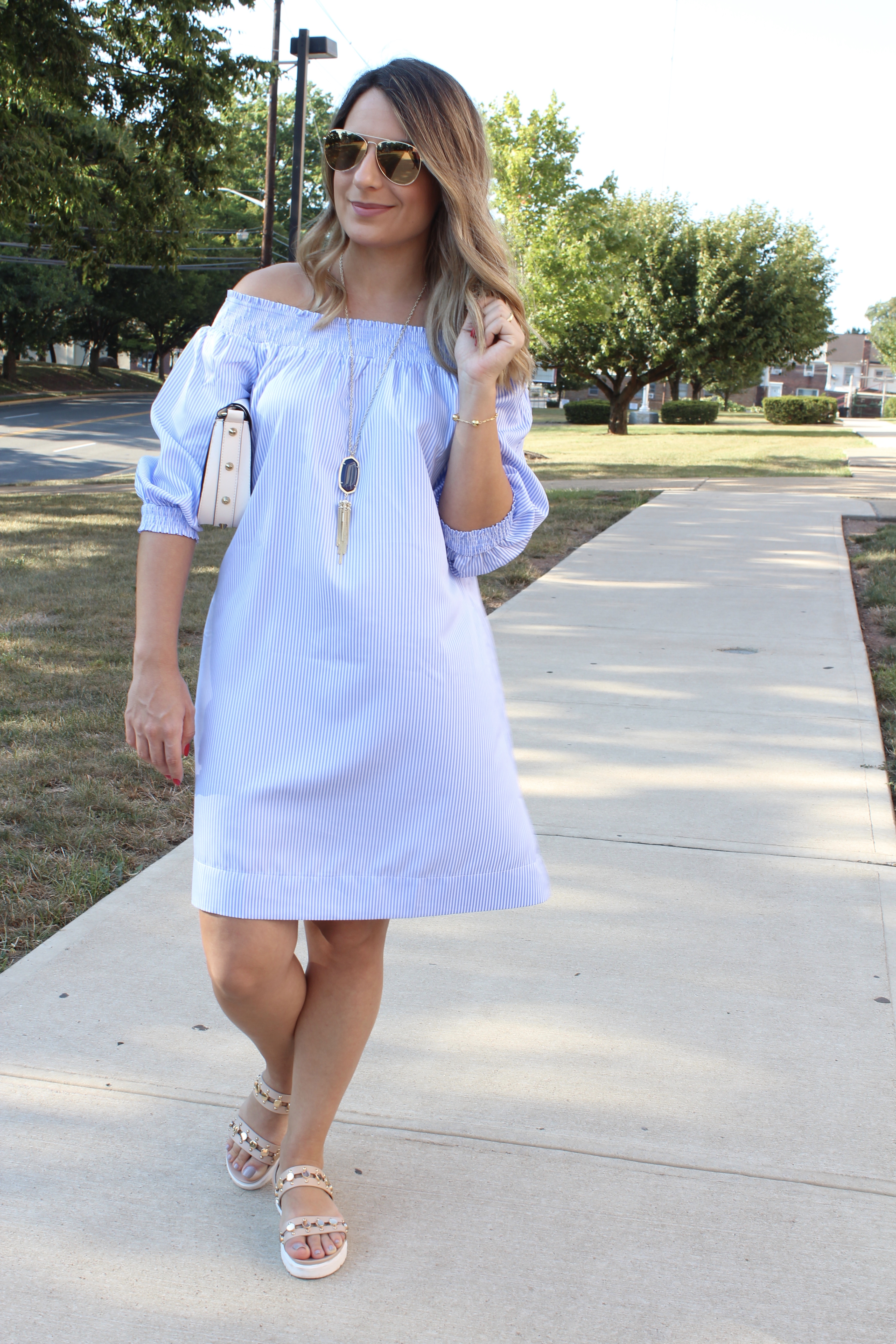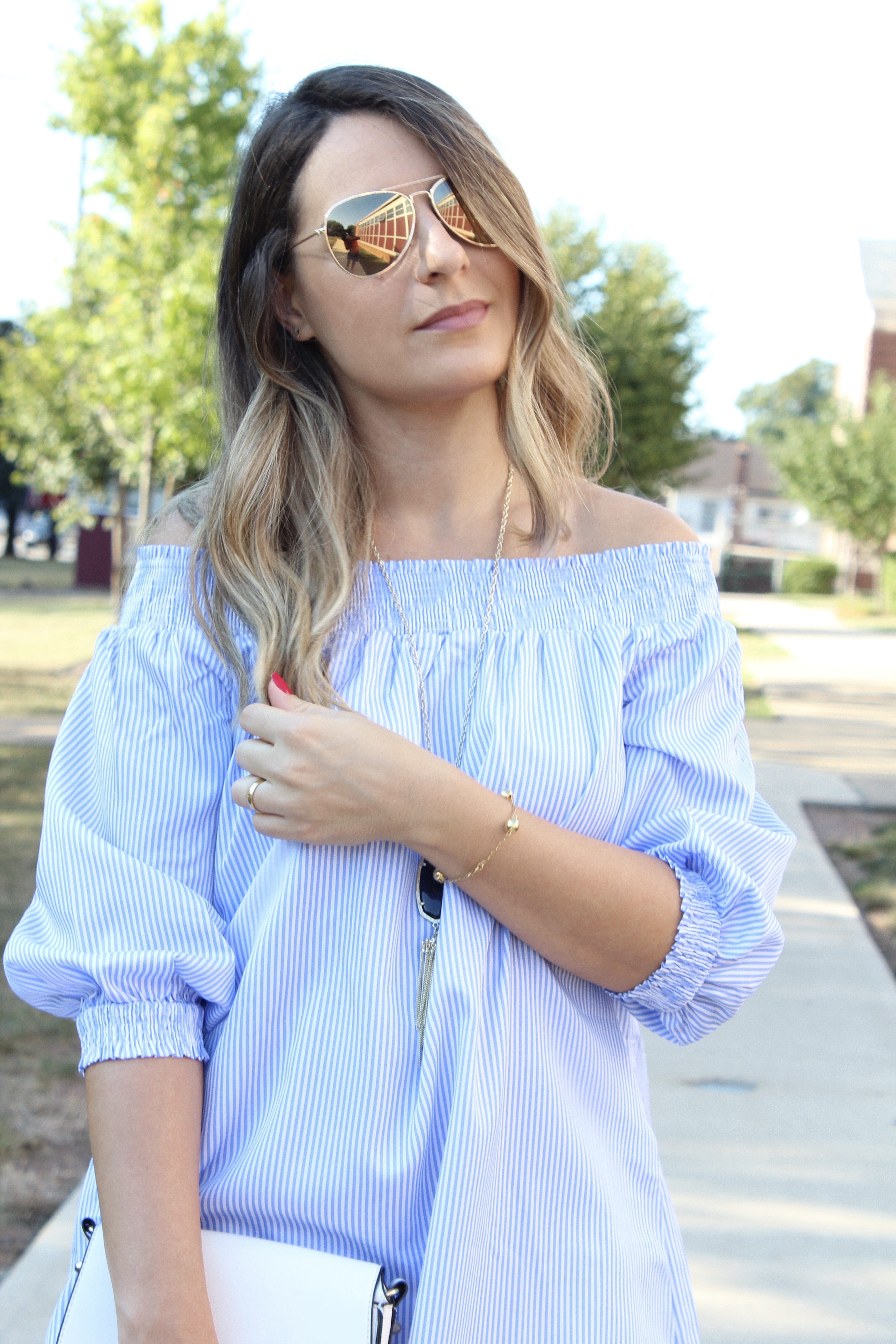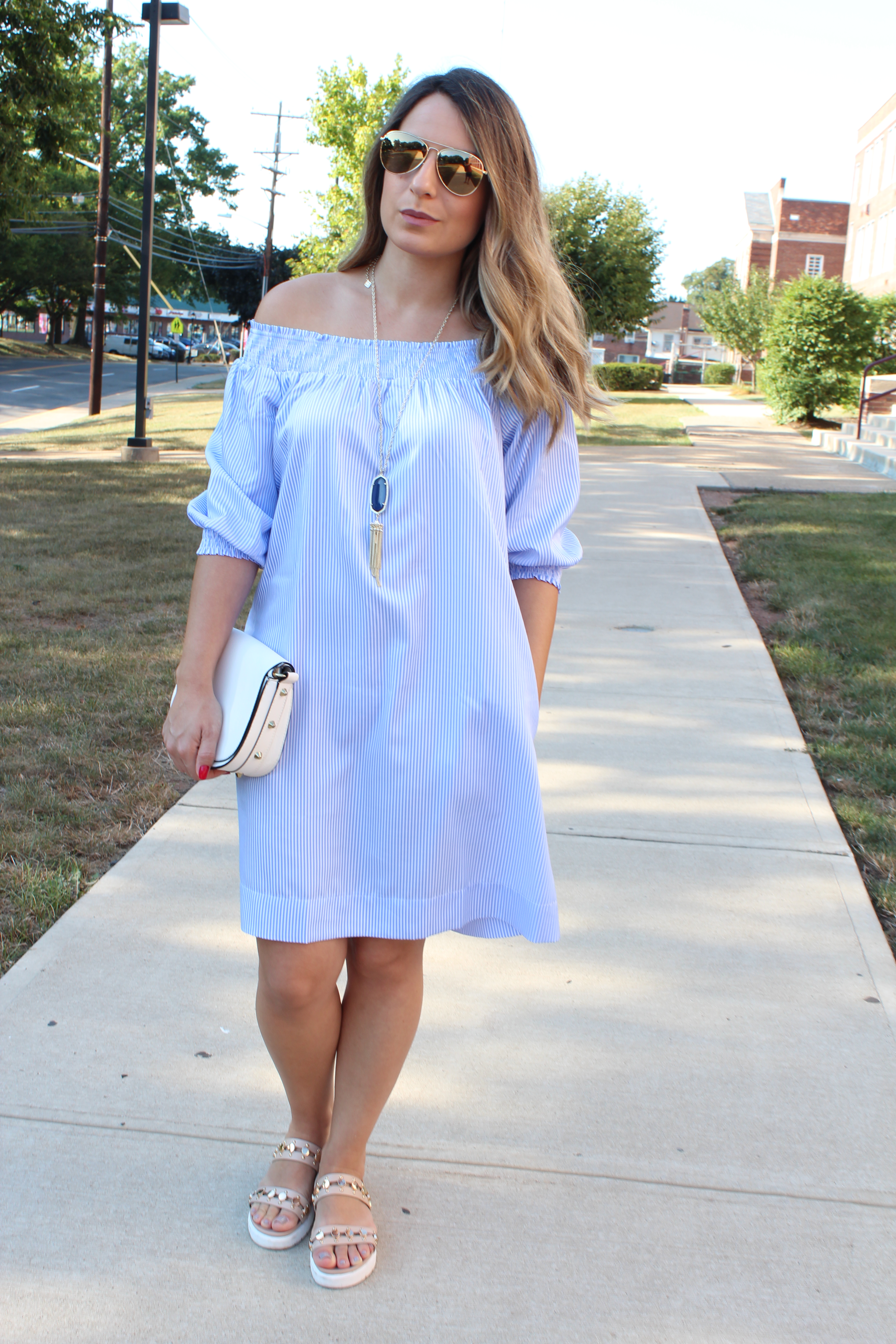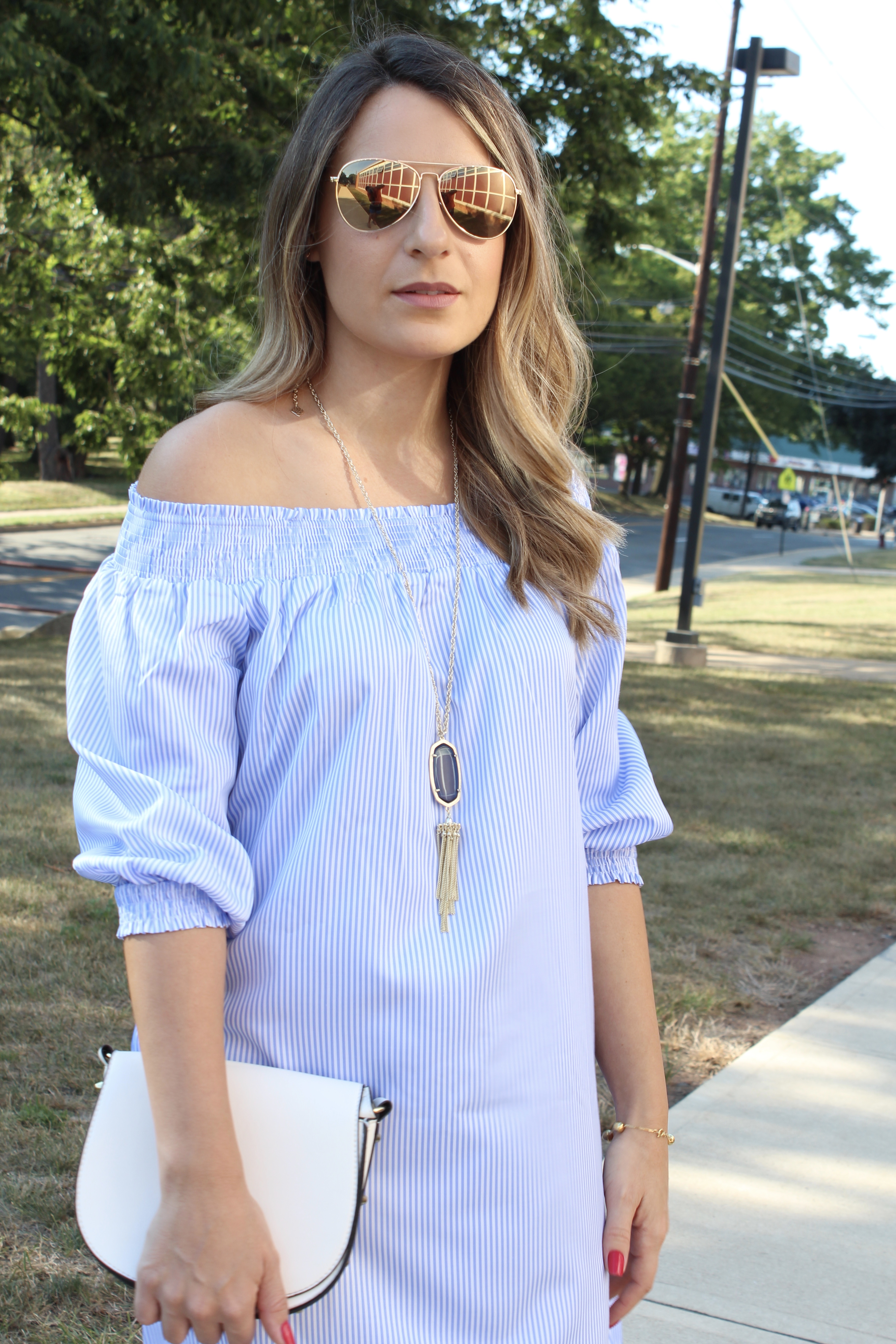 Look do Dia: Vestido Listrado Ombro a Ombro