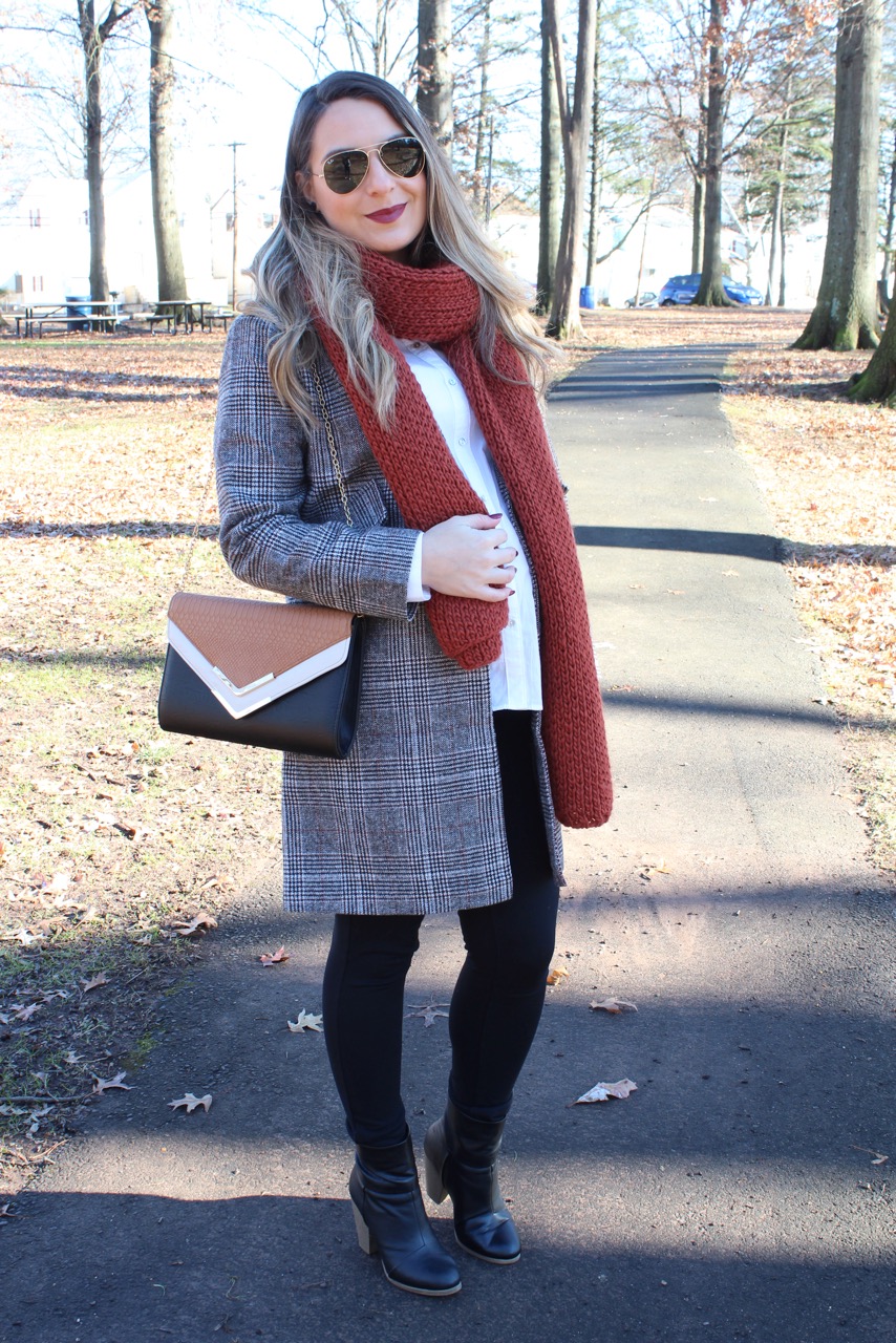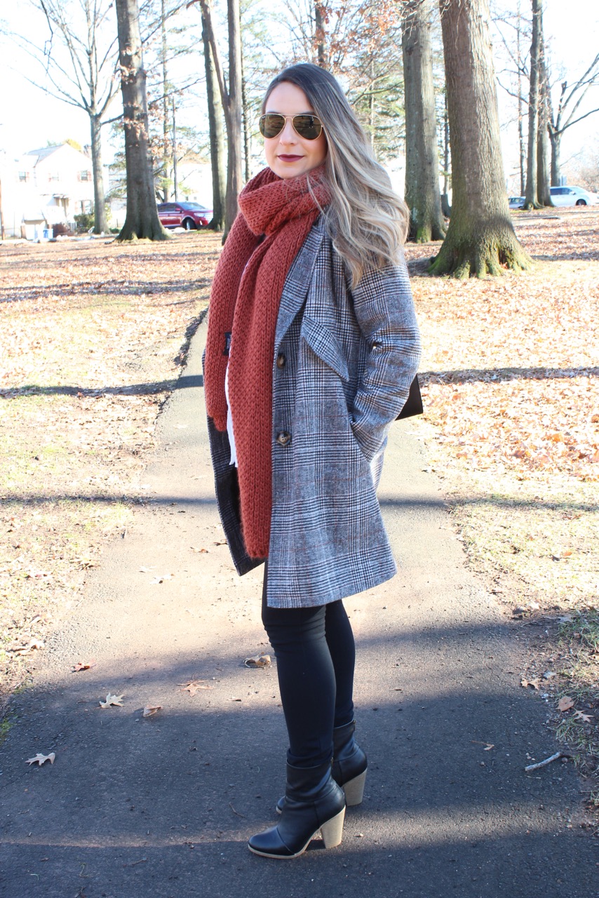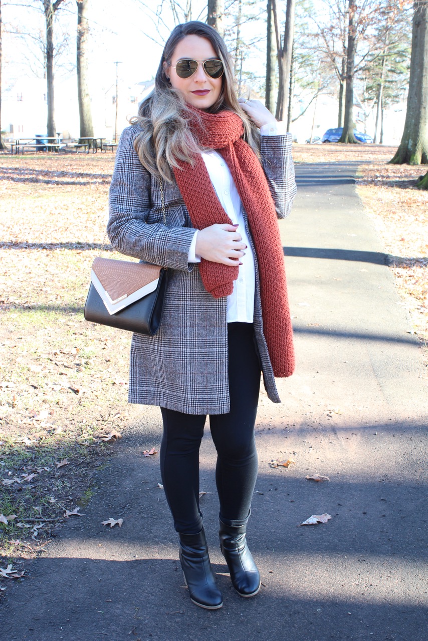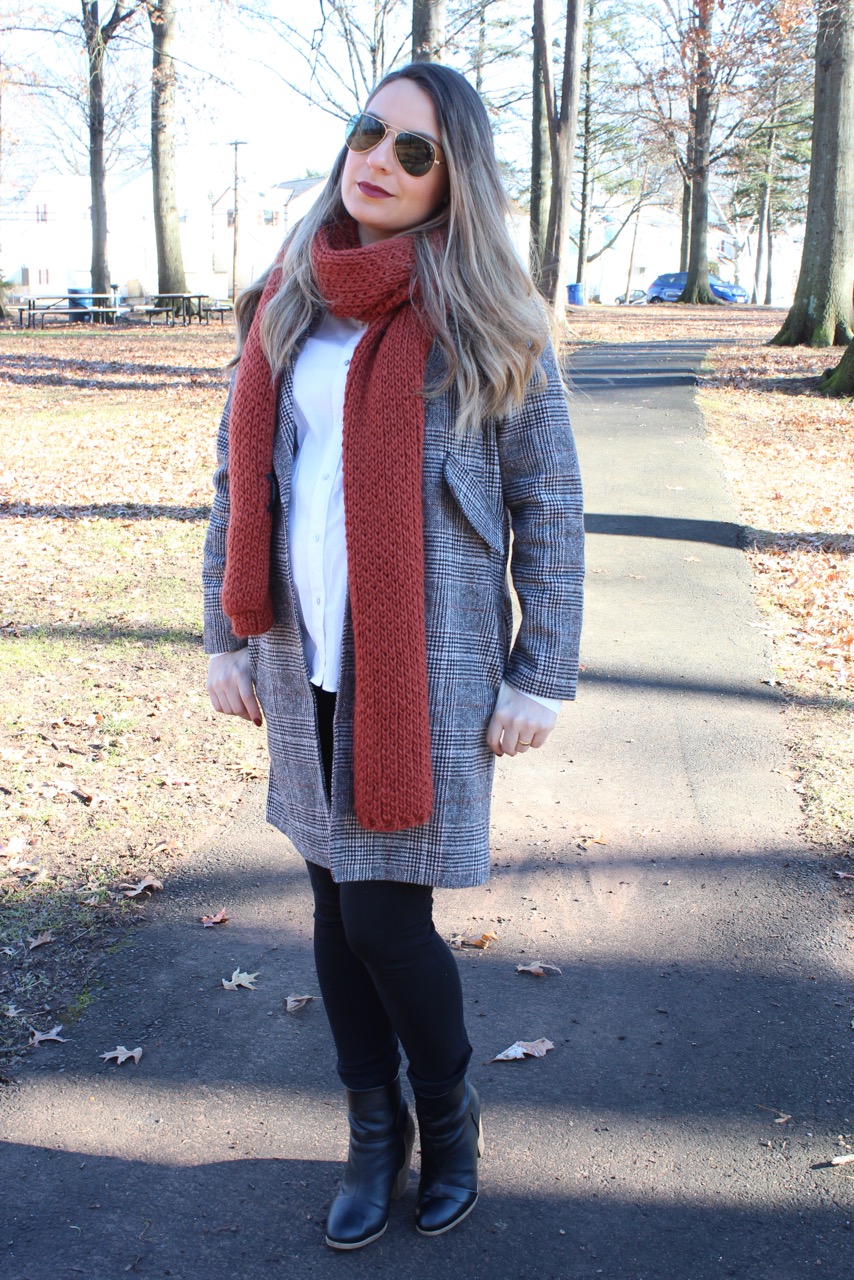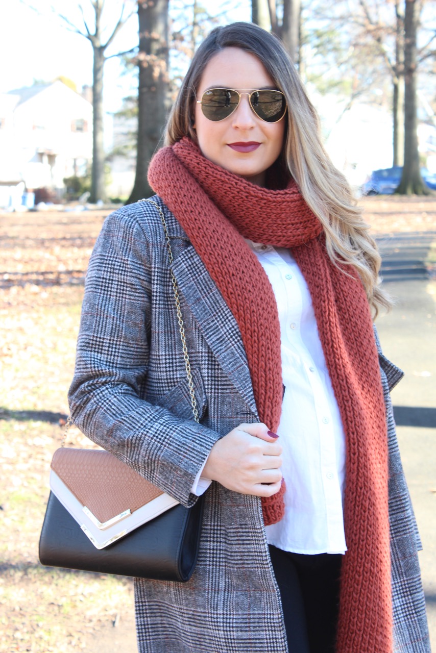 E hoje vim mostrar o look que usei no dia de Natal. Na véspera optei por um vestido de manga comprida com brilho e postei foto no insta e no face. Depois do almoço de natal saímos pra tirar umas foto da família no parque e aproveitei para clicar fotos do look usando esse casaco de estampa Glen Plaid maravilhoso que recebi da Shein. Combinei com um calca preta e uma camisa branca de botão bem clássica e um cachecol de tricô combinando com as listras do casaco. Vejam como ficou: