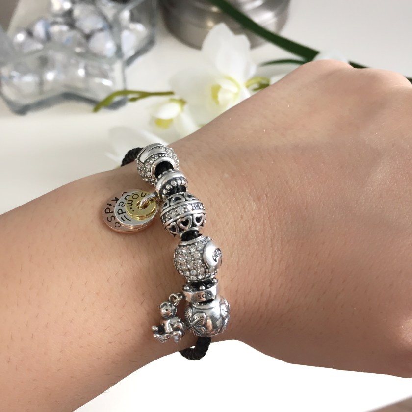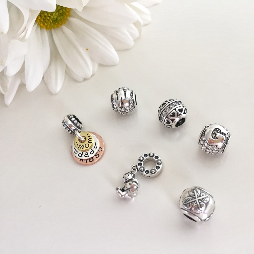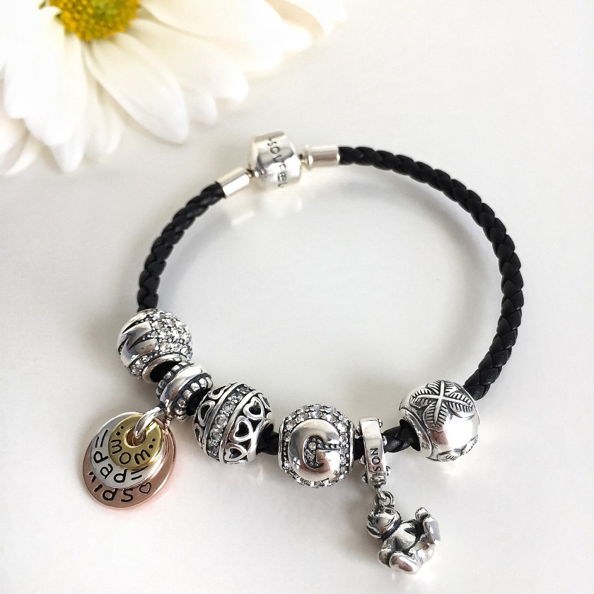 Todos os berloques são super delicados e bem feitos. Os que eu recebi representam os atuais acontecimentos em minha vida. Um menininho representando meu baby Gabriel, dois berloques de Swarovski com a letra G e a W do meu marido, um trevo de boa sorte, um berloque de coraçãozinho representando o amor e um com as plaquinhas de mãe, pai e filho. Fiquei apaixonada por todas as peças e ja sei que não vou tirar do braço.