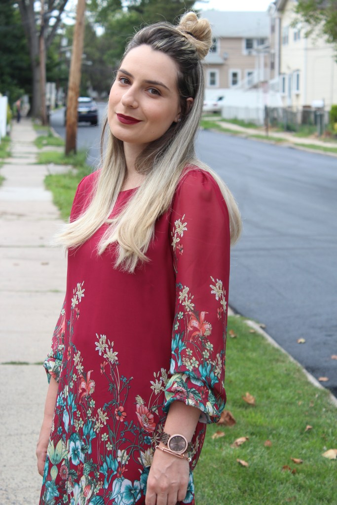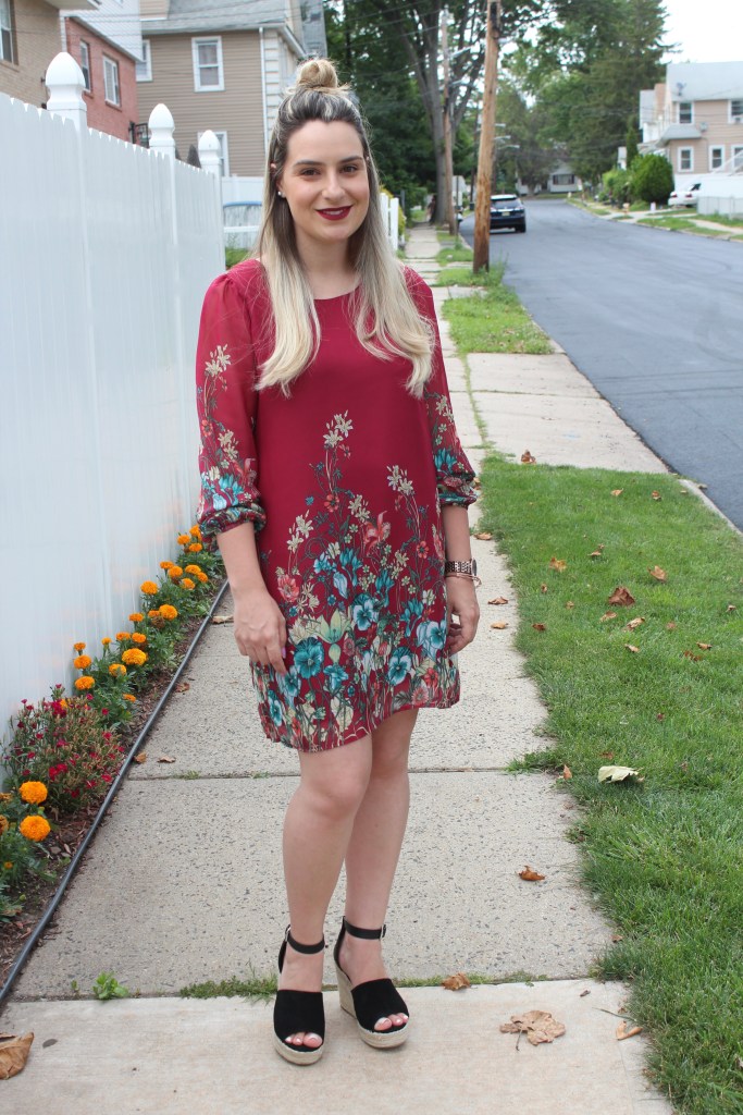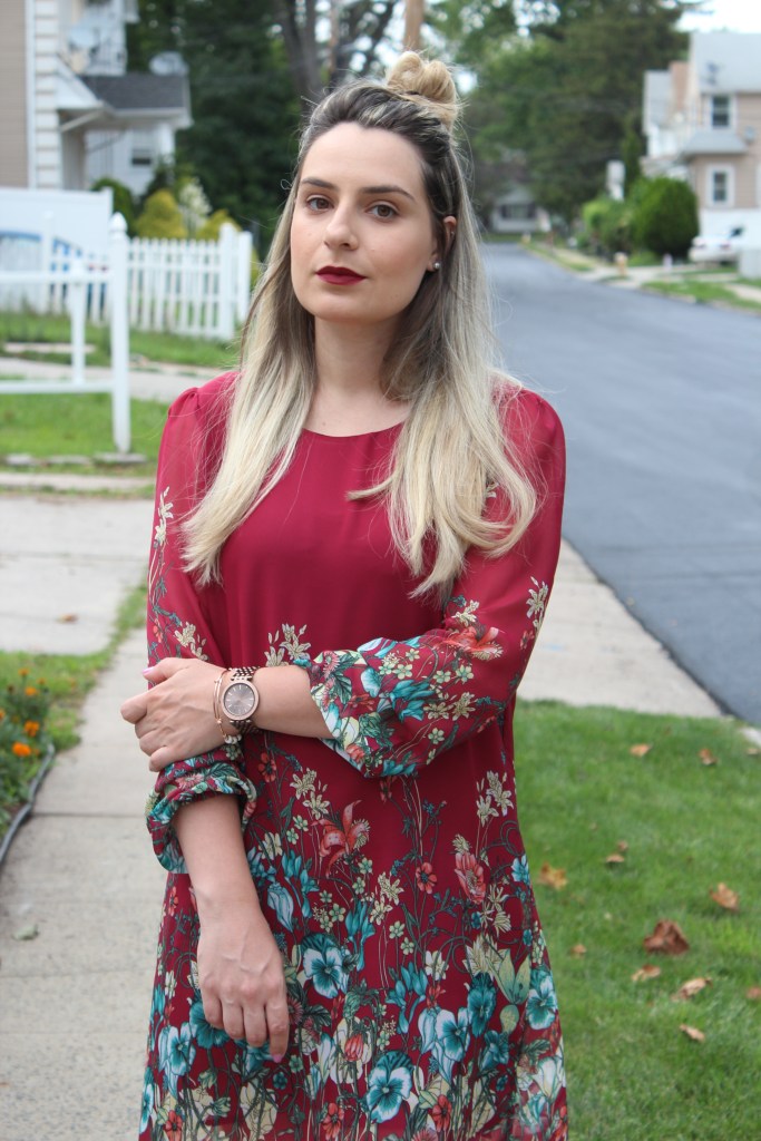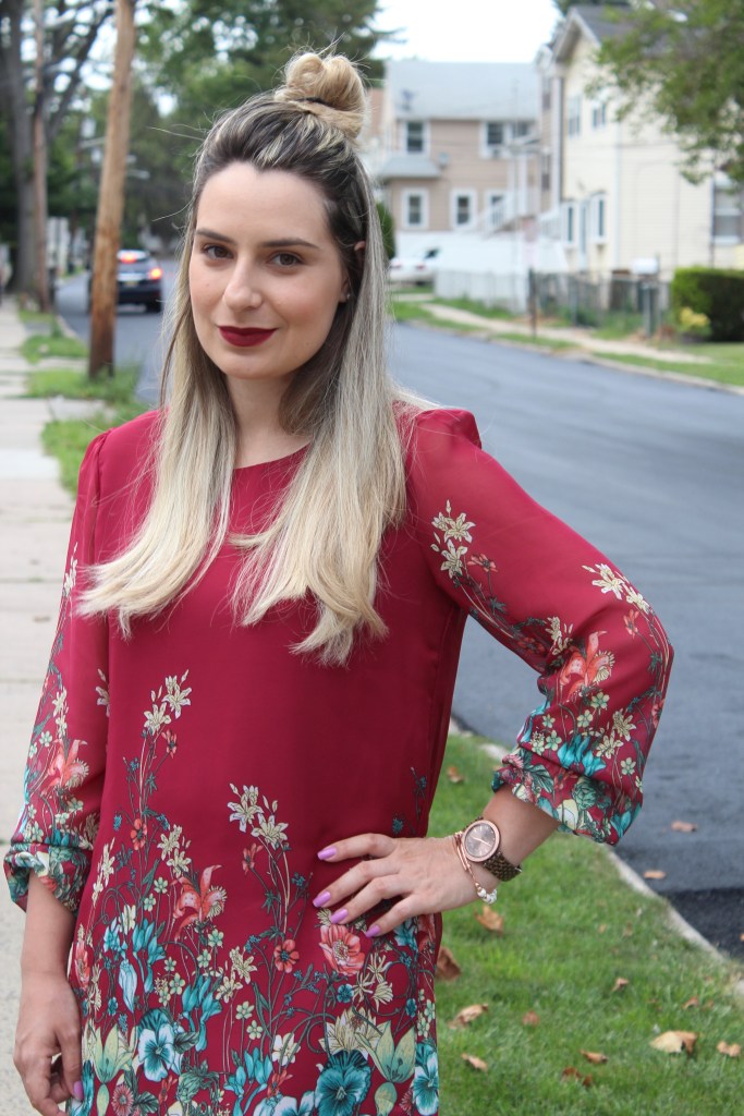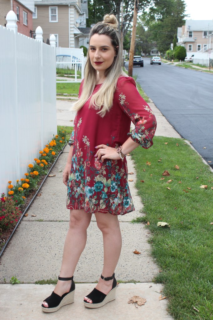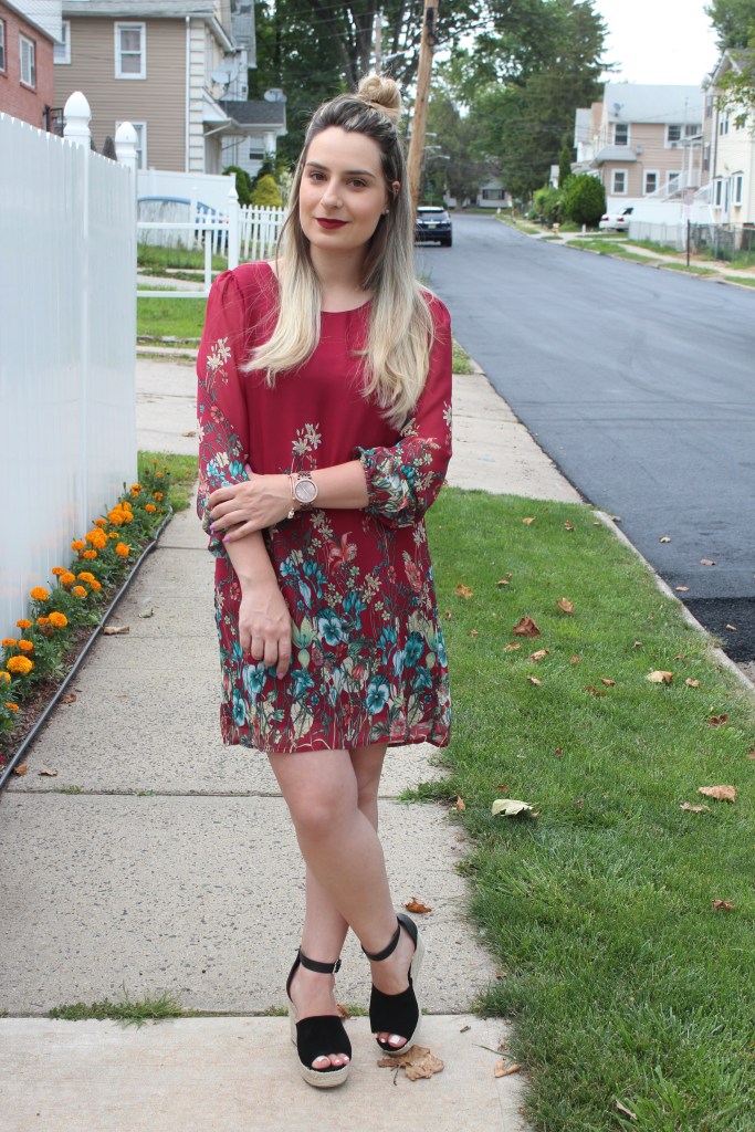 Tudo bem com vocês? Hoje temos mais um look bem casual usando vestido florido em tecido de seda da Shein. Apesar de ser de manga comprida, o tecido é bem levinho e o vestido fica super soltinho no corpo, perfeito para mama aqui que ainda esta se recuperando do pos parto hehe. Como estamos em pleno verão aqui no norte dos EUA, optei em usar esse vestidinho com uma sandália plataforma super confortável. Esse modelo de sandália esta bem e alta e combina com vários looks. Adoro! Vejam como ficou: