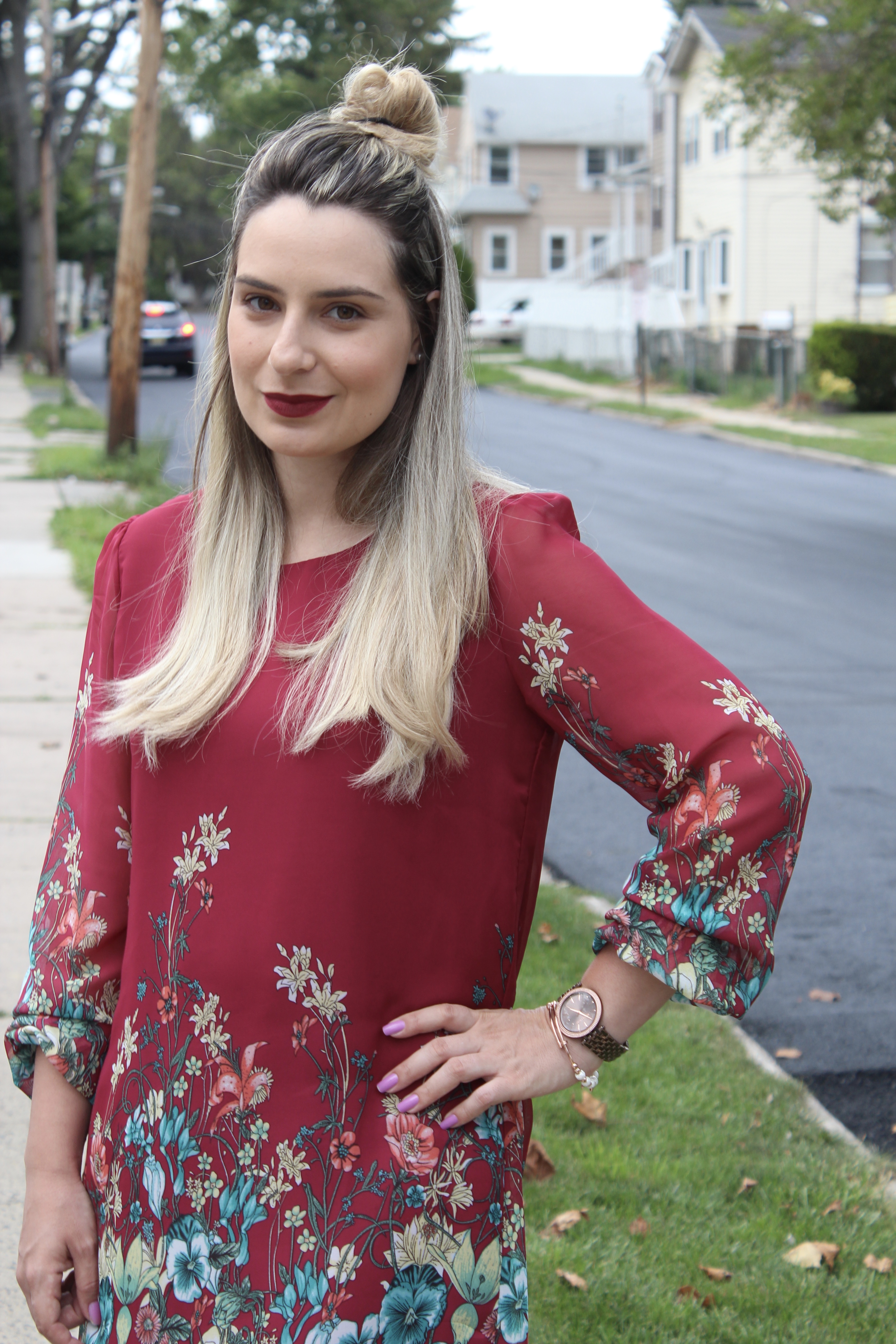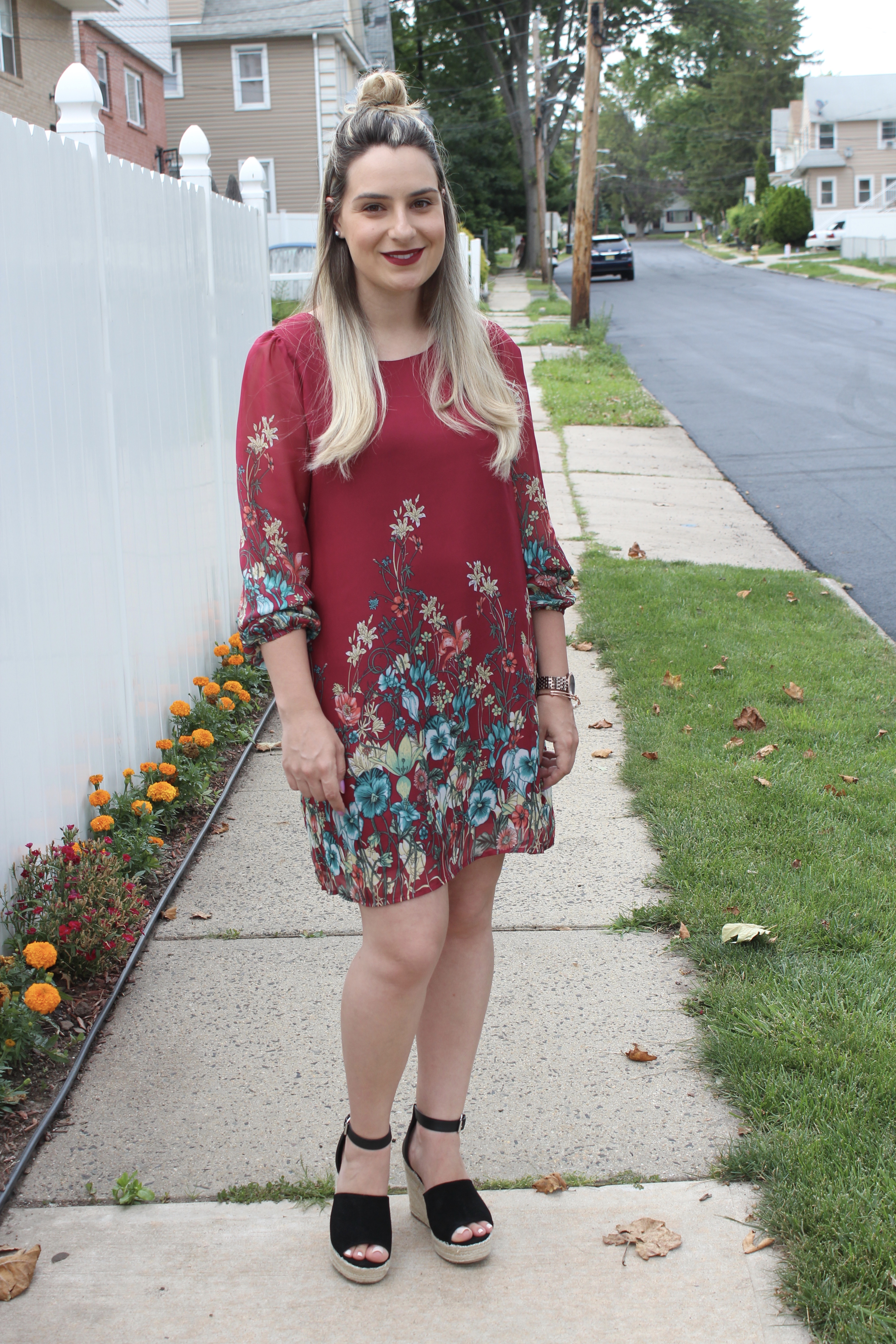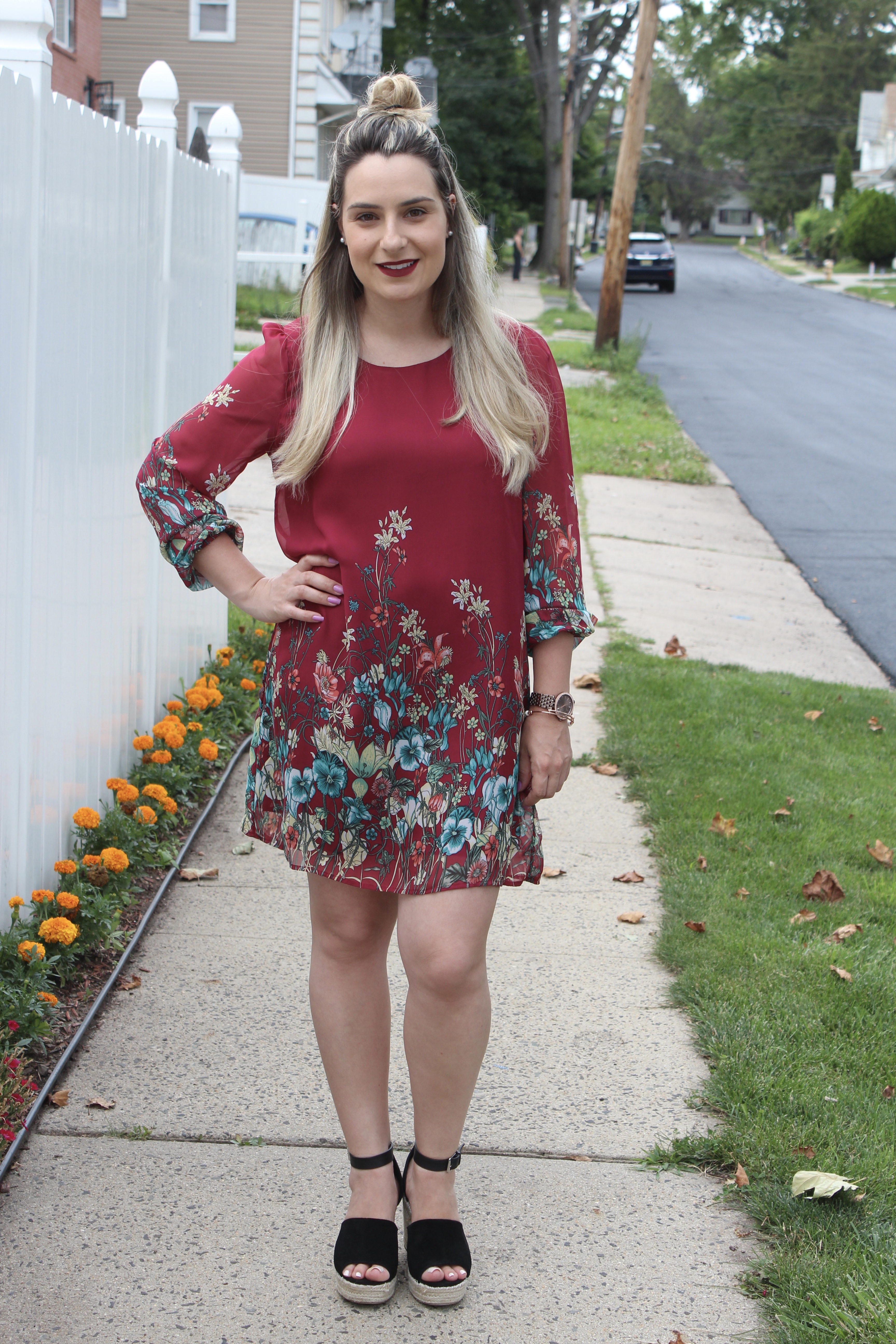 Tudo bem com vocês? Hoje temos mais um look bem casual usando vestido florido em tecido de seda da Shein. Apesar de ser de manga comprida, o tecido é bem levinho e o vestido fica super soltinho no corpo, perfeito para mama aqui que ainda esta se recuperando do pos parto hehe. Como estamos em pleno verão aqui no norte dos EUA, optei em usar esse vestidinho com uma sandália plataforma super confortável. Esse modelo de sandália esta bem e alta e combina com vários looks. Adoro! Vejam como ficou: