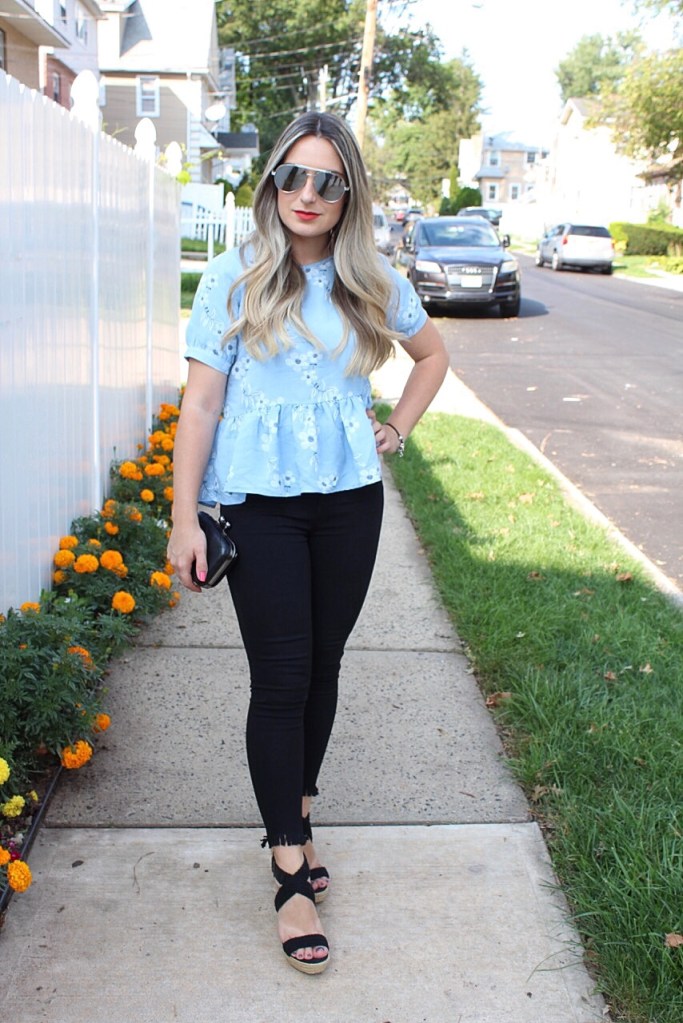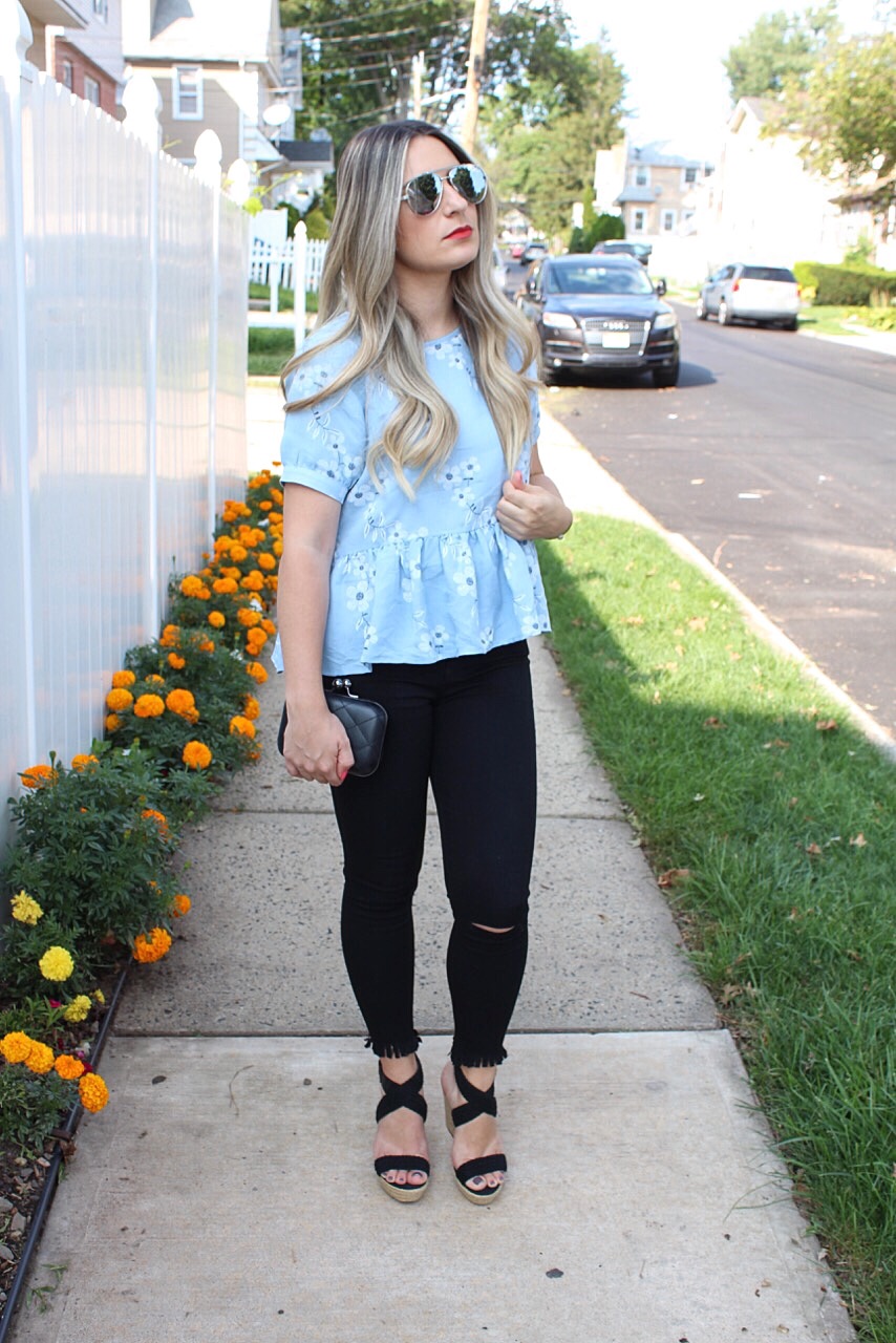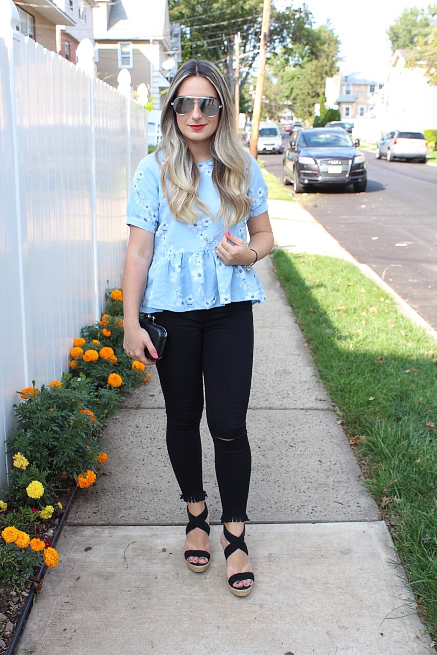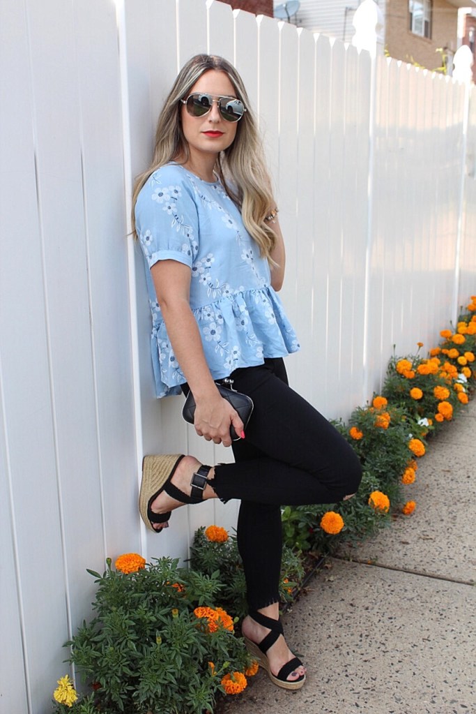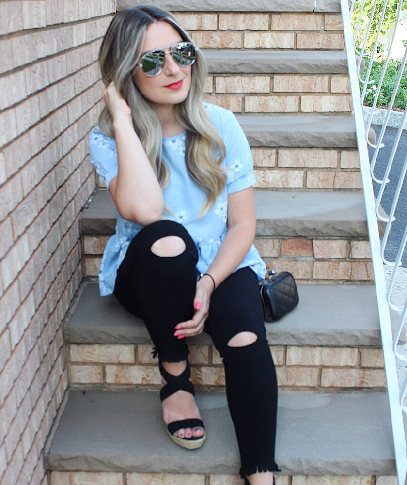 Domingo super relax e de preguiça por aqui e resolvi postar meu look de ontem para ja começarmos a semana com uma inspiração bem legal. Que tal!? E o look de ontem foi todo Shein. Escolhi um top modelo HiLo (curto na frente e mais comprido nas costas), adoro esse modelinho! O top é todo trabalhado com florzinhas super charmosas e um tecido bem fresquinho e soltinho. A calça escolhi um modelinho super moderno de jeans preto skinny com corte no joelho, cintura alta e rasgadinha na boca. A cintura alta define mais a silhueta e deu ênfase ao top mais curtinho. Adoro calça de cintura alta pois super valorizam a cintura! nos pés optei por uma plataforma de corda trançada. Vejam como ficou a produção final:
