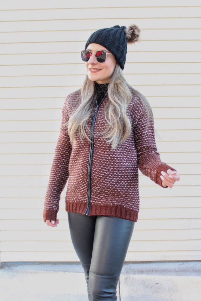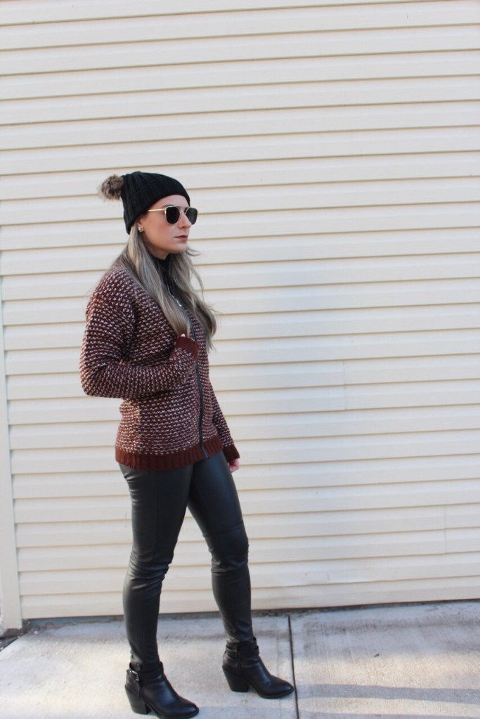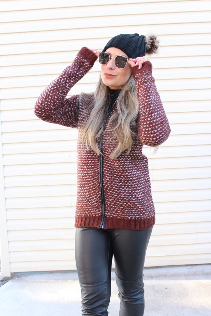 How was your weekend? I hope you had a nice time with your family and friends. Here in New Jersey the temperature dropped so much and it was freezing, but we got up and ready and went to celebrate the first day of the year in church thanking God for all the blessings we had in 2017! It was a year with difficult times but many blessings and I am so thankful for that! And today I just wanted to quickly share with you this casual outfit I wore yesterday. Its been so cold, but since I was driving to run some errands I just wore this cute sweater jacket from Baciano. I am so in love with this piece! Its so warm and cozy and classic enough to wear with jeans, leggings or make it an edgy combo like I did, combining it with syntetic leather pants. Take a look: