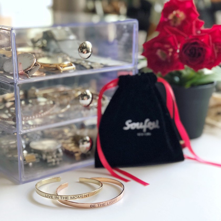 Pulseiras personalizadas também são uma ótima ideia de presente. Essas que tem frases inspiradoras são super versáteis e combinam com tudo. Essas duas são da loja Soufeel Jewelry e eles estão tendo uma ótima promoção essa semana de Vakentines. Você pode adquirir qualquer peca com 15% de desconto usando código Jackieg115. Usem esse link aqui.