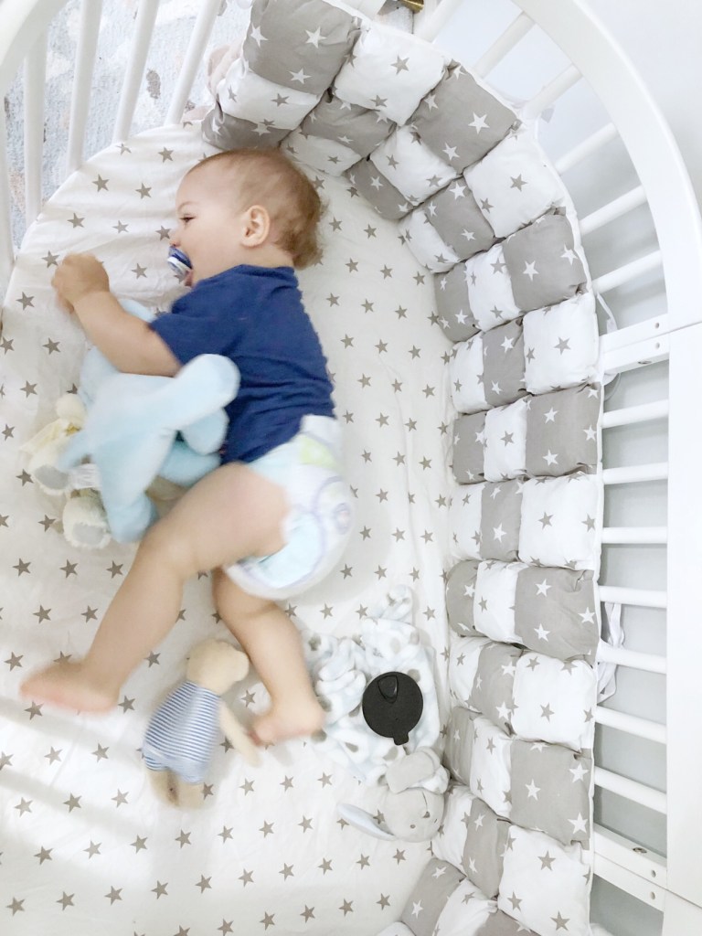 I also made it lower and transformed it into a small couch just to see how it would look. But decided to close and use the rounded crib for now because the baby is too small and he could fall, but will certainly use like that when he is older and learn to go to bed by himself 🙂 And we quickly transformed it back into the crib, thats how easy assembling for this furniture is! Ps dont mind the mess on this picture lol, baby got very excited with his new “playground”.