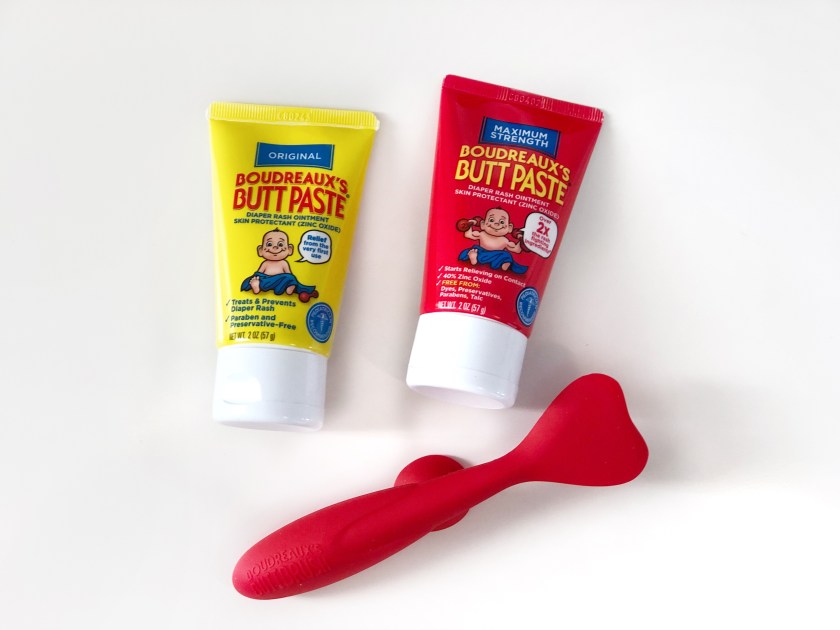 So I thought that today would be a great day to share a little experience with baby’s butt paste. I have received a full kit from Boudreaux’s Butt Paste to try and I already knew what to expect. Here is a little story from Gabriel. When he was only 2 months old he got a really bad butt rash. I was desperate and didnt know what to do. My sister in law, she has 3 kids, and she helped me with this. She recommended I used the Yellow paste during the day as a normal routine in every diaper change and that I use the Red paste whenever the baby got a rash or any redness started to show. Once I got into that routine, omg! it worked wonders and I never had butt rashes issue again. Today, he is 18 months old and I still use the yellow one as a daily butt paste and if he evers gets a diarrhea or has irritation I reach for the red formula one.