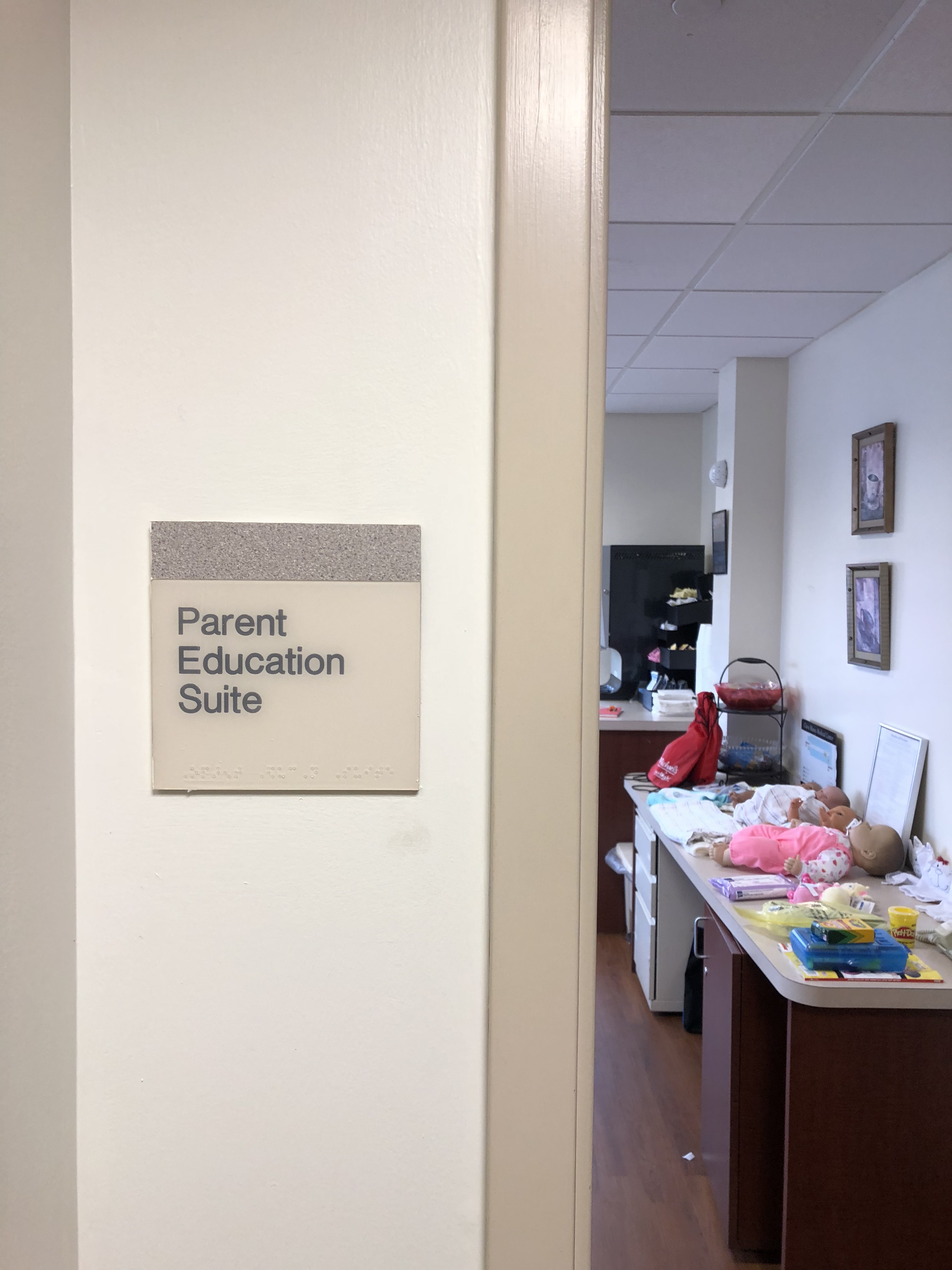 After that we went to a parent education room where Laura had a few props prepared to offer an educational class for the little kids. She started by getting them engaged and interested in learning more about babies. She talked about what babies like to eat, how to hold a baby, and how the kids can play the role of big brother and get involved to help their parents. This is very important to make the older kid involved and aware that there is another little one coming and that they will help mom and dad with the baby.