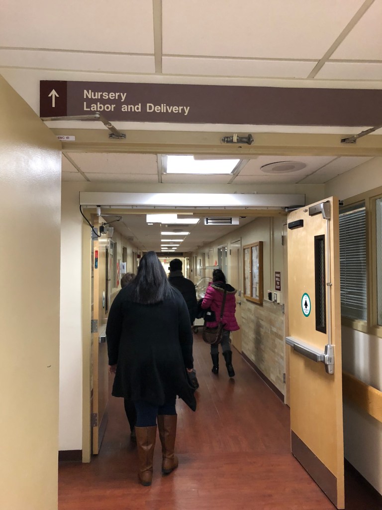 We followed her along the maternity hall for a tour where moms stay after the delivery. We were able to chat with some nurses and the kids got to see inside the room where moms stay for recovery with their babies.