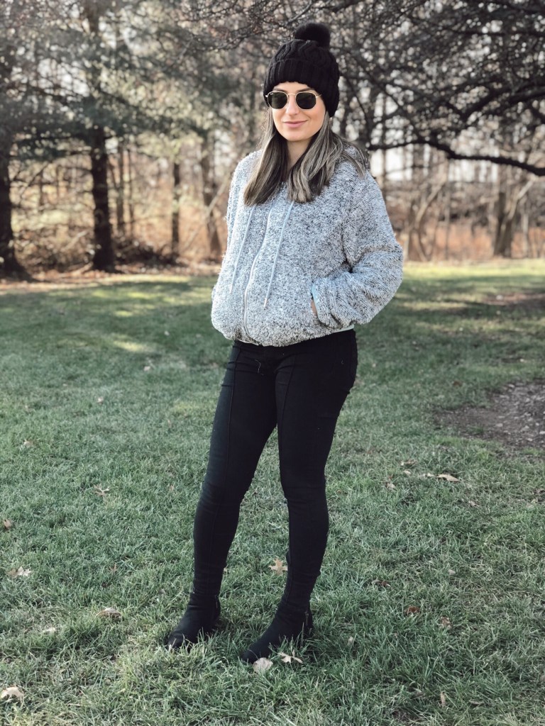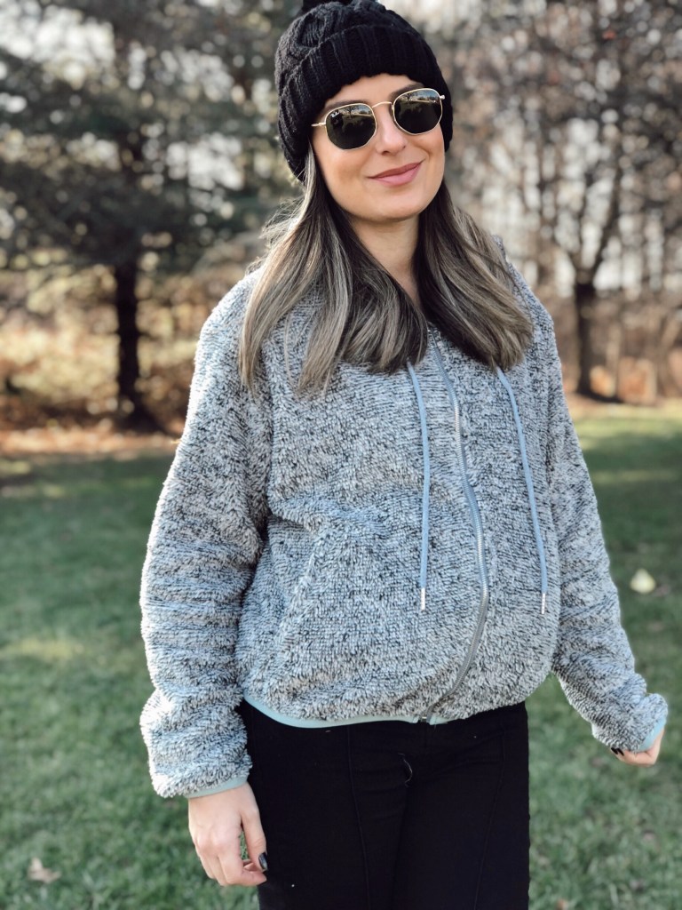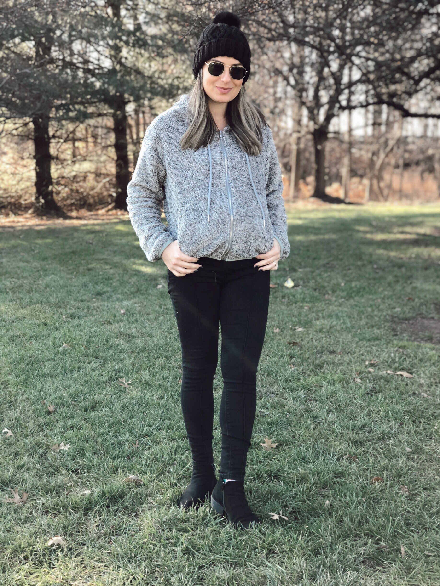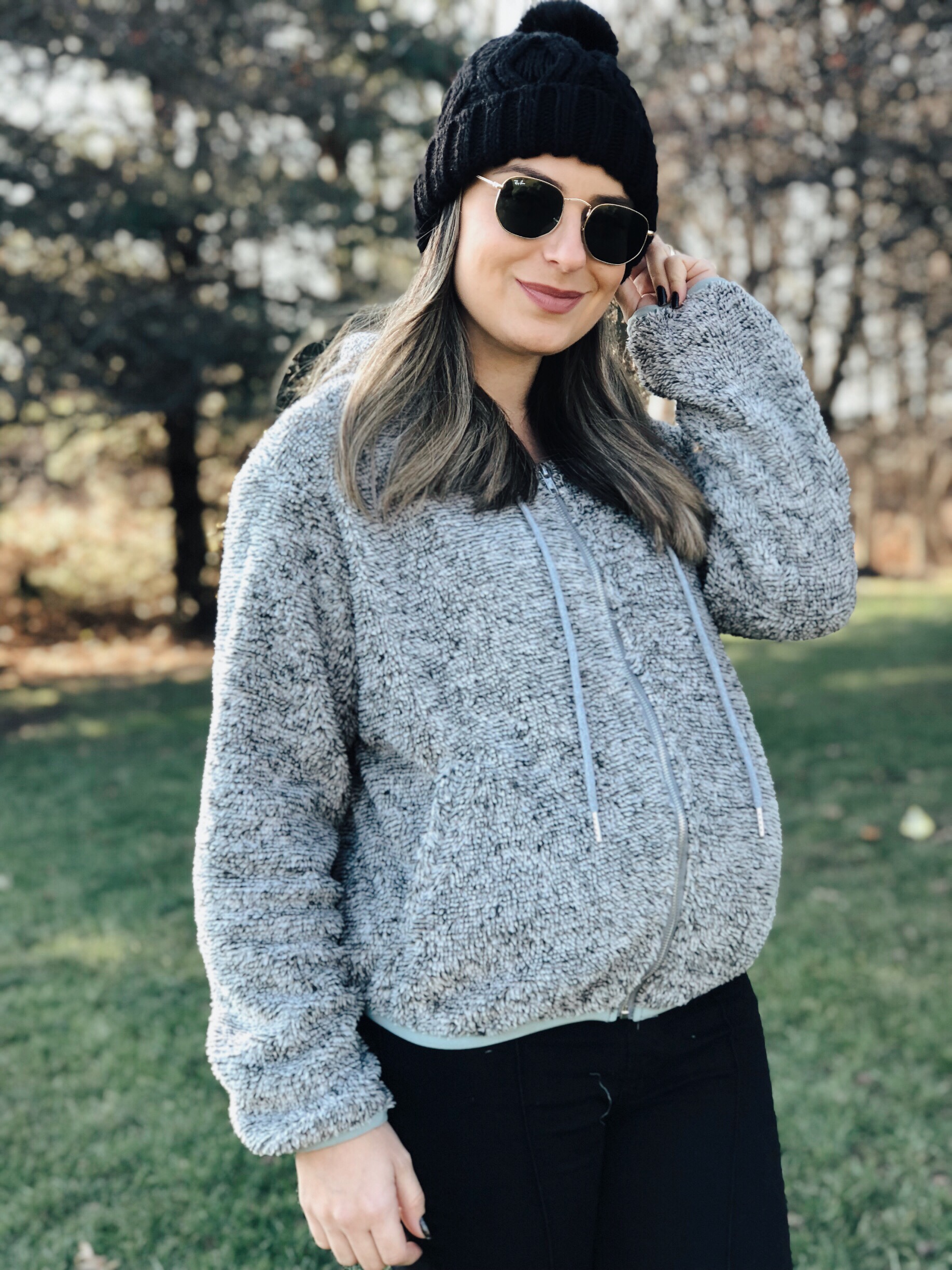 As you may have noticed I am obsessed over these fuzzy teddy coats. They are so cute and super warm for the cold days we are having here in New Jersey. I love to wear it down with jeans or leggings for a casual look, but also look super nice with heels. Today we started our monday running some errands and it was sunny but very cold. So I put on my maternity black jeans that I am loving! Yes! I dont fit on my regular jeans anymore lol. Baby Raphael is getting bigger and bigger 🙂 I wore just plain white tee shirt and my fuzzy grey Teddy Jacket from Shein. I already own a beige color one and now I love this one in grey. The style is a bit different and this one has a hoodie which is perfect. Just wore some low heel black boots and a bennie to keep warm. If you plan on shopping at Shein online, get advantage of this code for a 15% off 4padoni20
