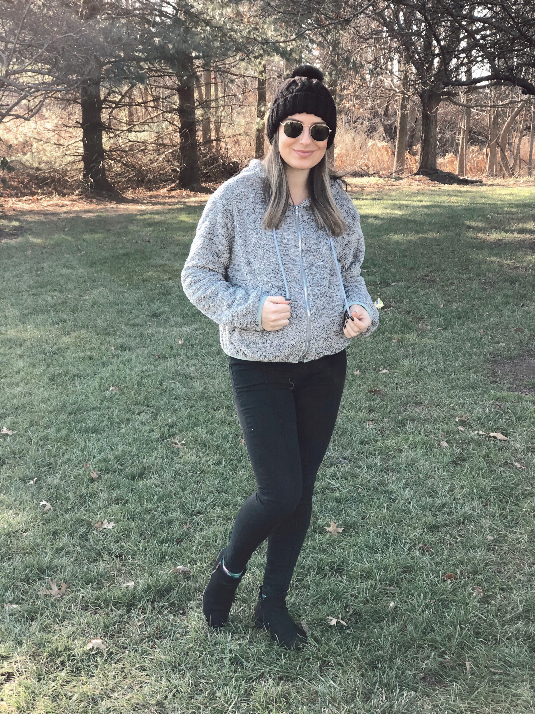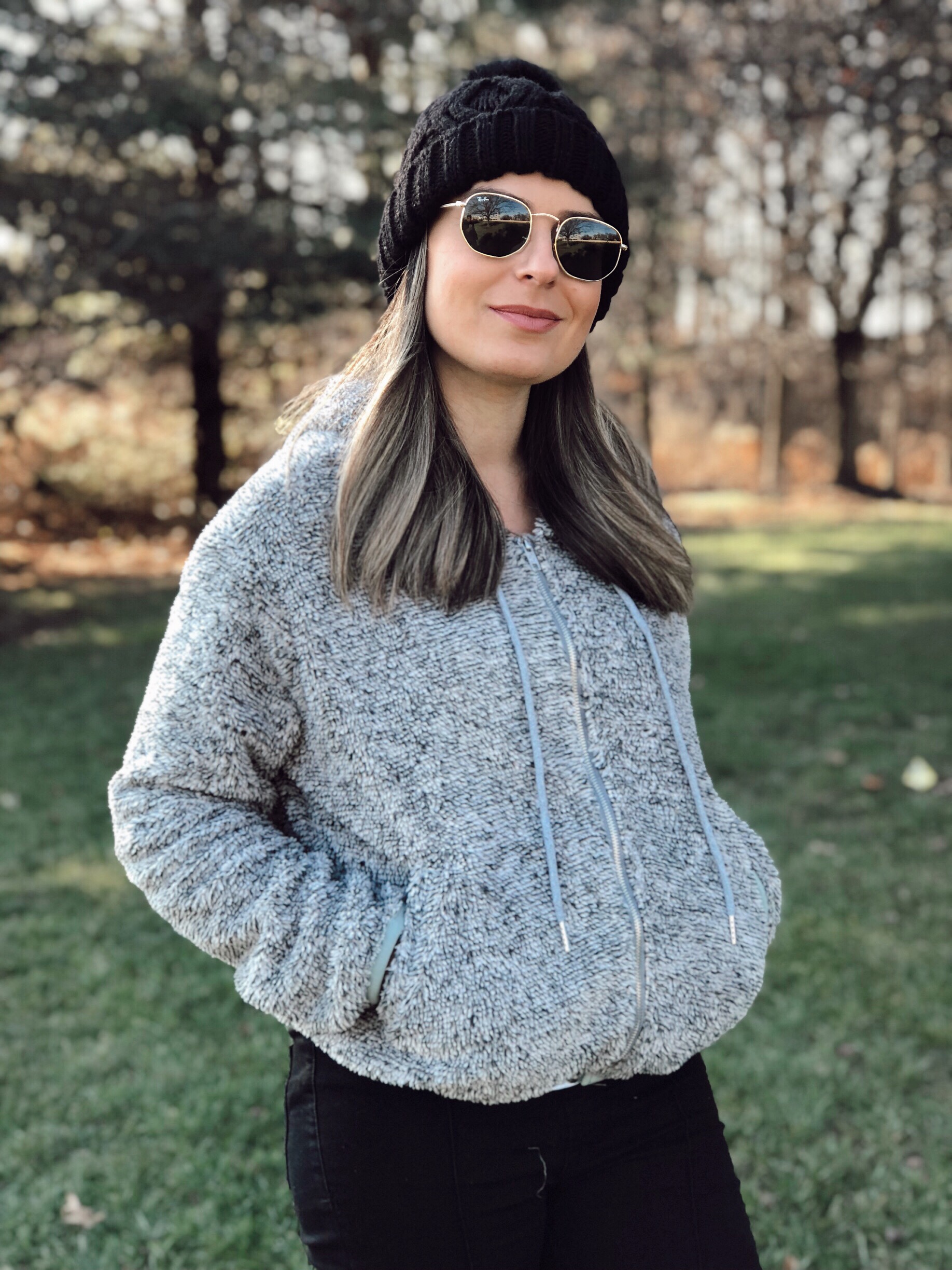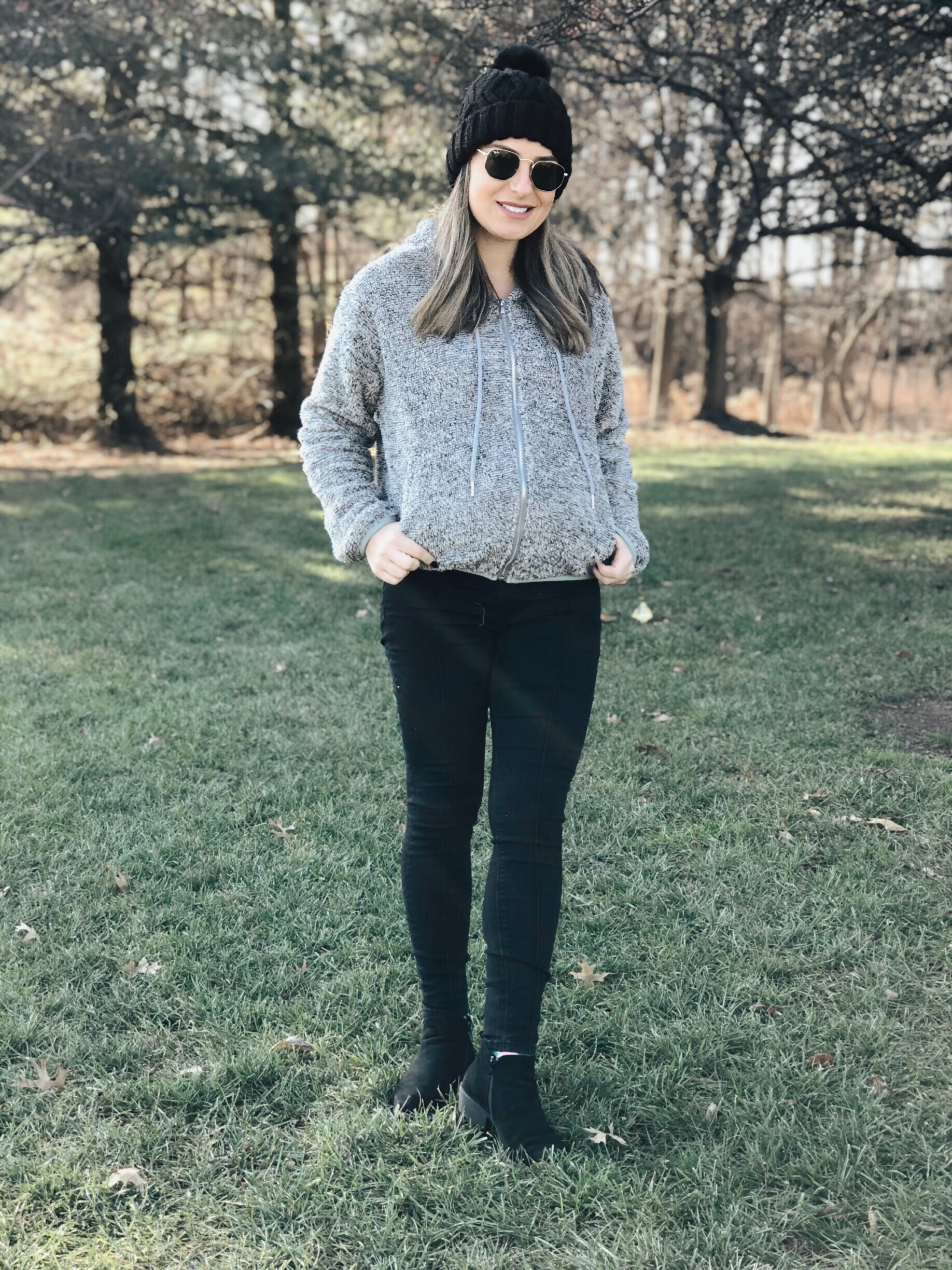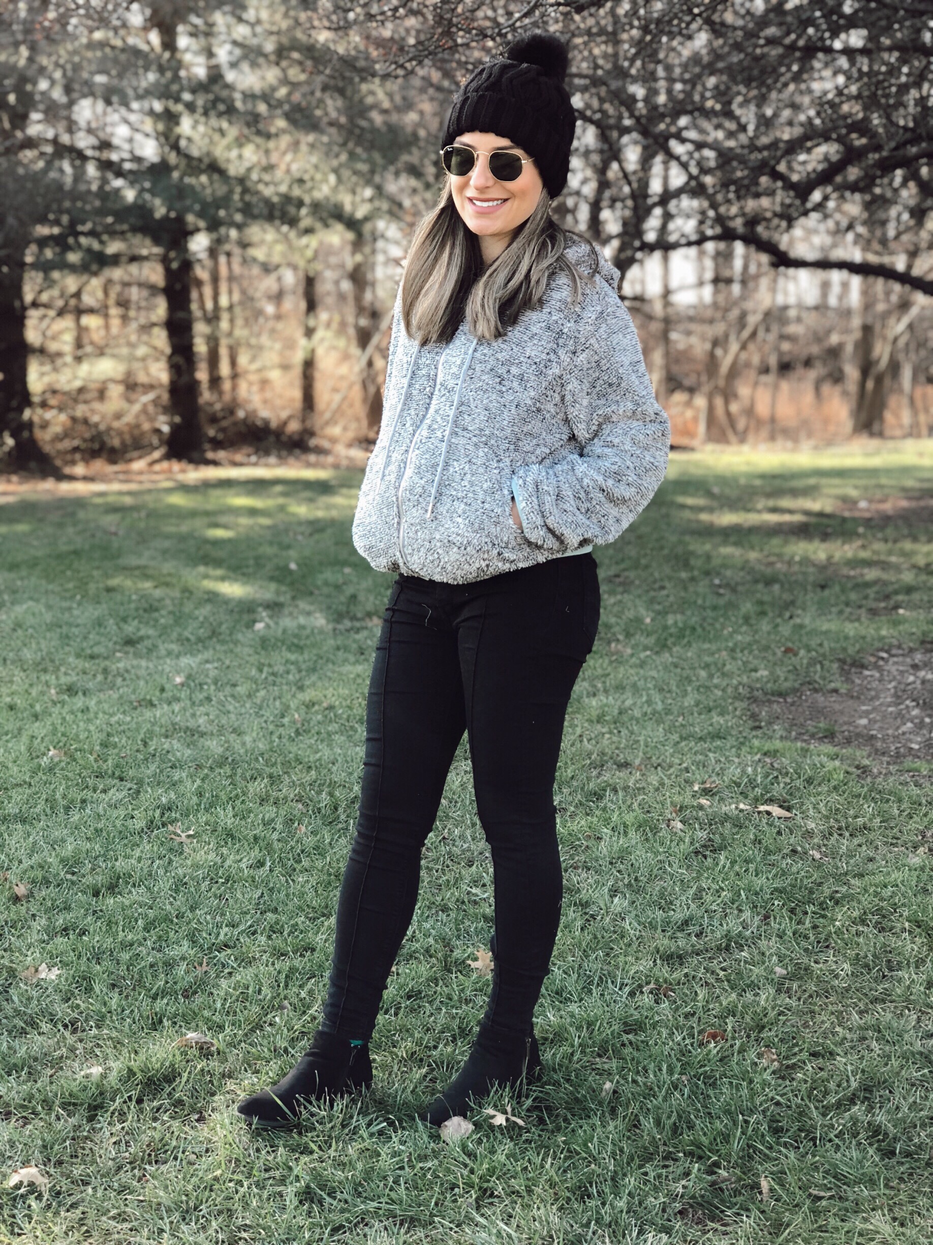 As you may have noticed I am obsessed over these fuzzy teddy coats. They are so cute and super warm for the cold days we are having here in New Jersey. I love to wear it down with jeans or leggings for a casual look, but also look super nice with heels. Today we started our monday running some errands and it was sunny but very cold. So I put on my maternity black jeans that I am loving! Yes! I dont fit on my regular jeans anymore lol. Baby Raphael is getting bigger and bigger 🙂 I wore just plain white tee shirt and my fuzzy grey Teddy Jacket from Shein. I already own a beige color one and now I love this one in grey. The style is a bit different and this one has a hoodie which is perfect. Just wore some low heel black boots and a bennie to keep warm. If you plan on shopping at Shein online, get advantage of this code for a 15% off 4padoni20