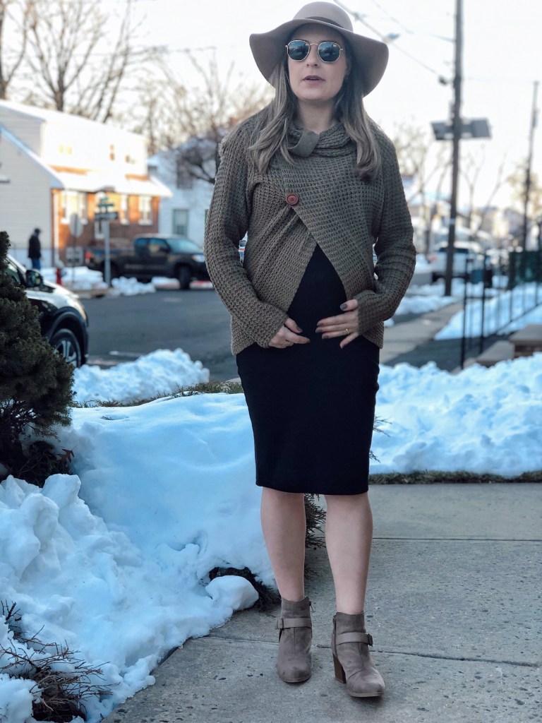 Happy March! How was your weekend? I cant believe we are in March already and that in less then 7 weeks I will have my baby boy in my arms. It is going by so quickly. I thought the weather was going to get a little better this month but apparently is getting colder haha. I tried to put a boho outfit together that would look cute with my bump but its so cold outside that is hard to not wear boots or sweaters and coats. But I found out this really cool high neck overlap sweater that was perfet to wear showing my belly. This one is from Shein on a greenish color. I paired with a simple black dress and booties. I love how I can use this sweater with jeans or on top of a dress for a trendy casual outfit. This cute sweater is only $20 on Shein website and with code 4padoni20 you can get an extra 15% off on any perchasse until March 31st.