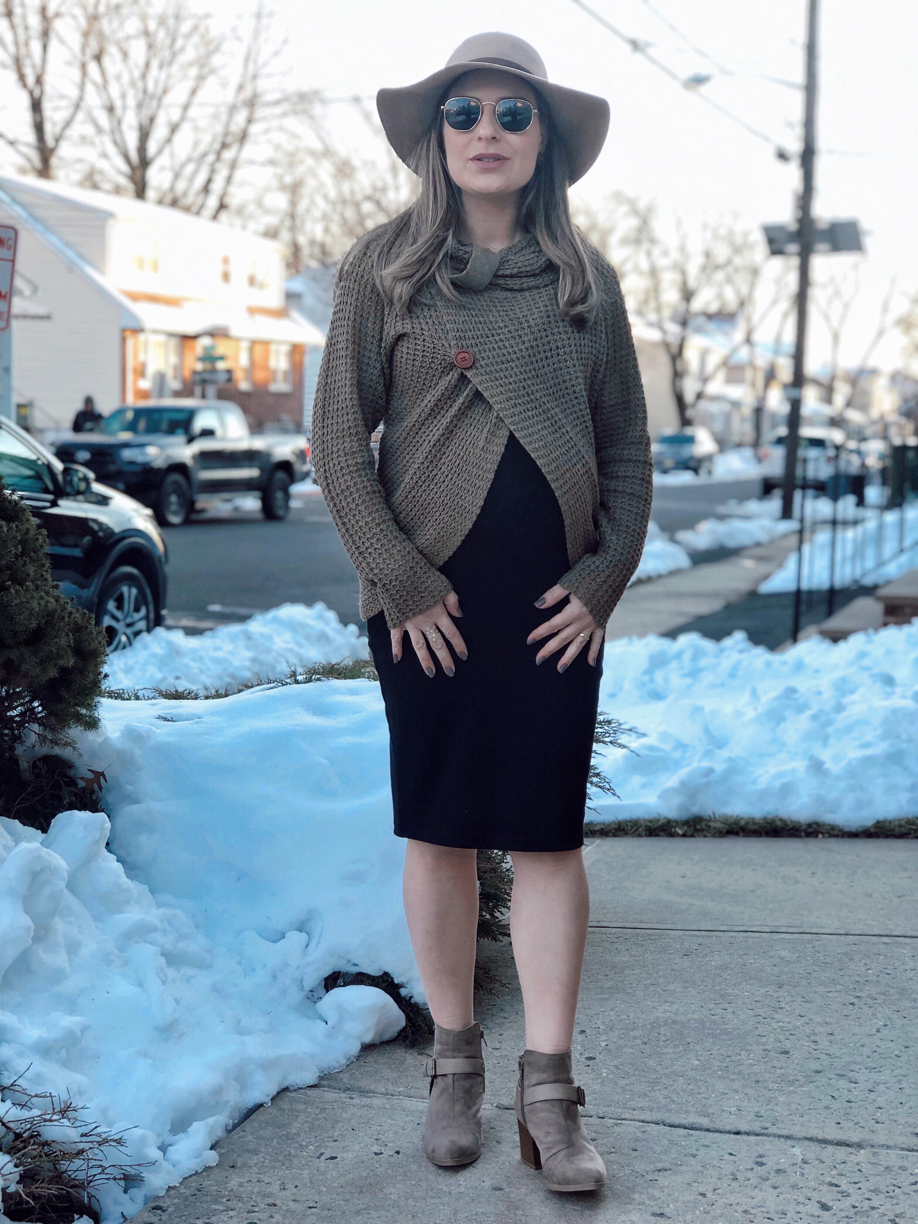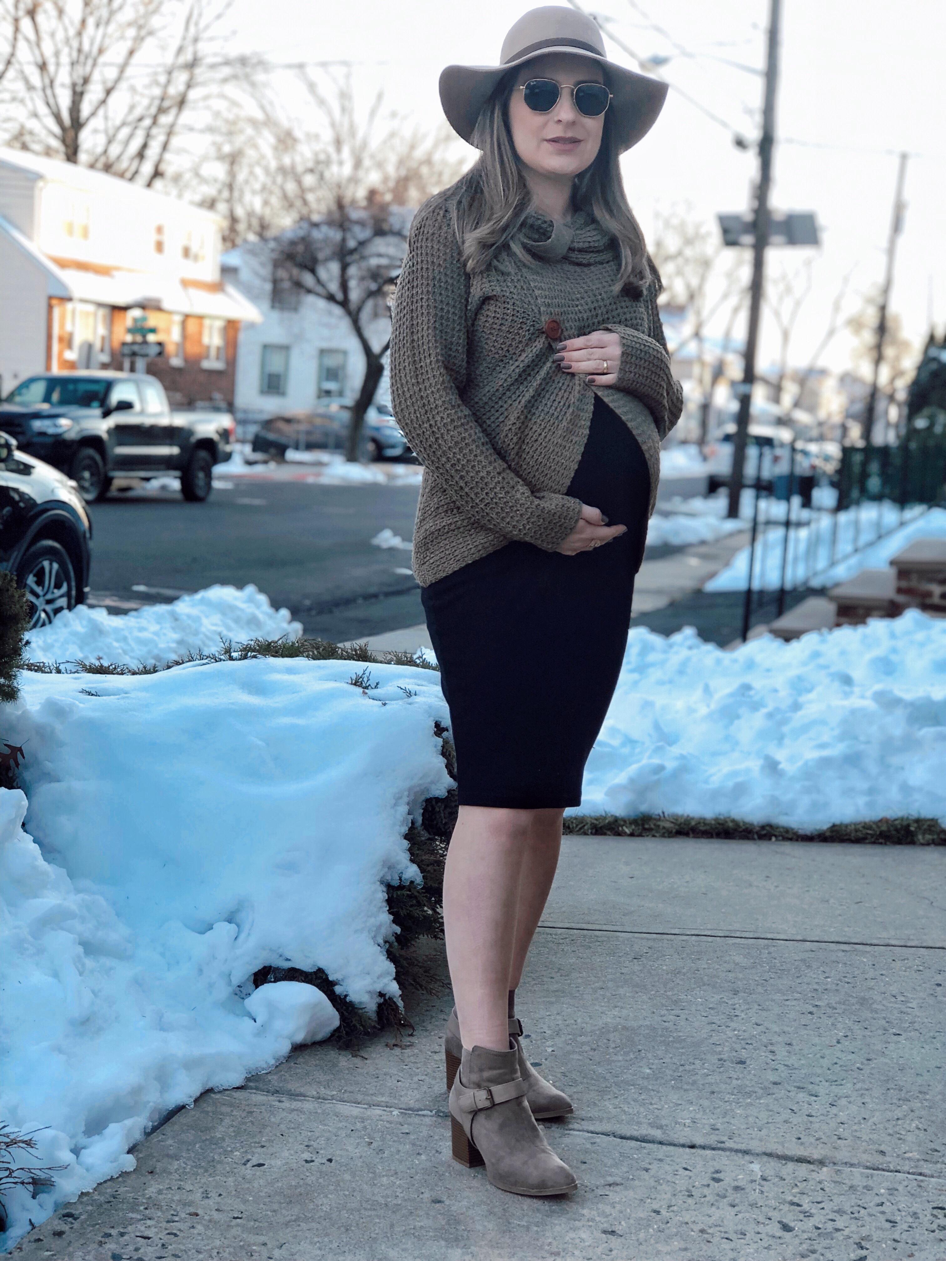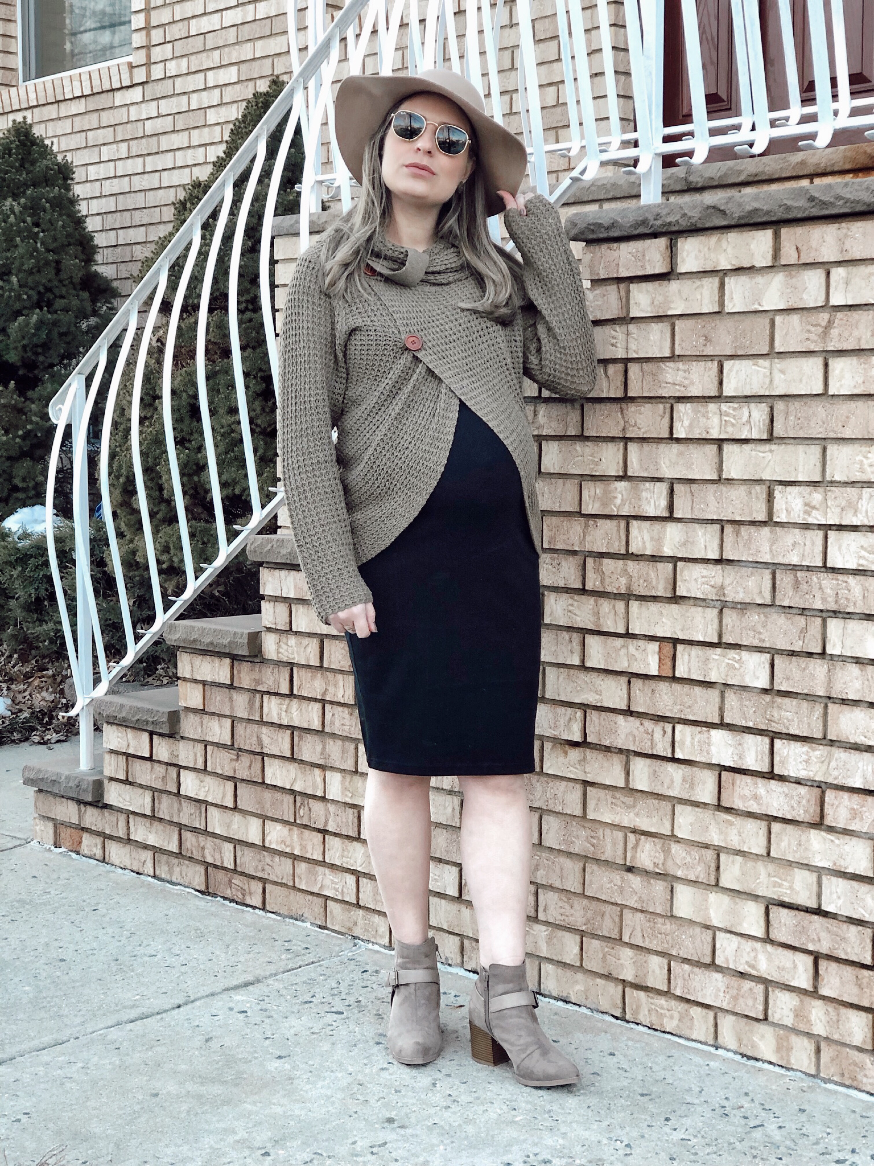 Happy March! How was your weekend? I cant believe we are in March already and that in less then 7 weeks I will have my baby boy in my arms. It is going by so quickly. I thought the weather was going to get a little better this month but apparently is getting colder haha. I tried to put a boho outfit together that would look cute with my bump but its so cold outside that is hard to not wear boots or sweaters and coats. But I found out this really cool high neck overlap sweater that was perfet to wear showing my belly. This one is from Shein on a greenish color. I paired with a simple black dress and booties. I love how I can use this sweater with jeans or on top of a dress for a trendy casual outfit. This cute sweater is only $20 on Shein website and with code 4padoni20 you can get an extra 15% off on any perchasse until March 31st.
