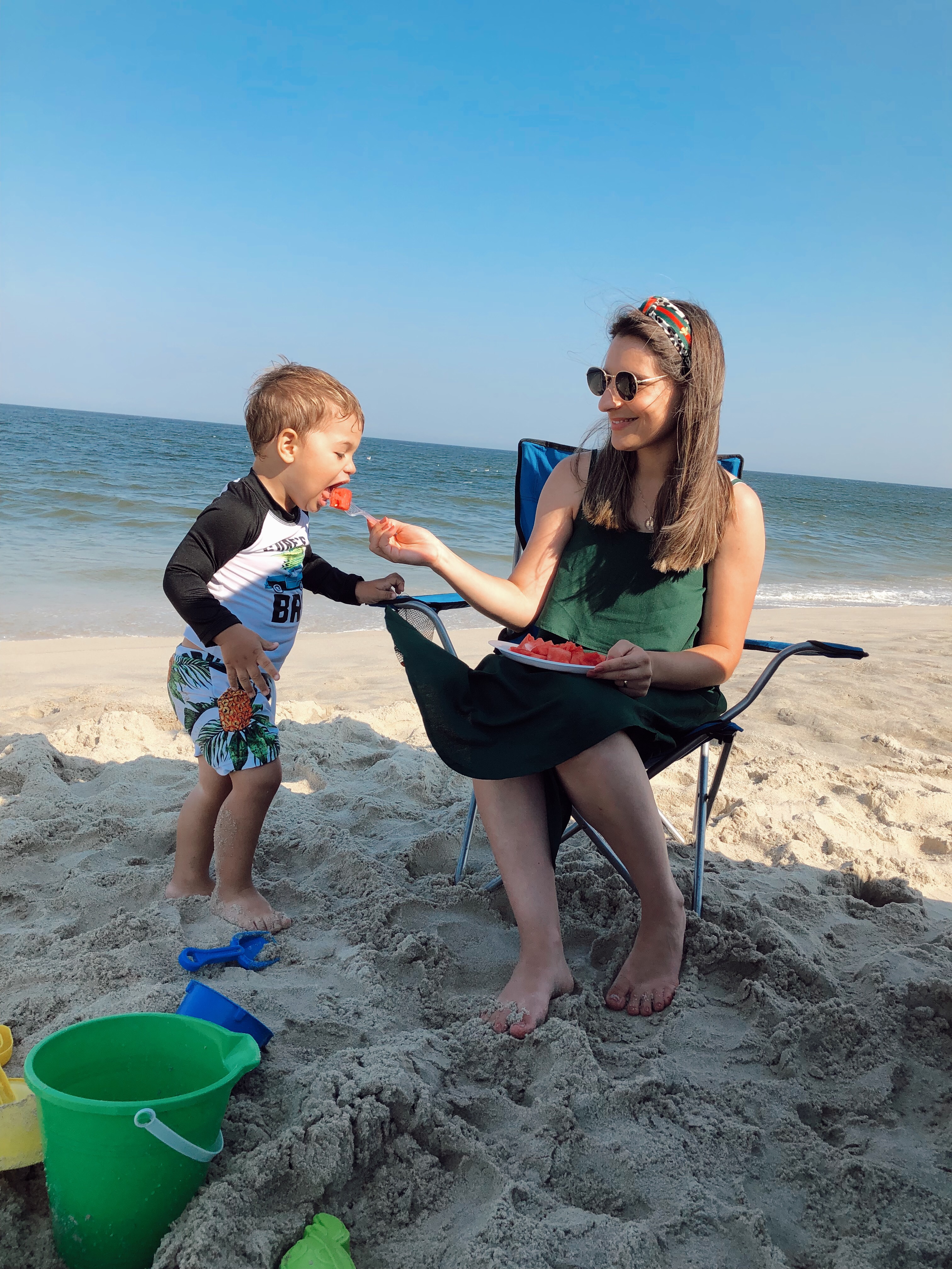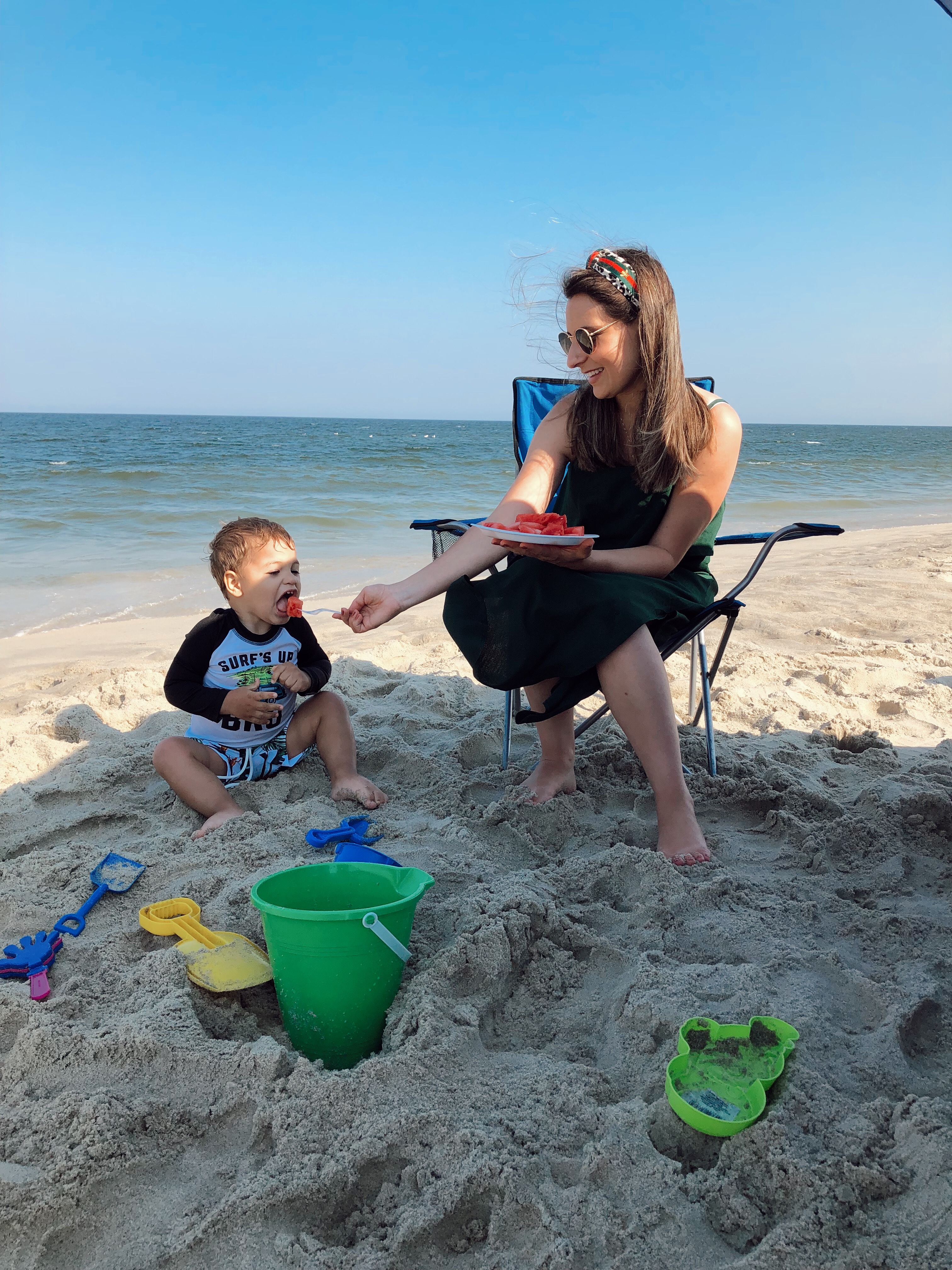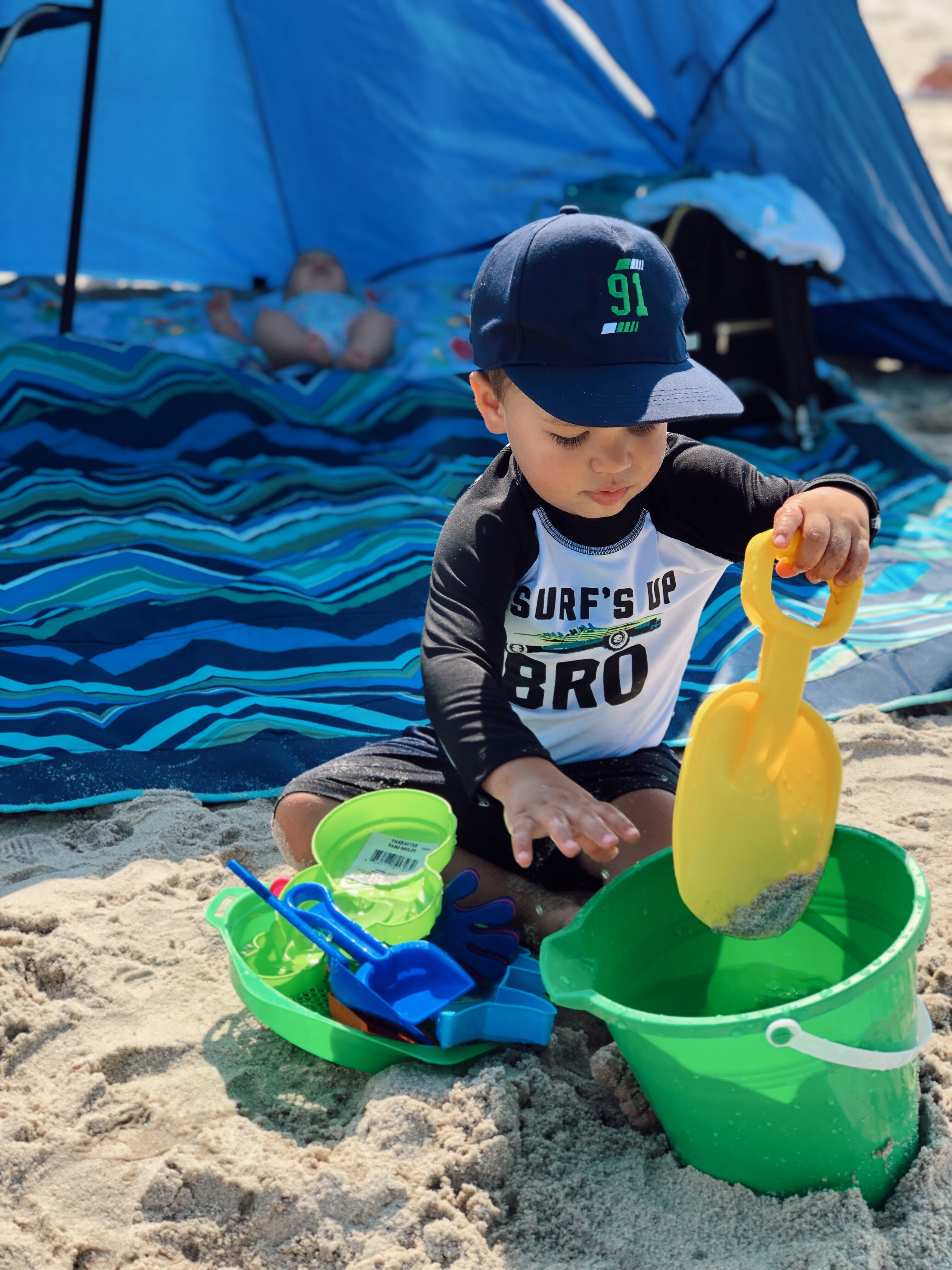 This week we decided it was time to have our first beach day experience as parents of two. Now with a 3 months old and a 2 year old. I made a list of must haves and did some shopping the day before.