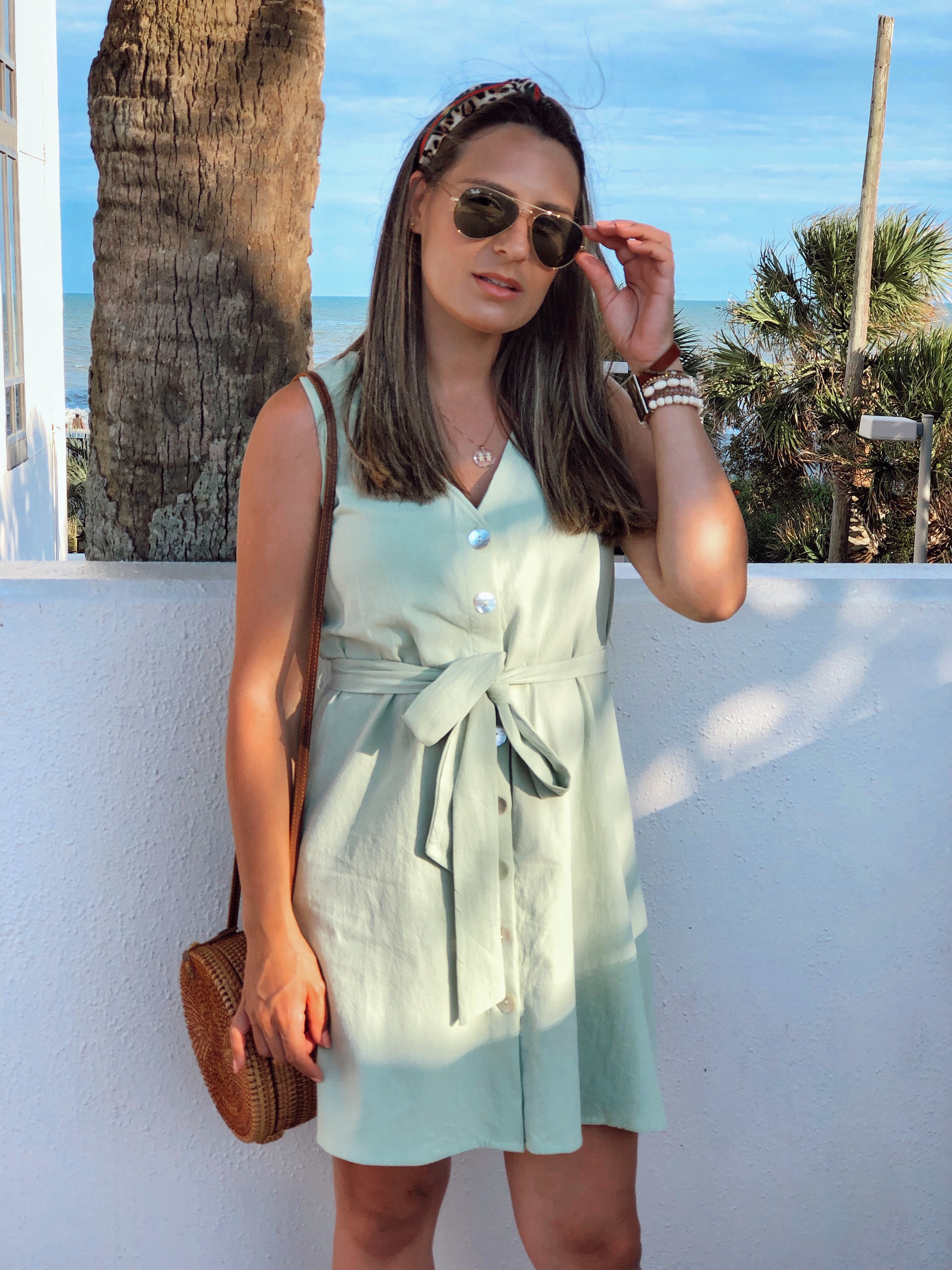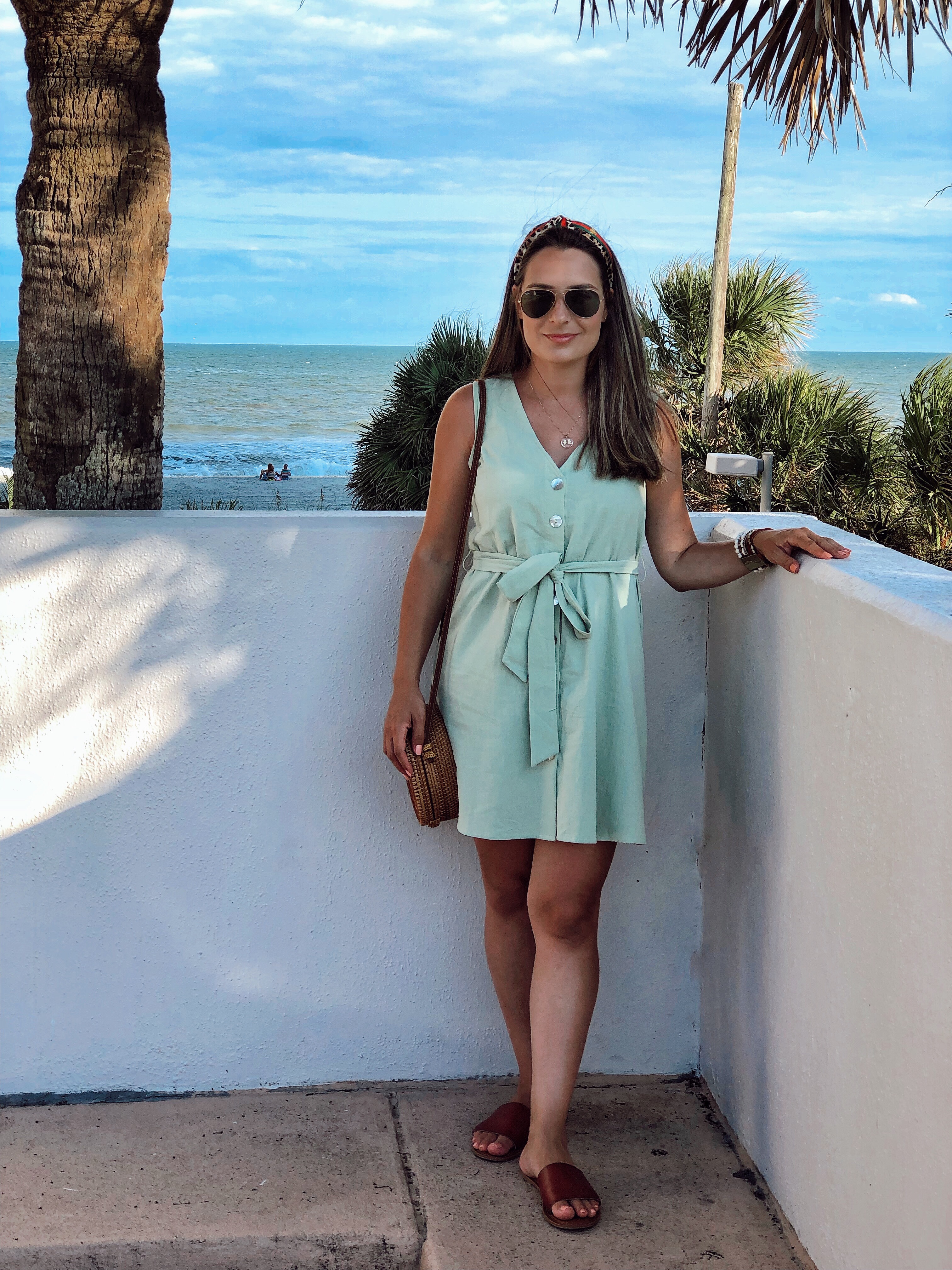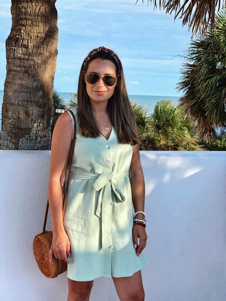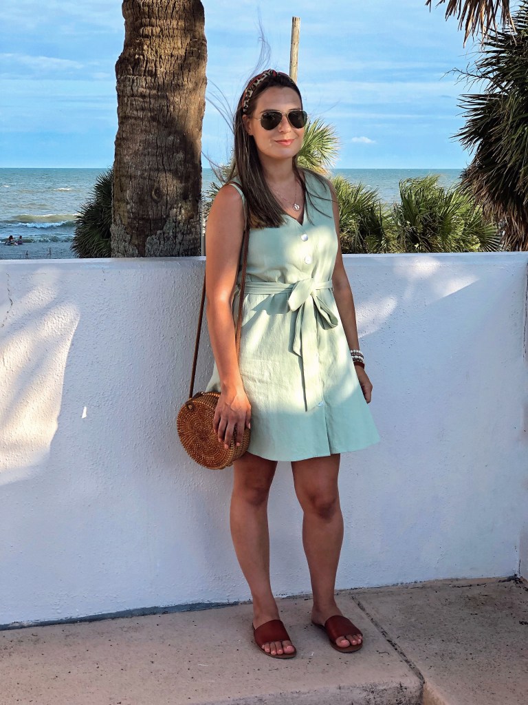 How was your week? This week was a bit shorter because of the Labor day holiday we had on Monday and I was quite busy adjusting and getting back to my routine after a whole week off at the beach with my family. I will be sharing some outfits I wore while in South Carolina. I took some easy to wear, casual and comfy pieces to wear there. One of my favorite was this button down dress from Shein. I love the green color and the buttons in the front is always nice for when I am out and have to breasfeed the baby. I wore it with flat sandals and my rattan round bag which I love for summer time .This dress is now on sale for half off for only $7!!! Plus you can get an extra 15% off using code 4padoni20 at checkout.