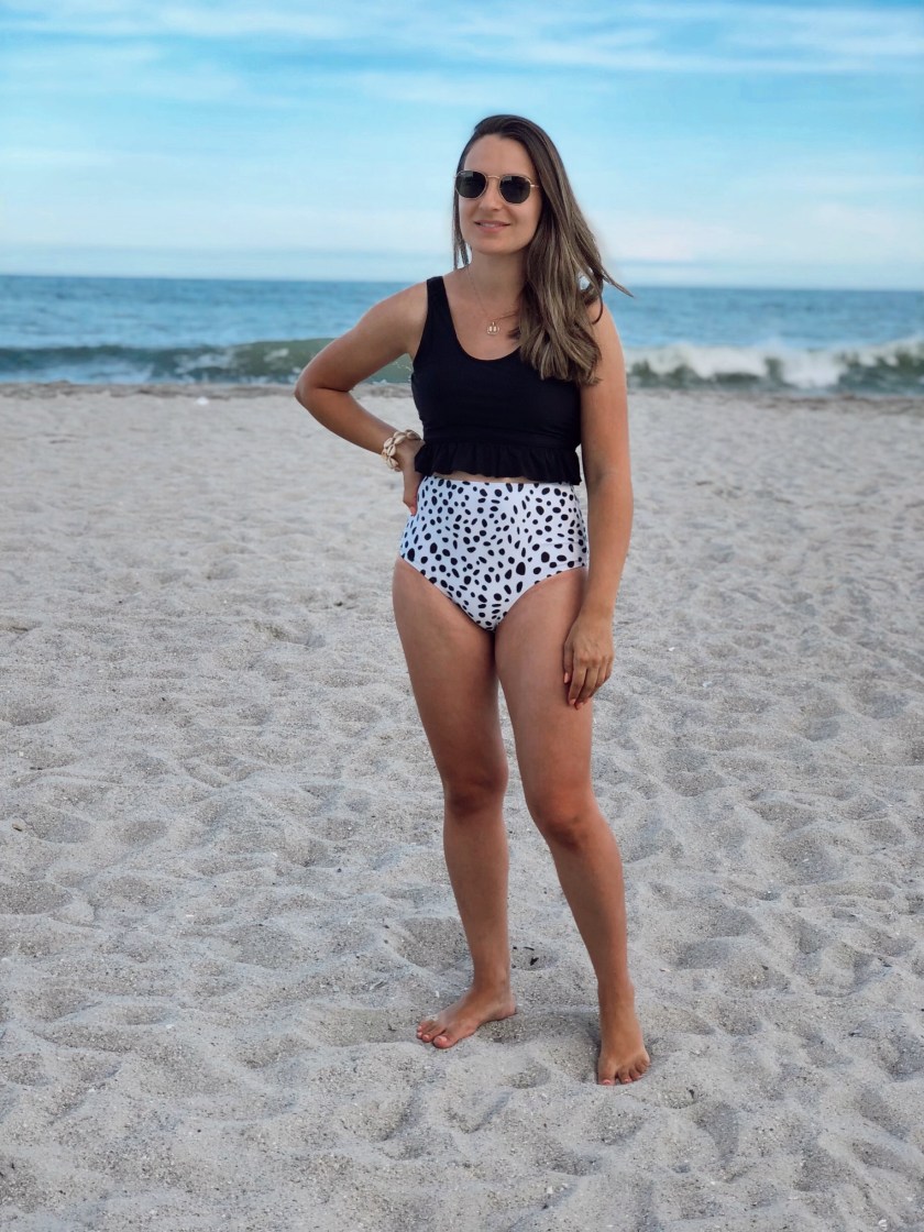It’s been 4 months since I gave birth to my second baby boy and to be honest I don’t feel very comfortable wearing a bikini quite yet. But then I found some really cute pieces at Shein. They have awesome one pieces and tankinis that hugs you in the right place and are perfect for new moms. I love high waist bikinis, they are so chic and helps hide those extra few pounds you have after postpartum. I choose this black ruffle top with white and black bottom. It’s perfect for the beach or the pool. I used it a lot this past week during my beach vacation. Use code 4padoni20 on Shein website to get 15% off any purchase.