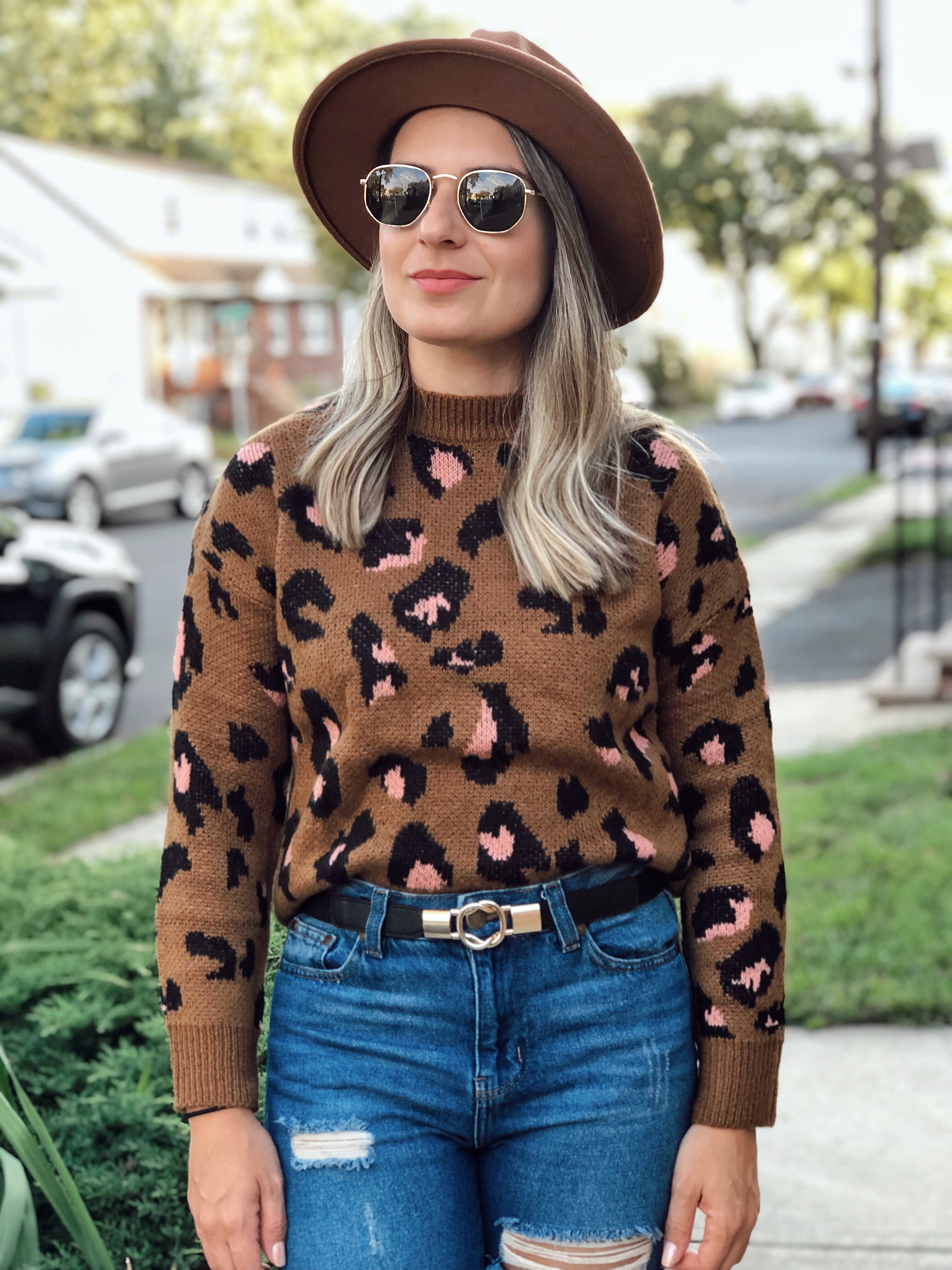 Lets start with this Leopard Print Sweater which is very cute, perfect for fall and dresses so well. I love pairing it with black skinny jeans, skirt and most casually like I did here, with high waist jeans.