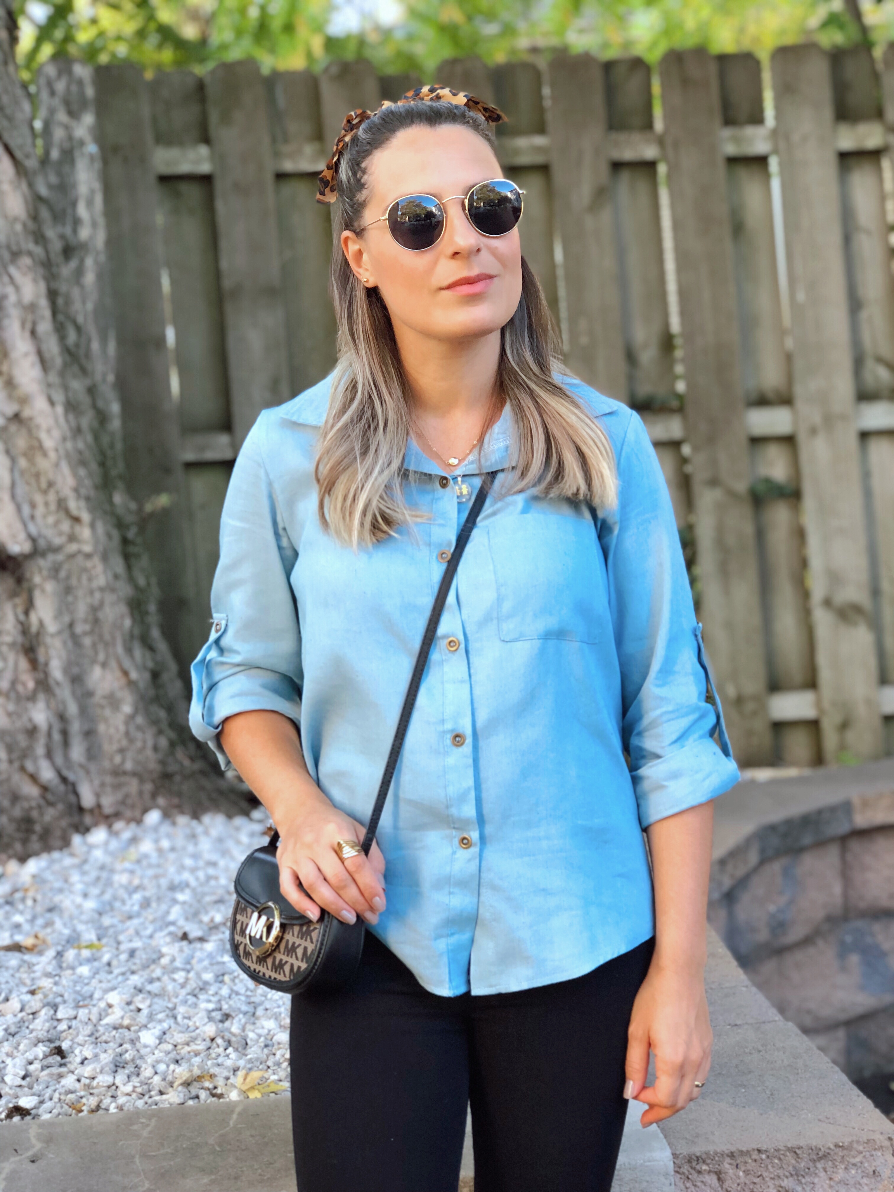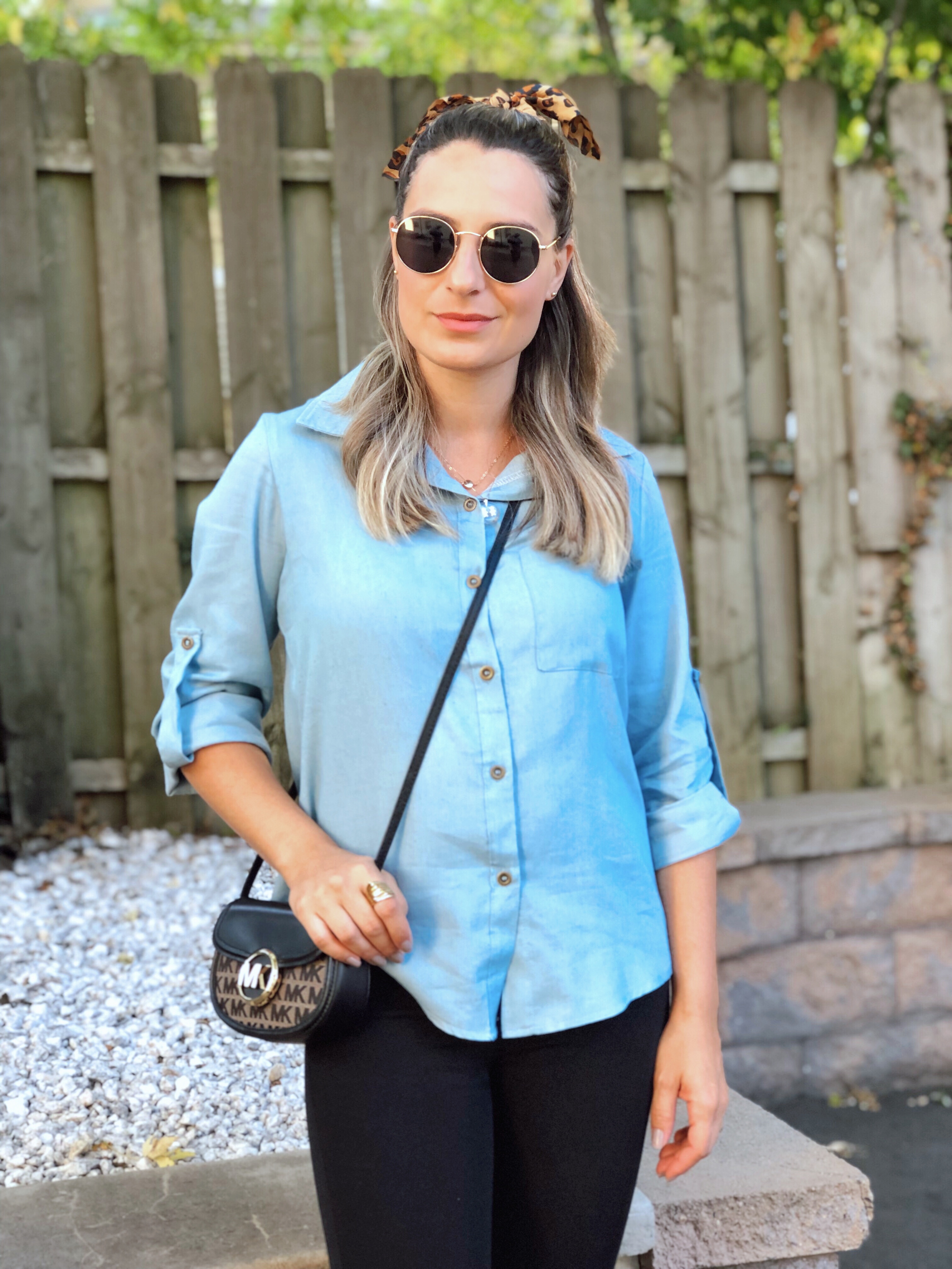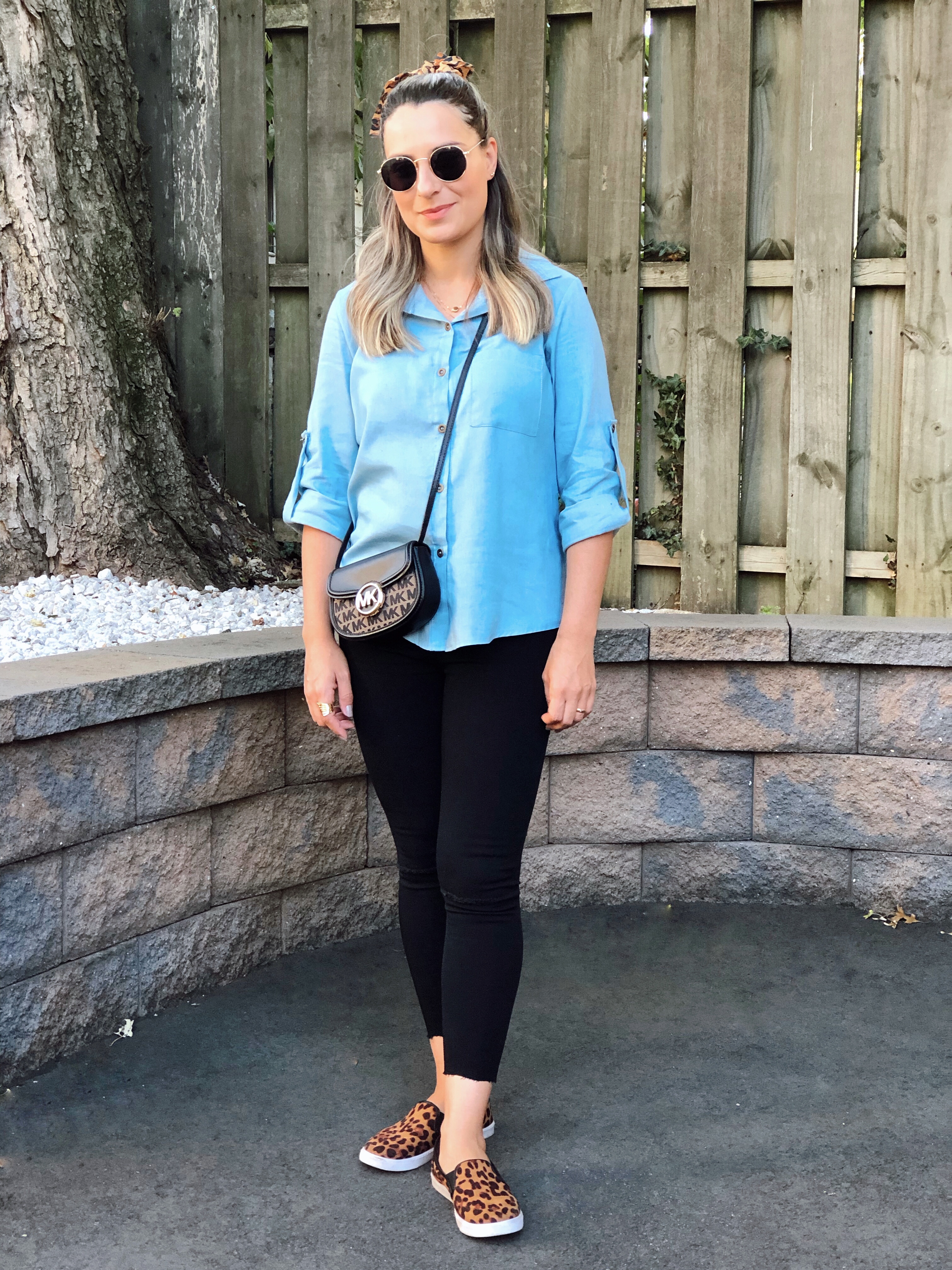 My next casual outfit is really my go to for everyday style. I love a good blue denim shirt and this one is definetly a staple on my closet. For this outfit I just wore black skinny jeans and a pop of animal print on my slip on sneakers.